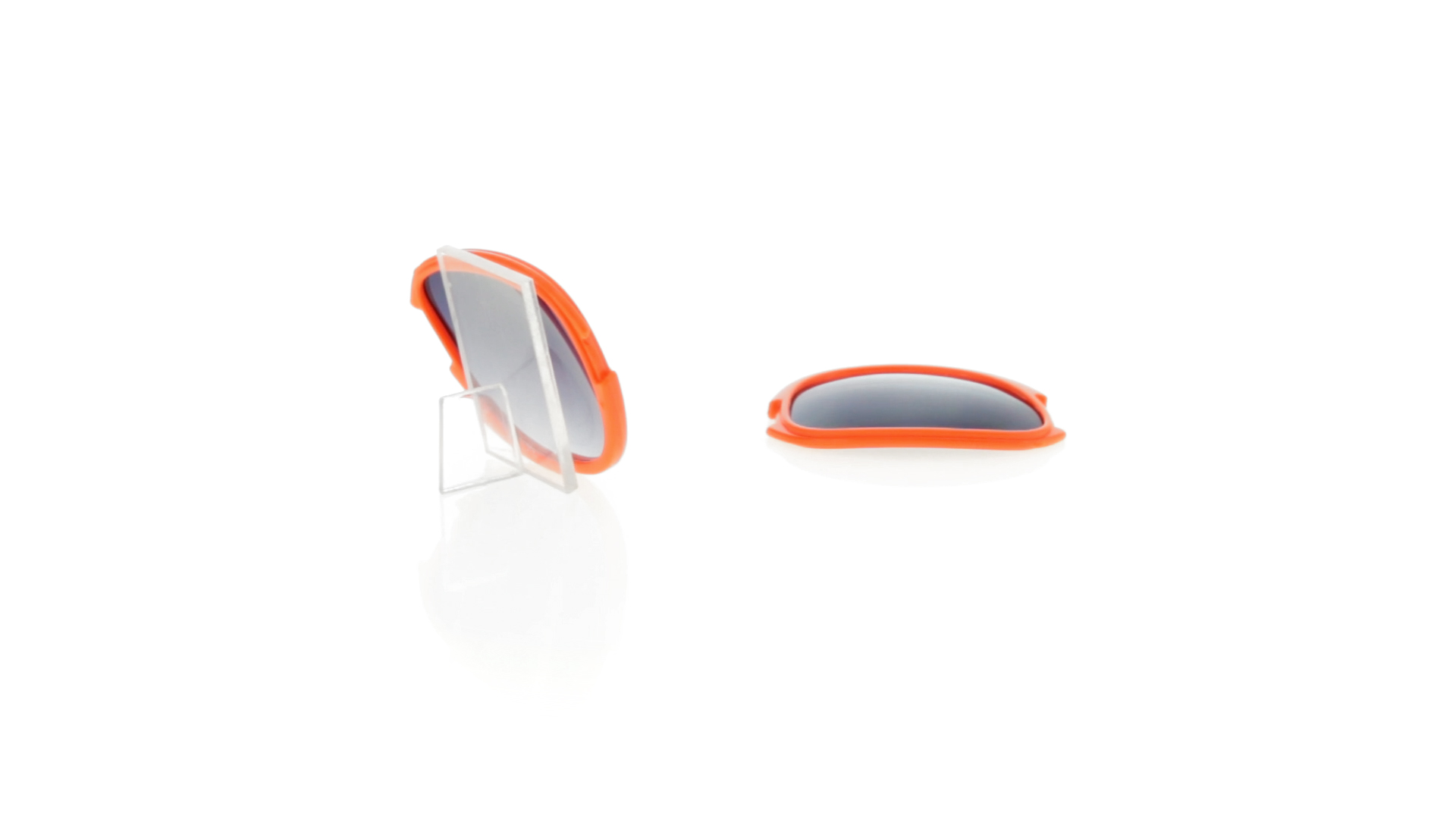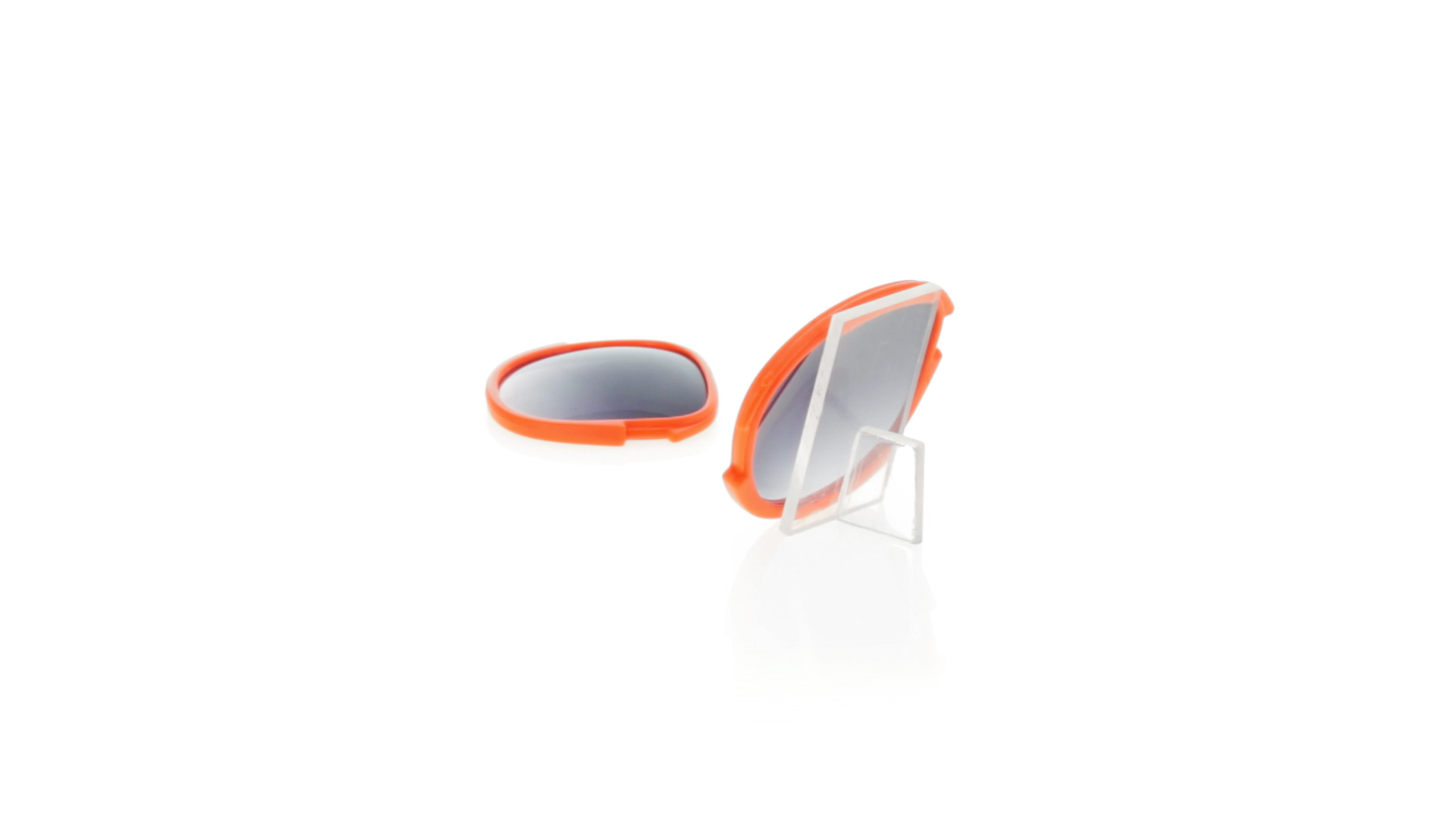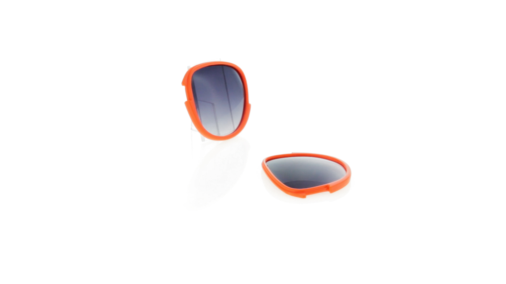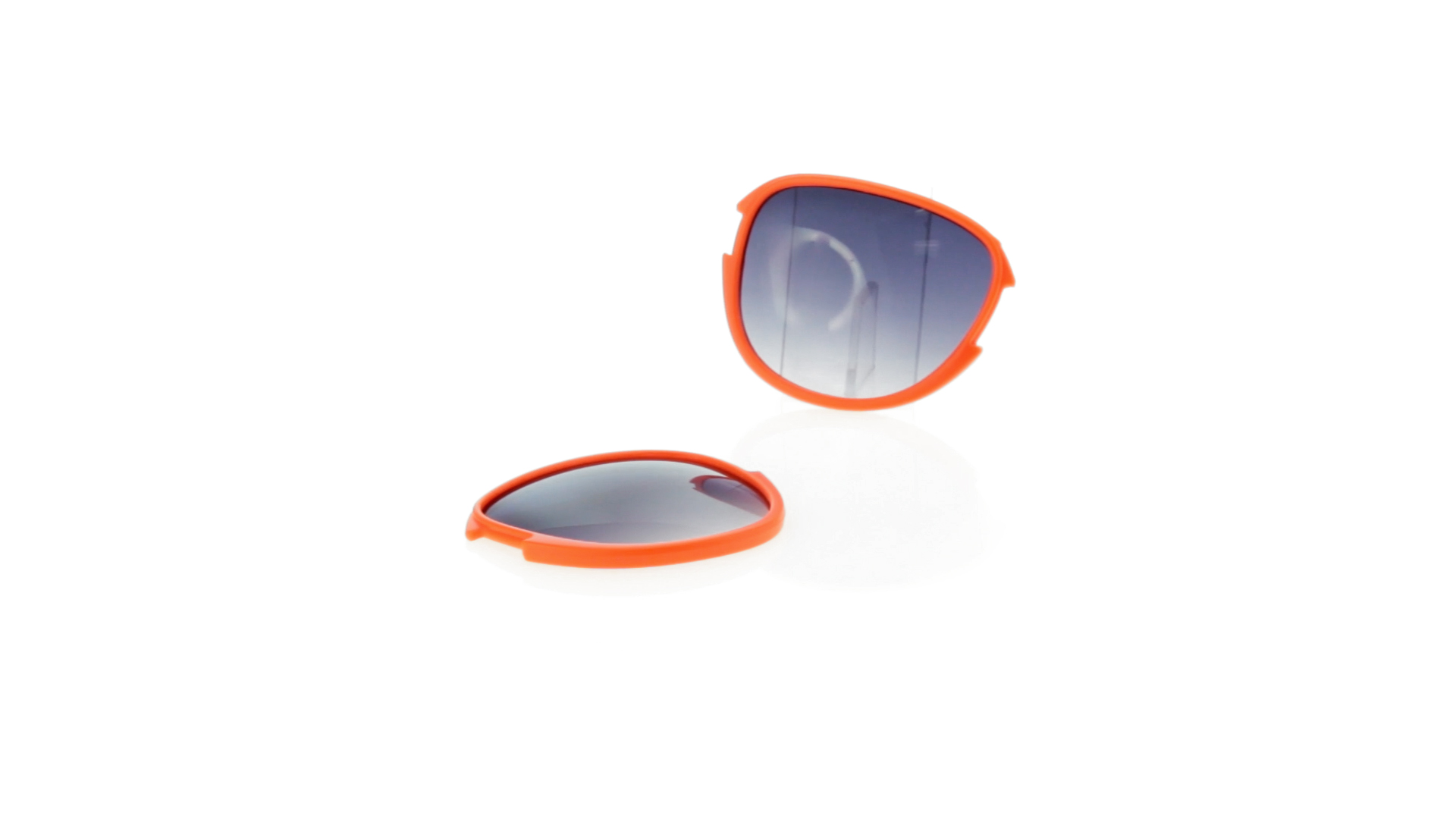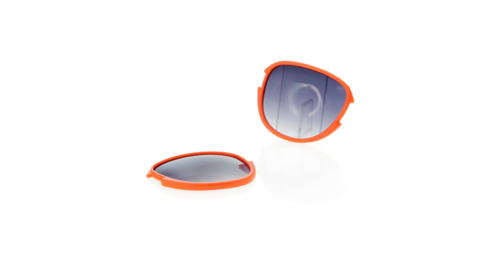 Rauchfarbene Gläser mit UV-400-Schutz und Rahmen in verschiedenen kräftigen Farben. Zum Einsetzen in Gestell mit spezieller Stanzung (separat erhältlich).
