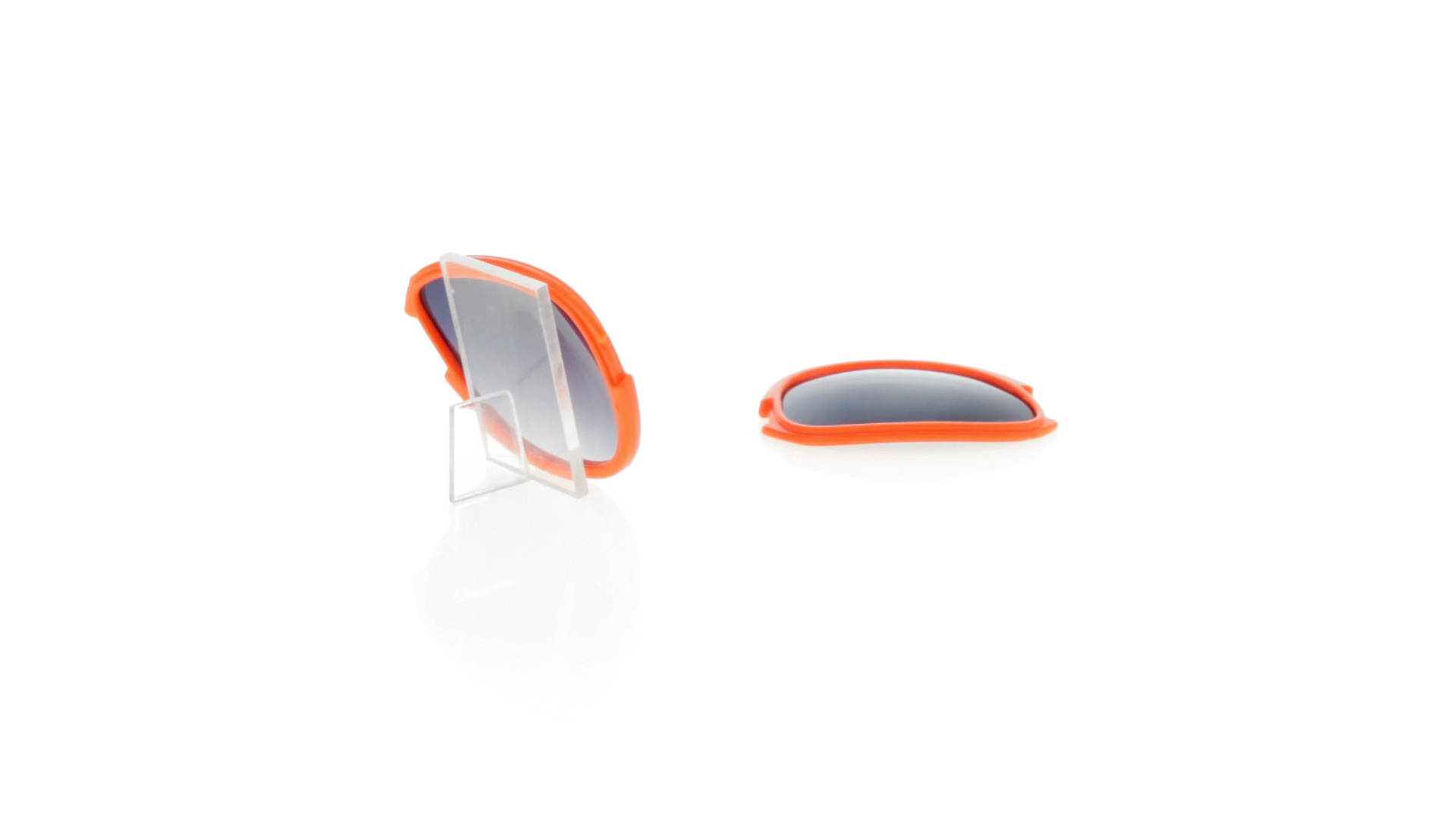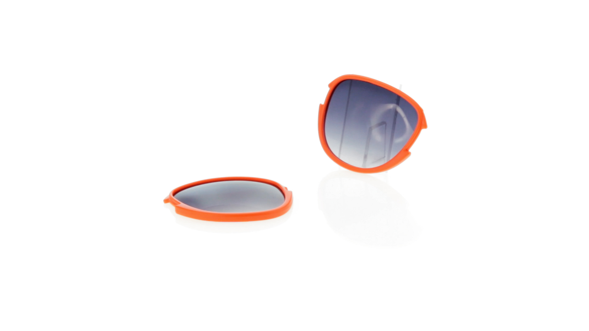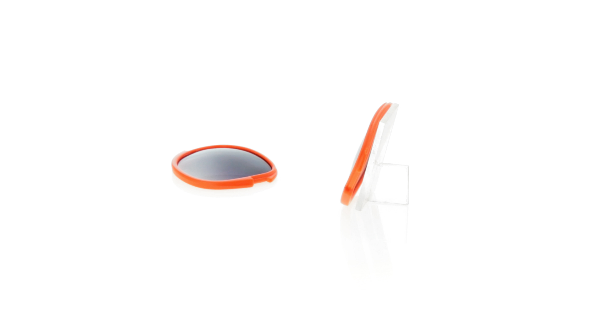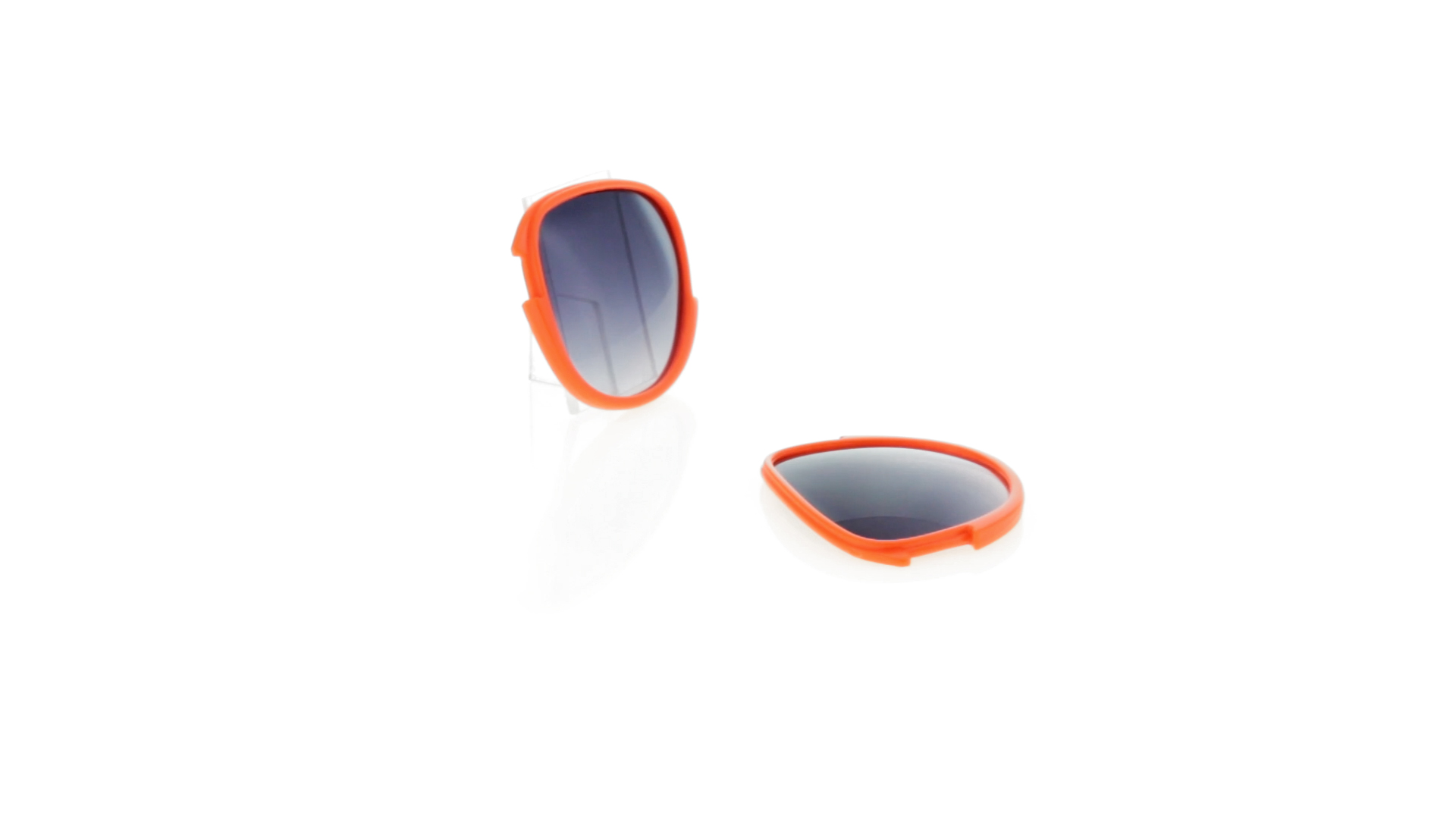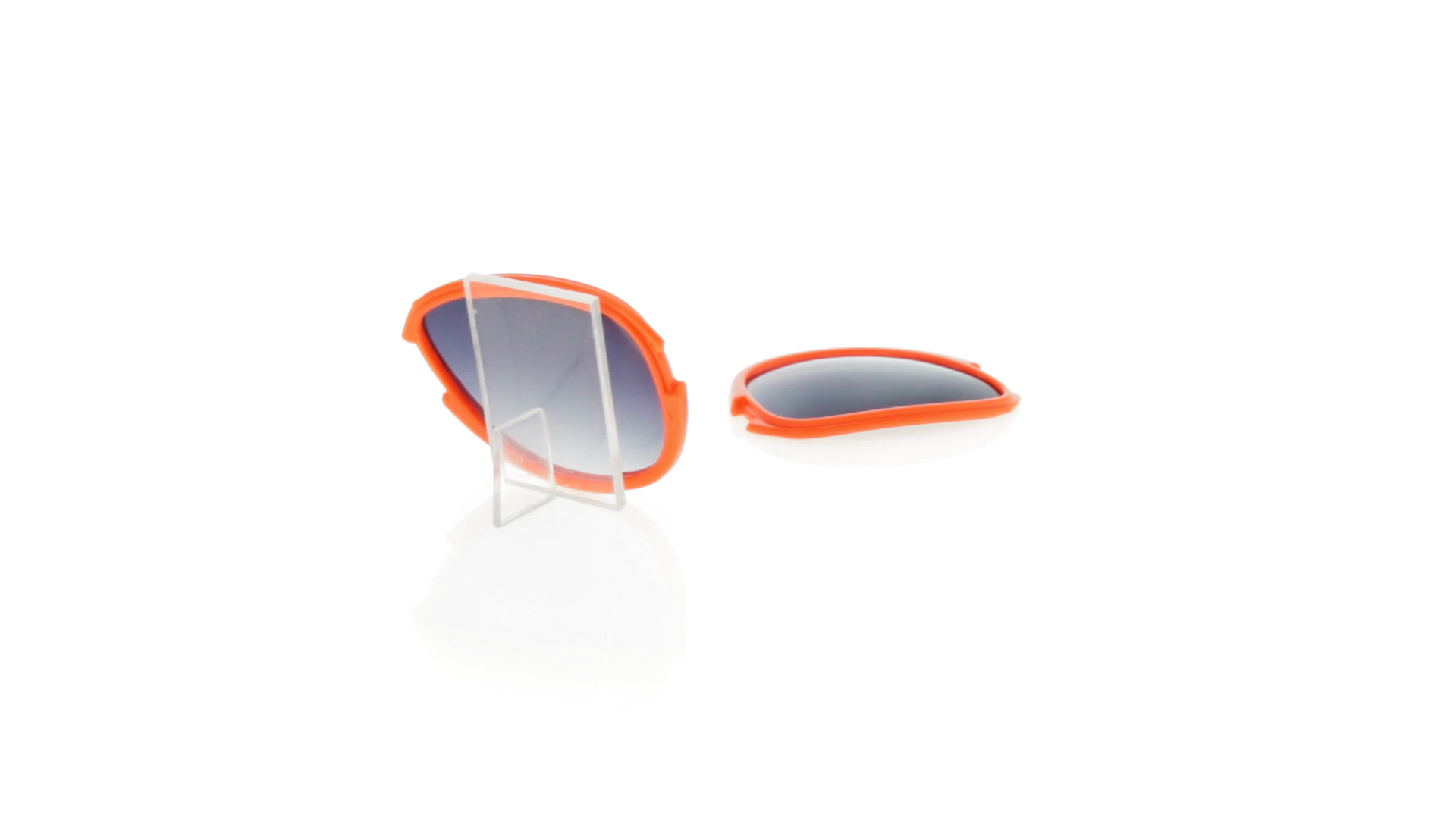 Rauchfarbene Gläser mit UV-400-Schutz und Rahmen in verschiedenen kräftigen Farben. Zum Einsetzen in Gestell mit spezieller Stanzung (separat erhältlich).