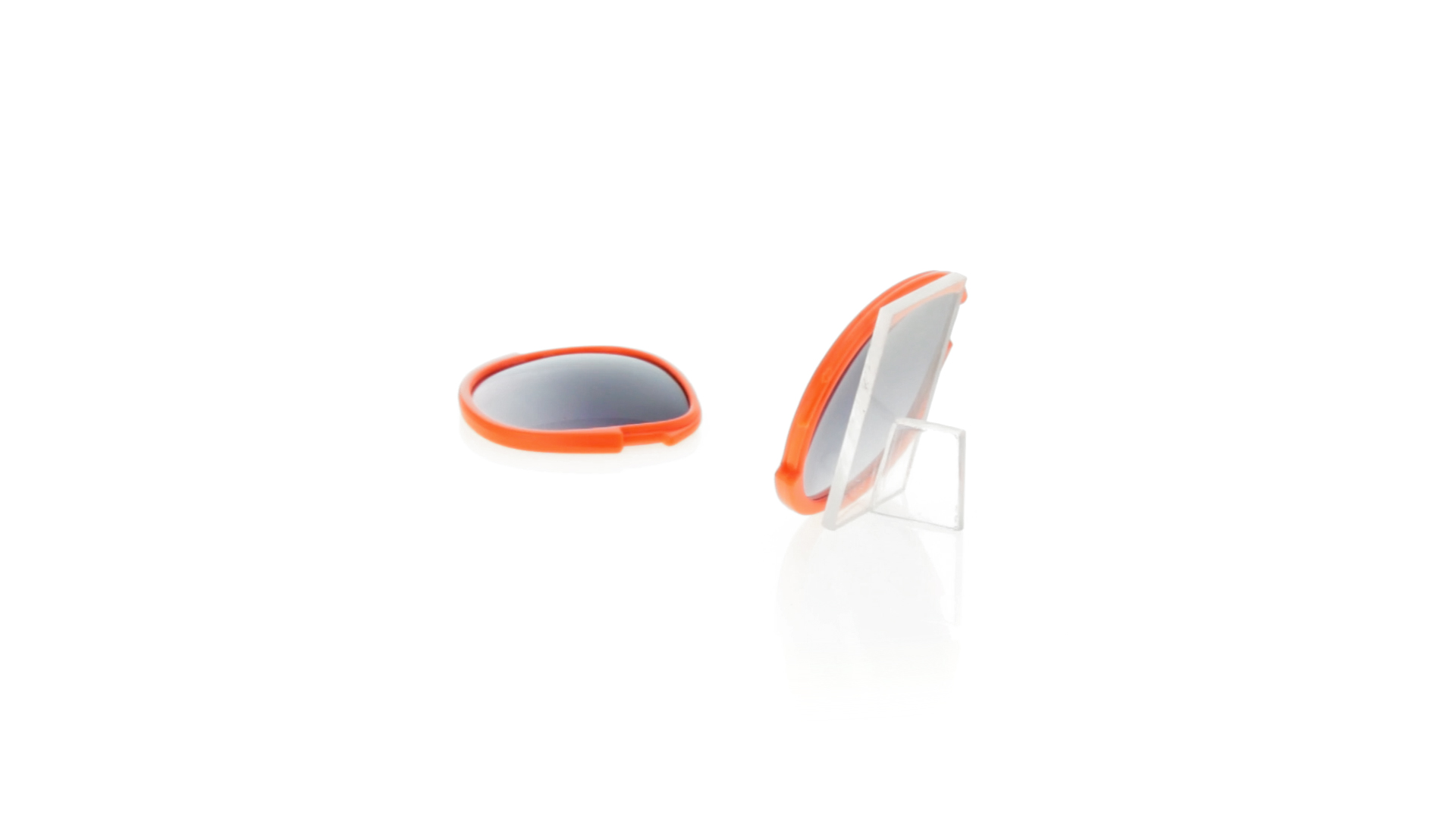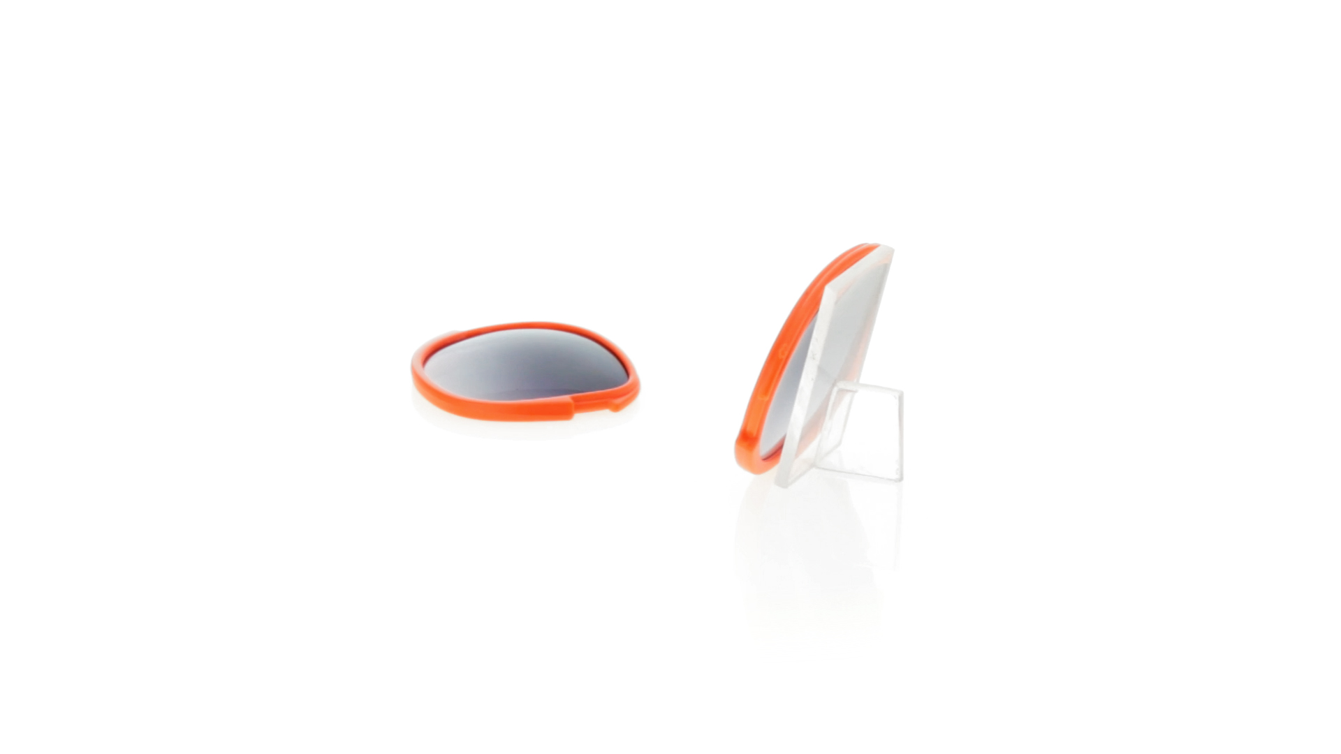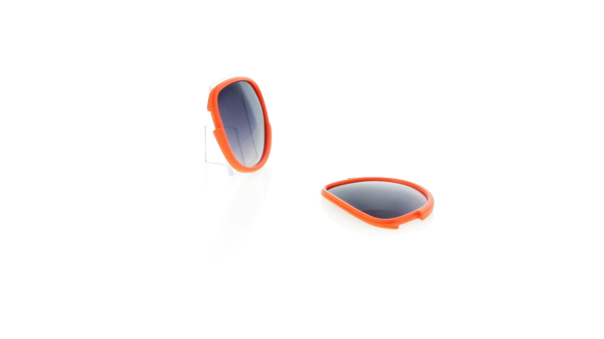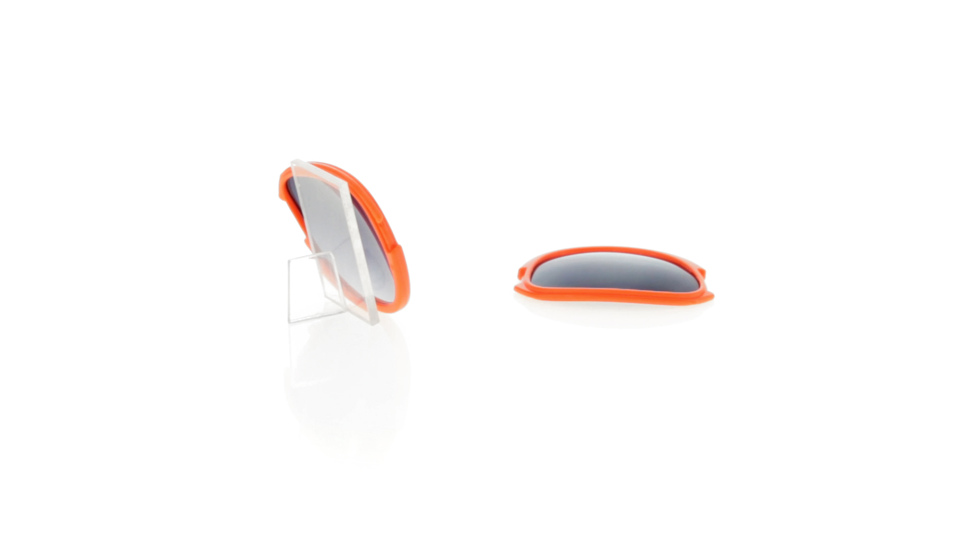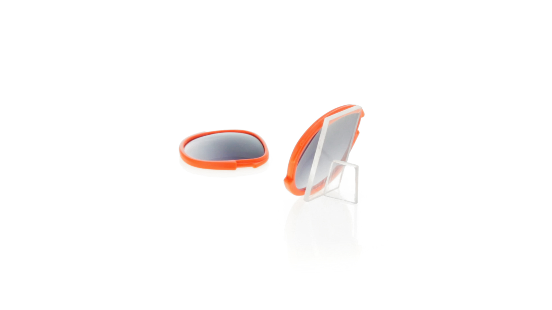 Rauchfarbene Gläser mit UV-400-Schutz und Rahmen in verschiedenen kräftigen Farben. Zum Einsetzen in Gestell mit spezieller Stanzung (separat erhältlich).
