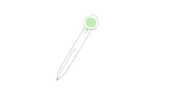 Lesezeichen-Druck-Kugelschreiber mit originellem, zweifarbigem Design und halbtransparentem Gehäuse. Mit kreisförmigem Feld für Tampondruck.