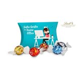Diese Kissenverpackung enthält eine der meistbegehrten Schokoladen; Lindor-Kugeln. Damit deine fleissigen Mitarbeiter im Homeoffice sich eine süsse Pause gönnen können und auch von zu Hause aus mit der gleichen Motivation weiterarbeiten können. Für schwere Zeiten, süsse Überraschungen.