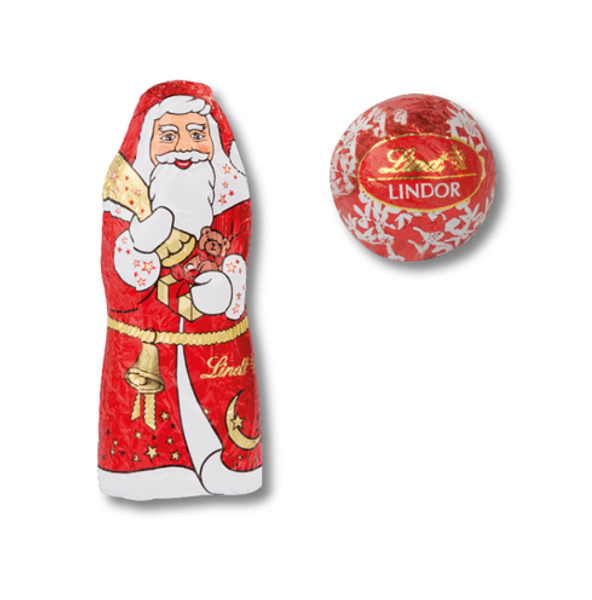 - Welche Schokoladensorten sind im Lindt Weihnachtsriegel enthalten? In der Geschenkbox findest Du eine Auswahl feiner LINDOR Minikugeln in verschiedenen Geschmacksrichtungen sowie einen liebevoll gefertigten Lindt Schoko-Weihnachtsmann aus Vollmilchschokolade.