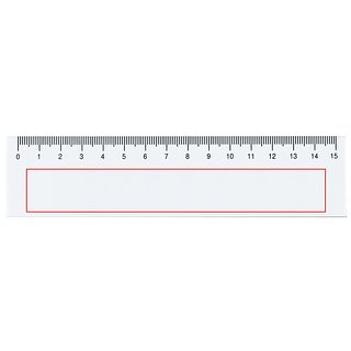 Lineal aus Kunststoff, 15 cm mit grosser Druckfläche.