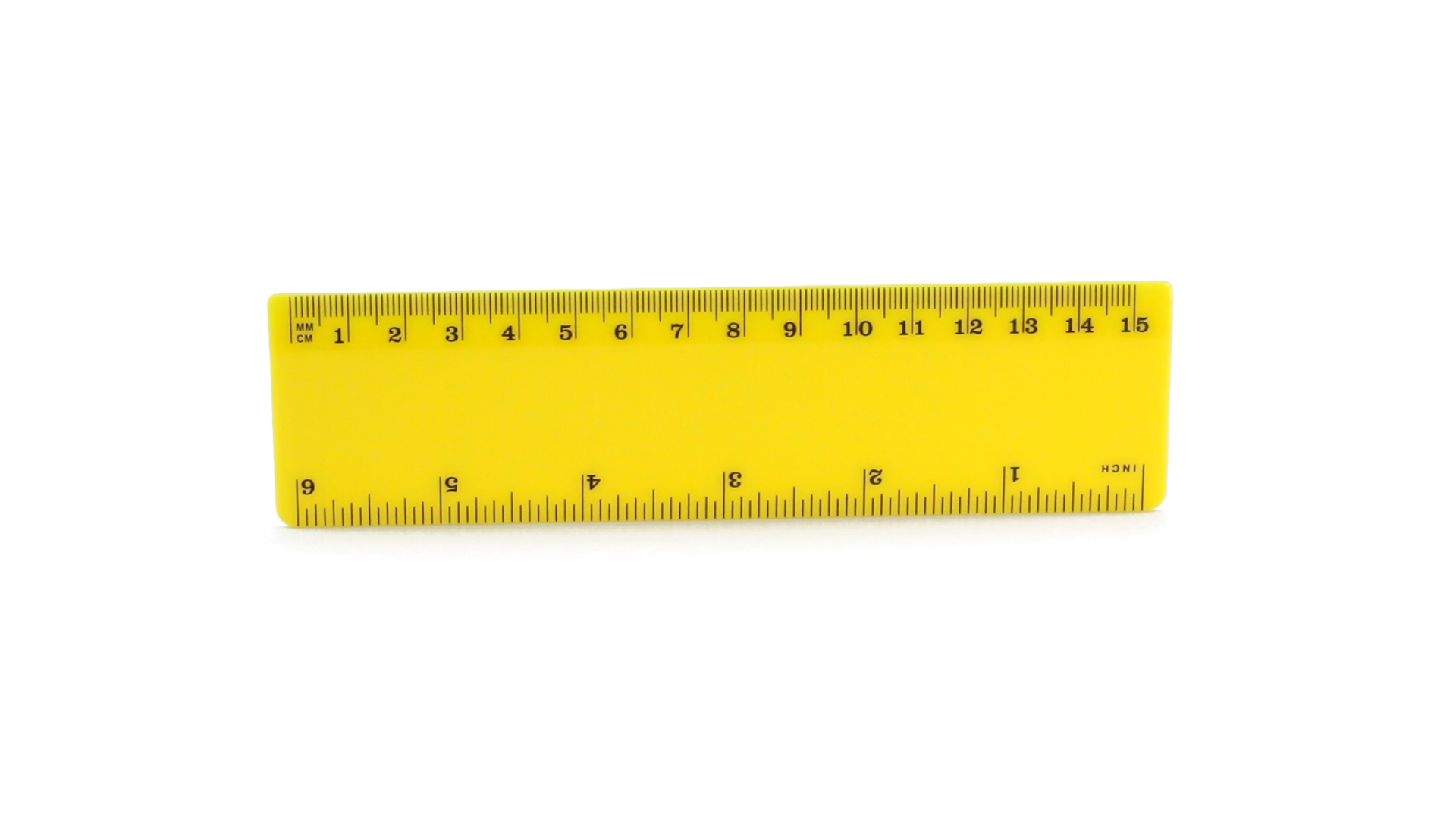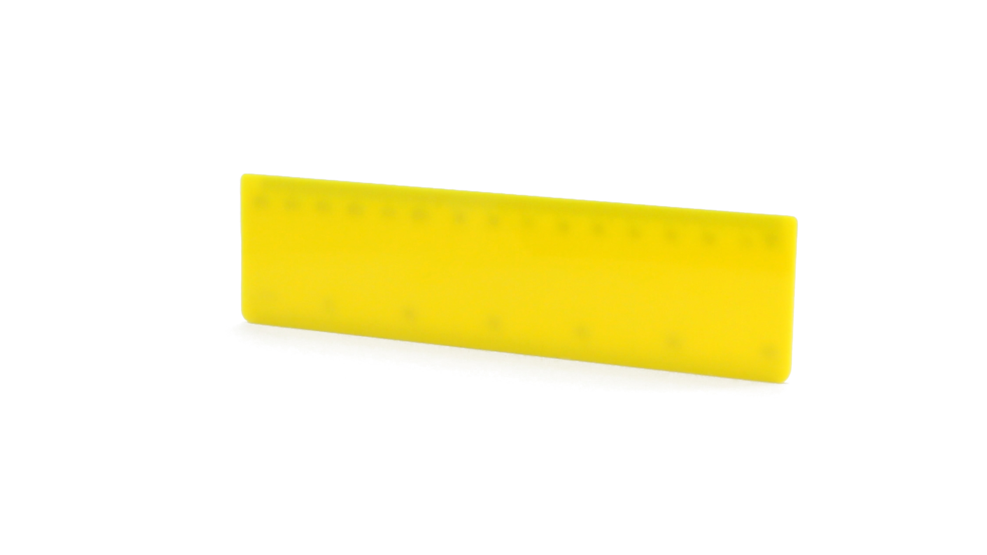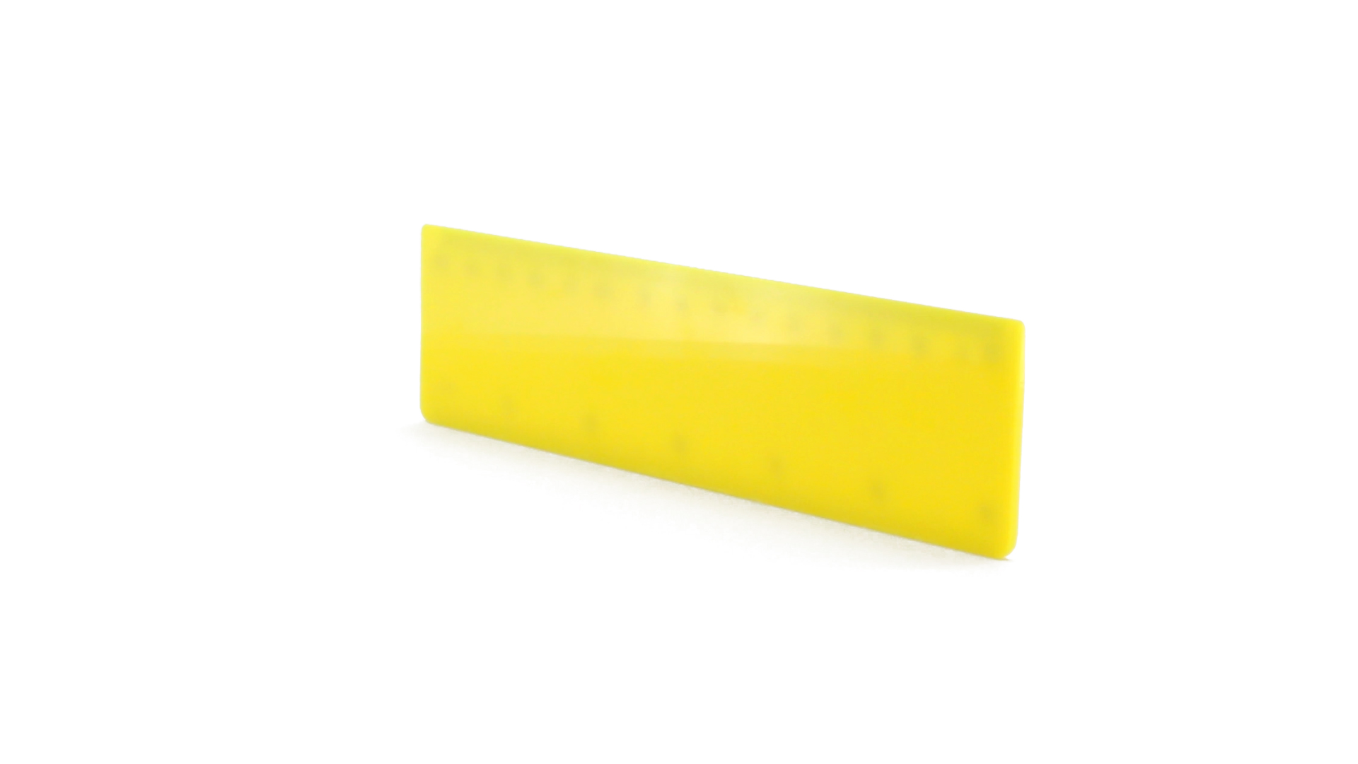 15 cm langes Lineal in glänzender Ausführung und kräftigen Farben. Metrisches System in cm und Zoll.
