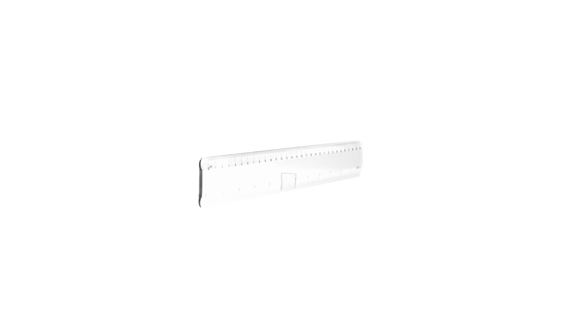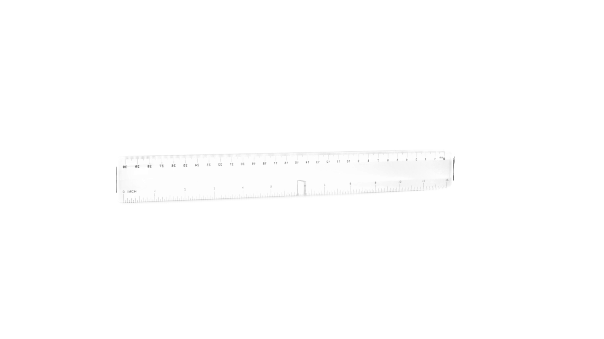 30 cm langes, transparentes Lineal mit Skala in Zentimetern und Zoll.