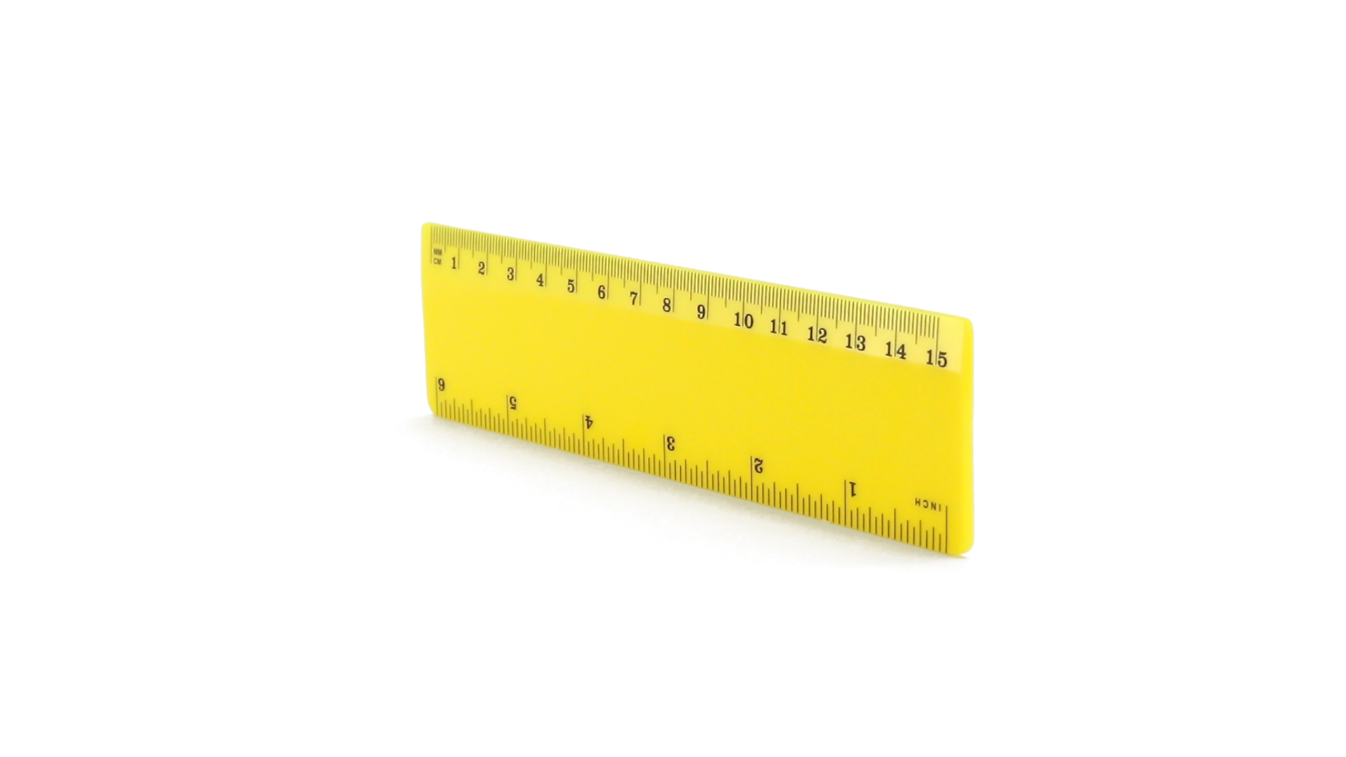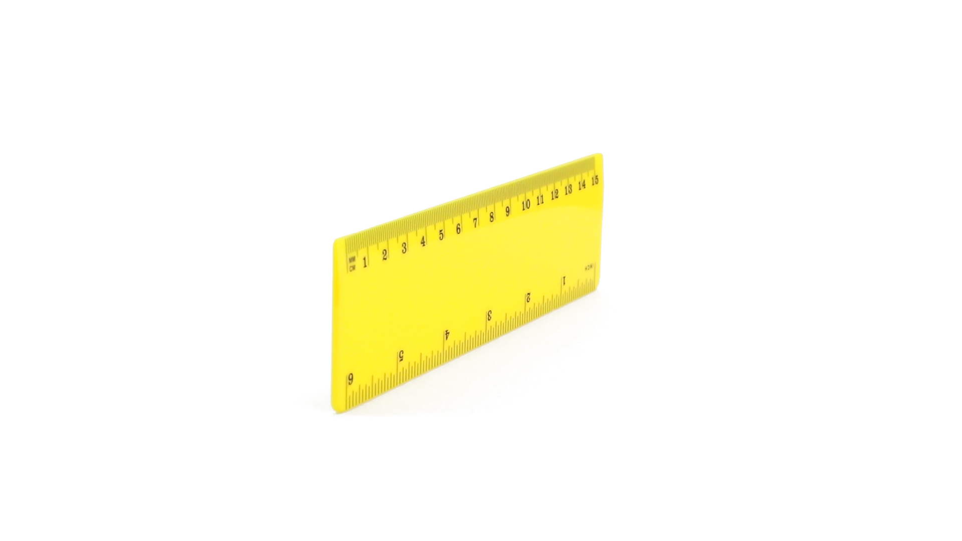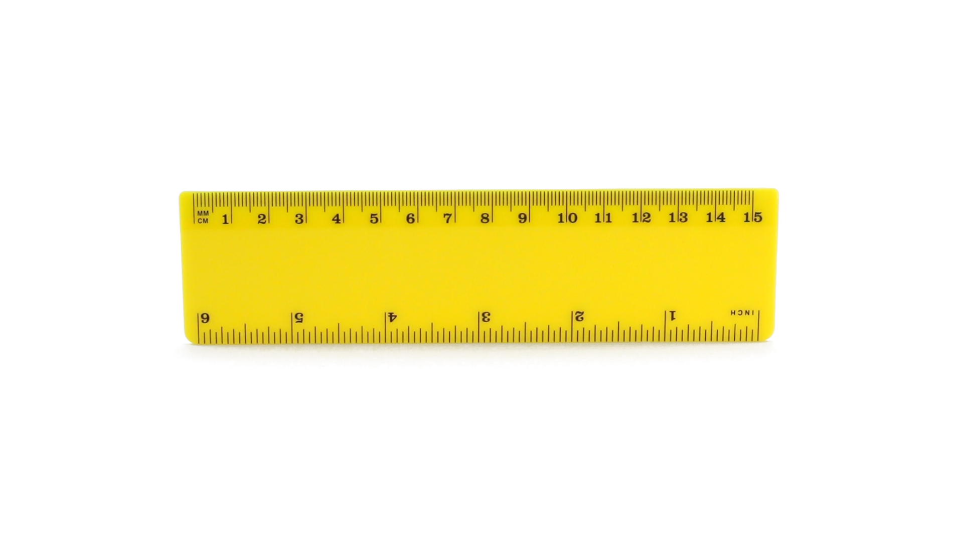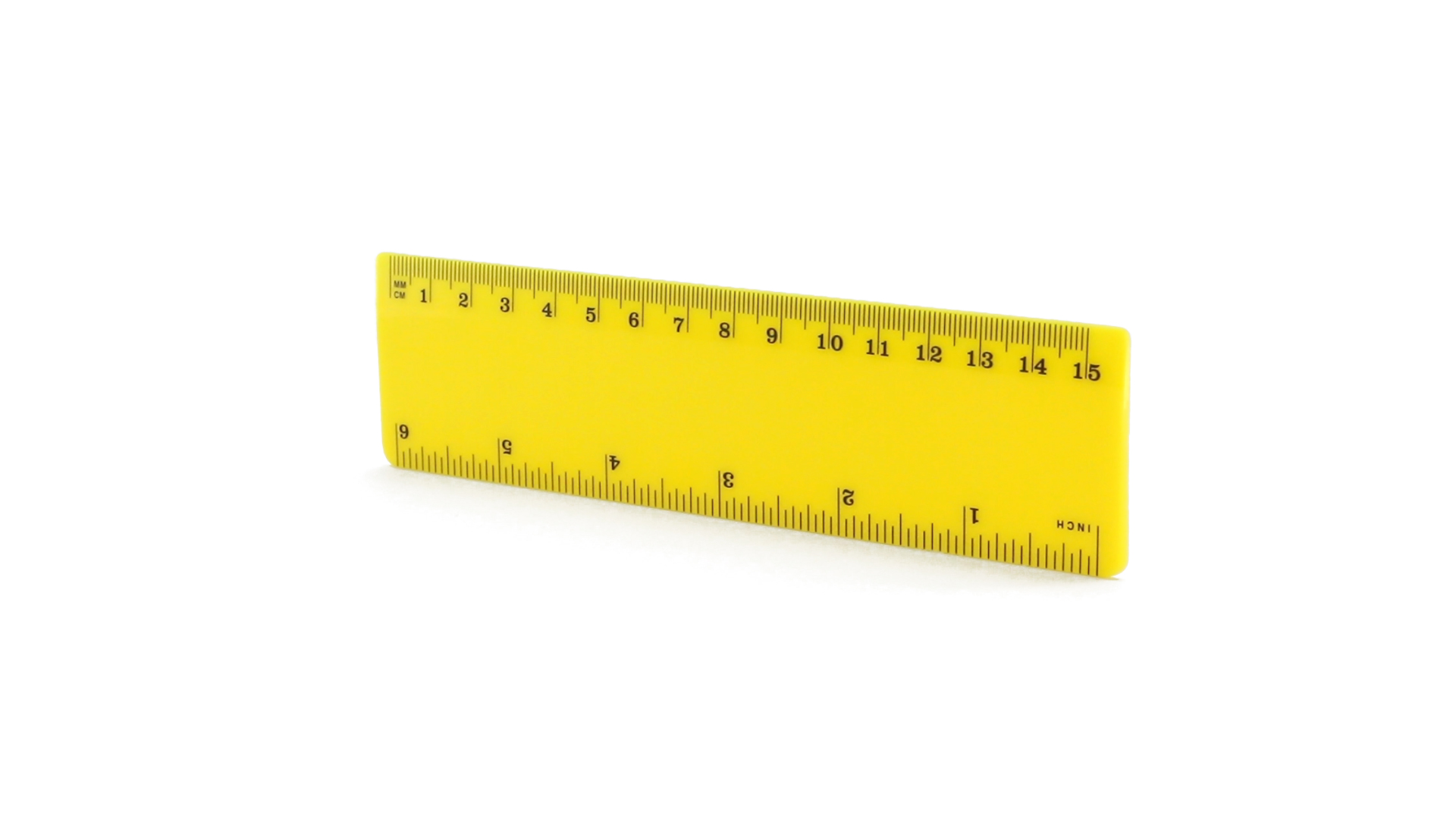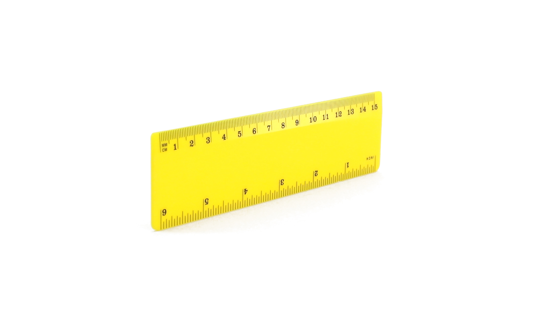 15 cm langes Lineal in glänzender Ausführung und kräftigen Farben. Metrisches System in cm und Zoll.