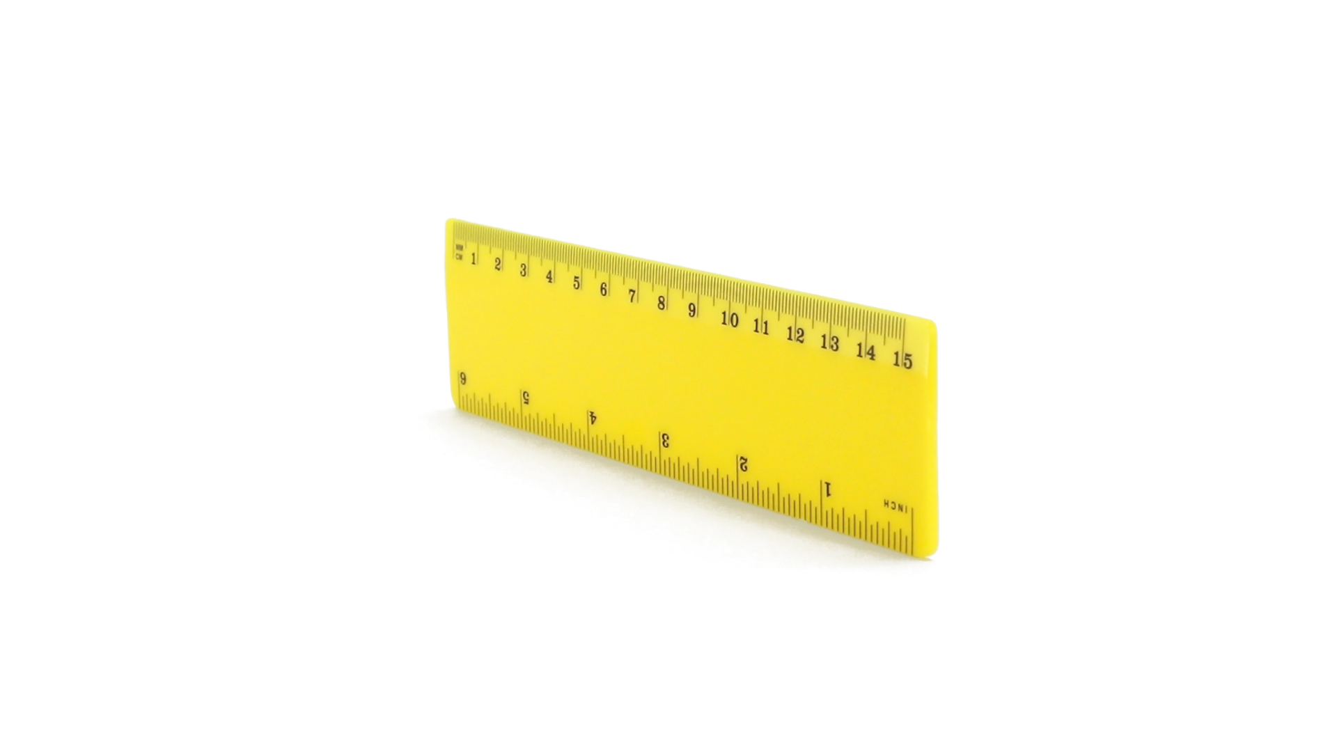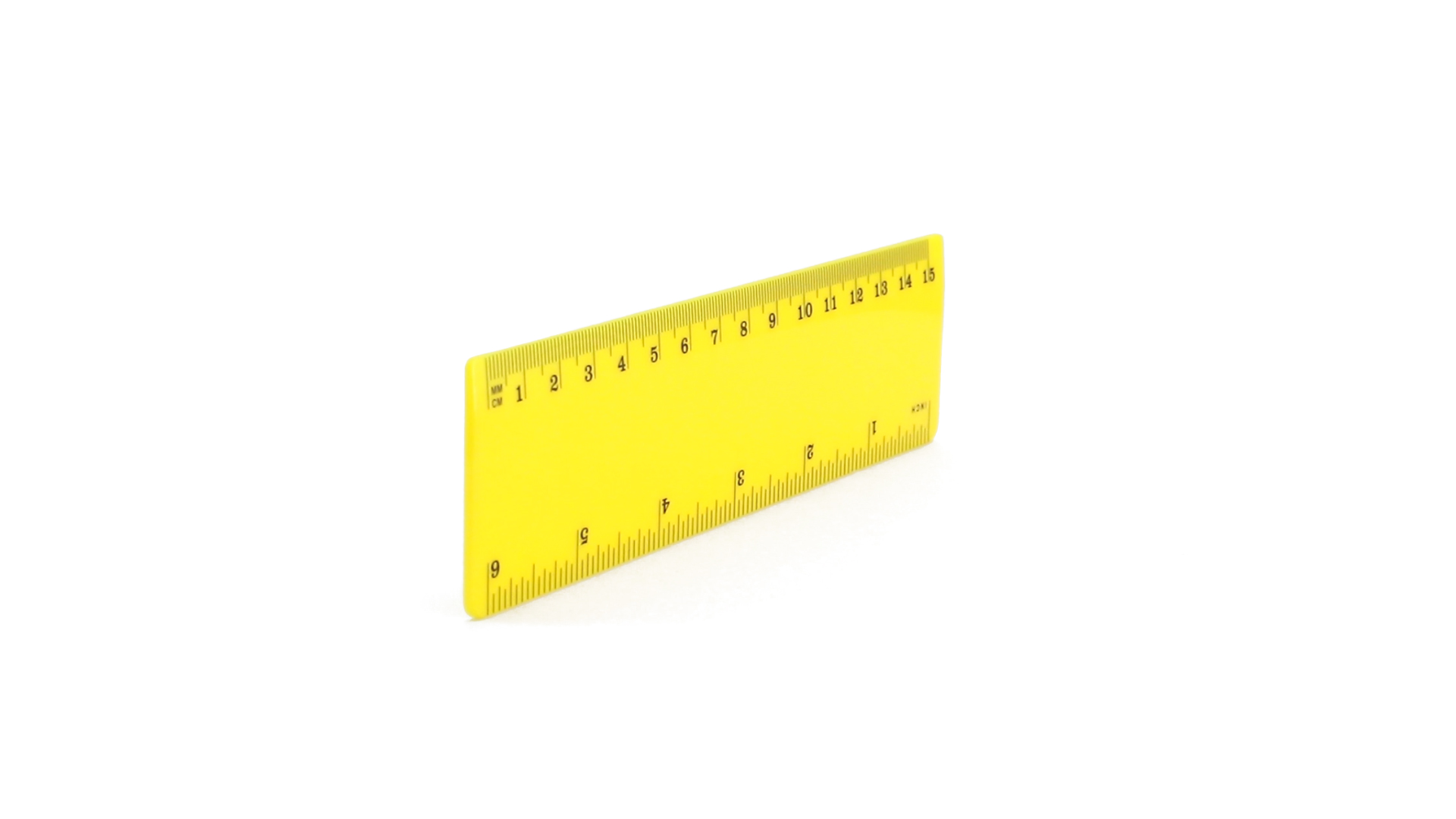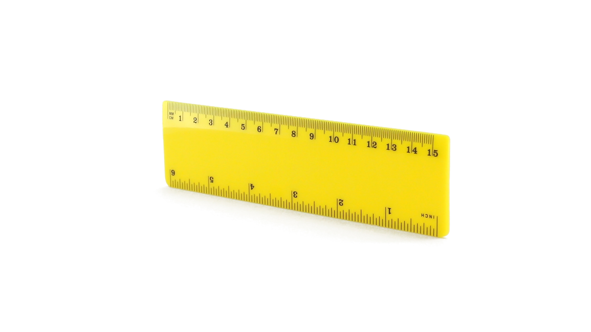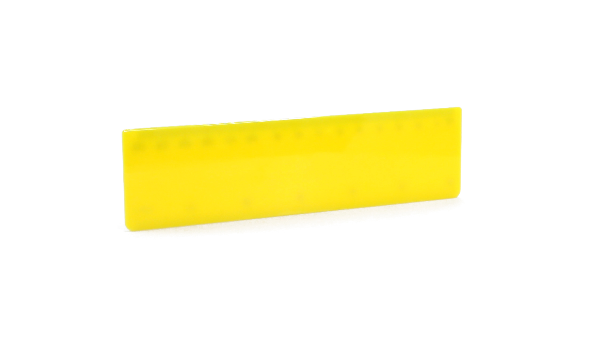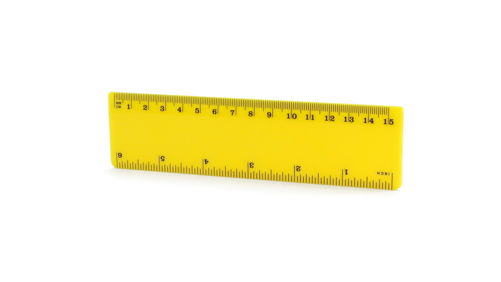 15 cm langes Lineal in glänzender Ausführung und kräftigen Farben. Metrisches System in cm und Zoll.