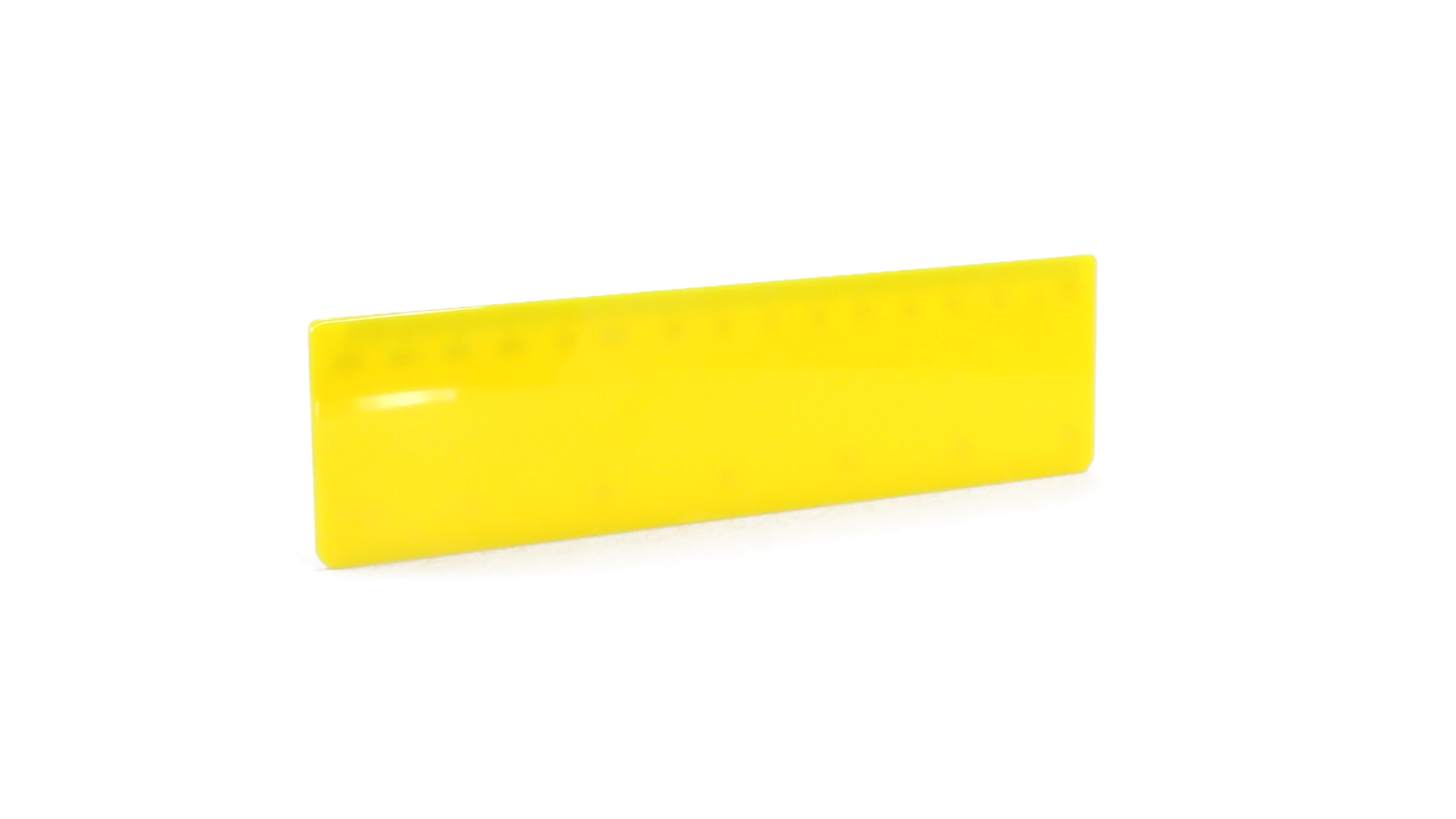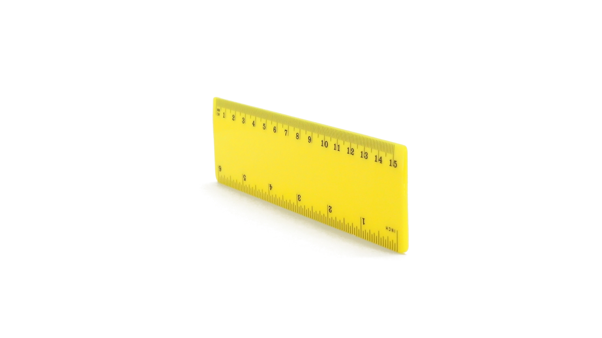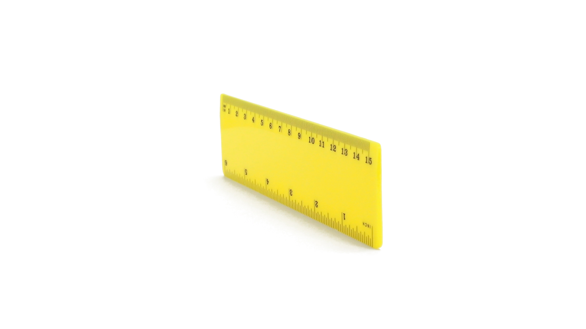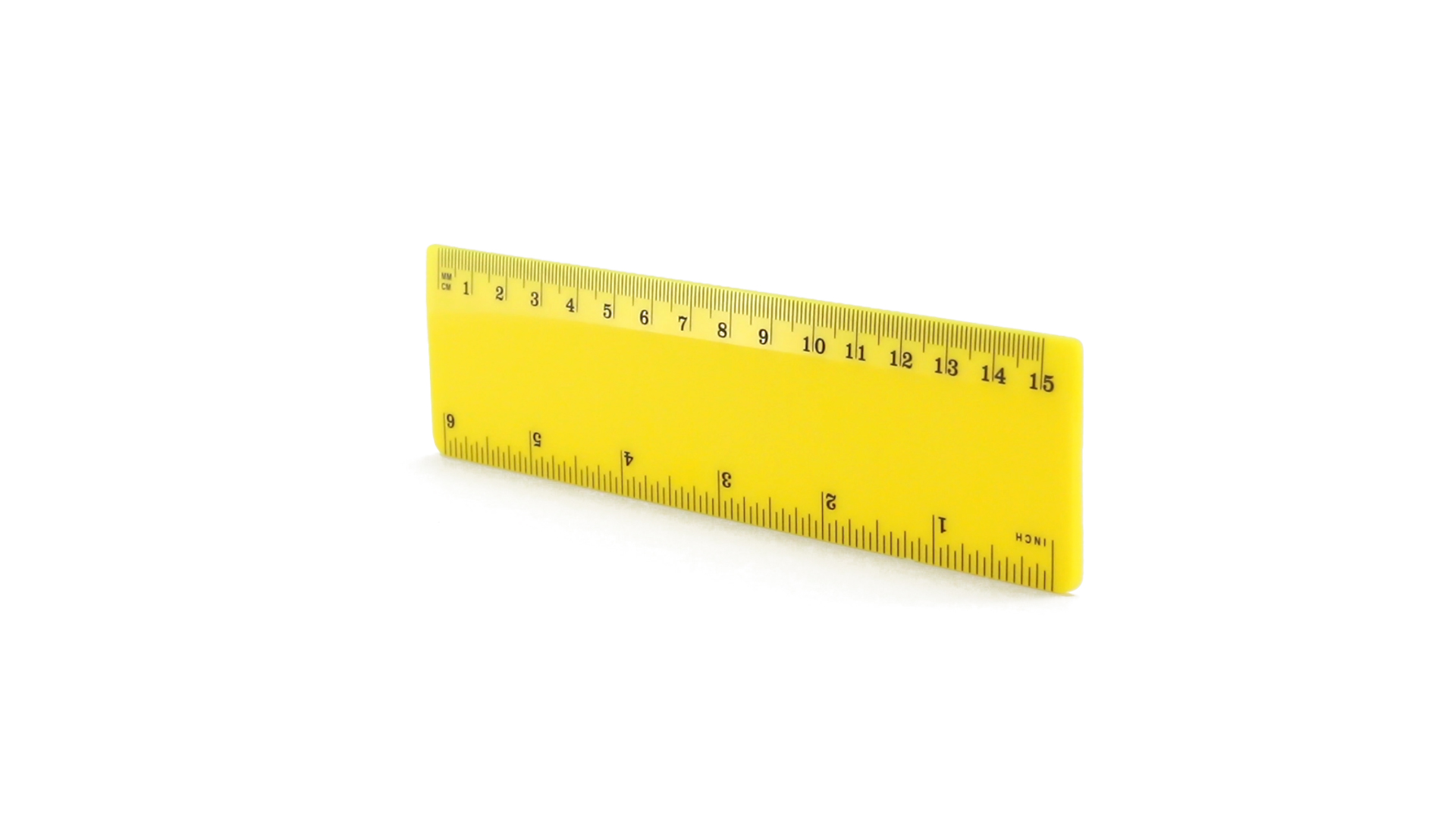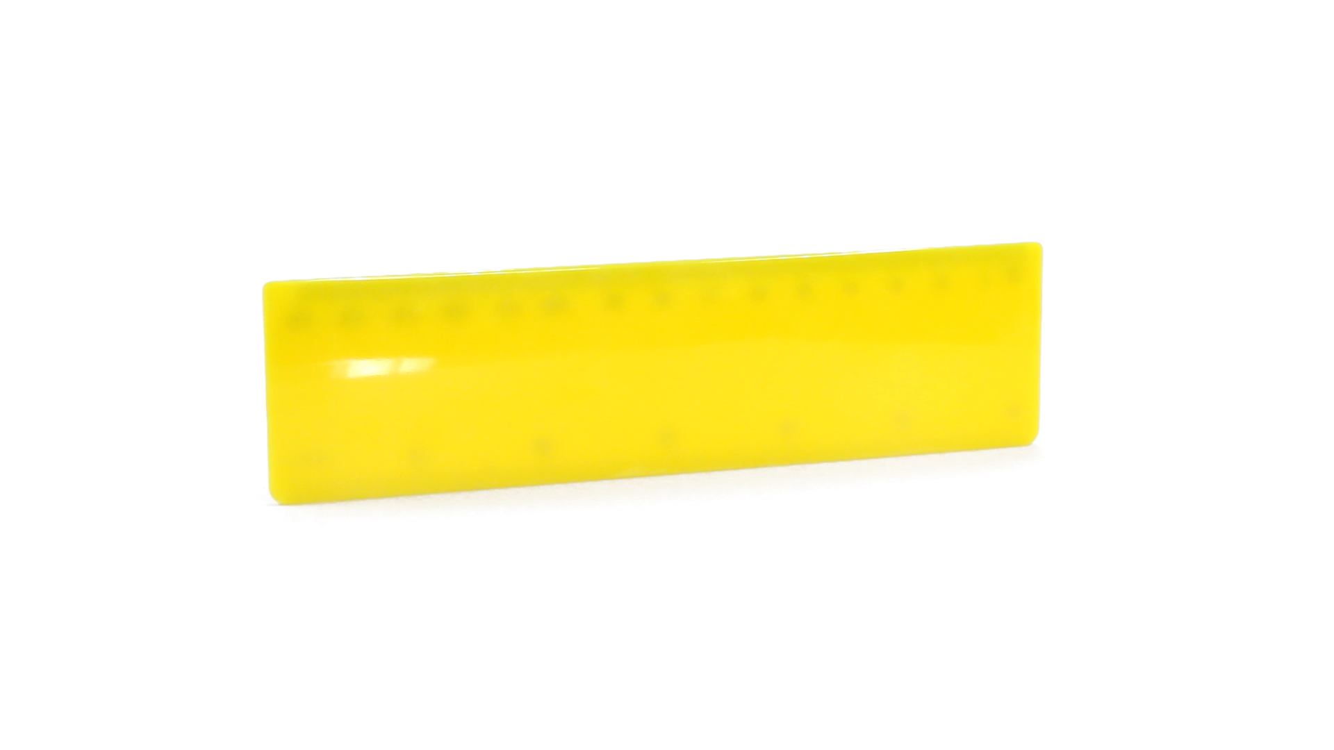 15 cm langes Lineal in glänzender Ausführung und kräftigen Farben. Metrisches System in cm und Zoll.