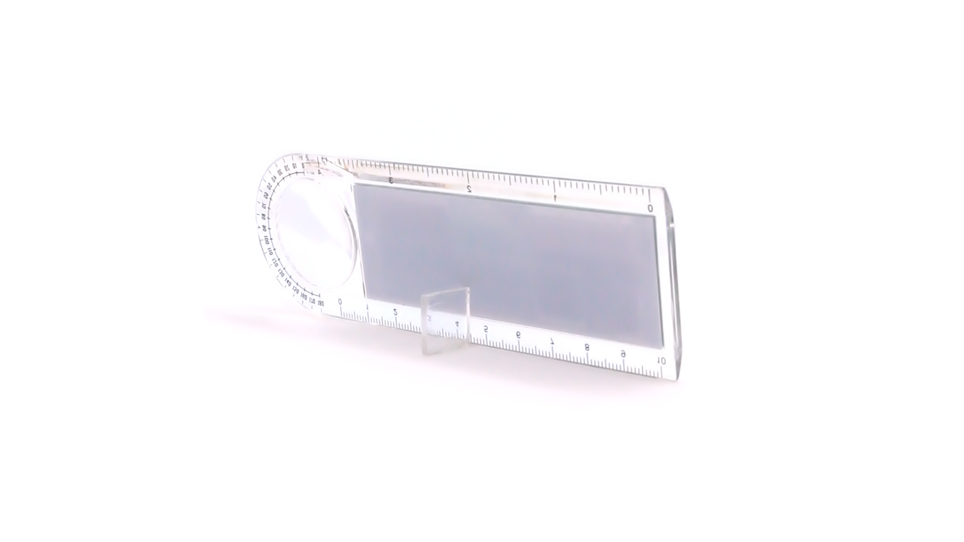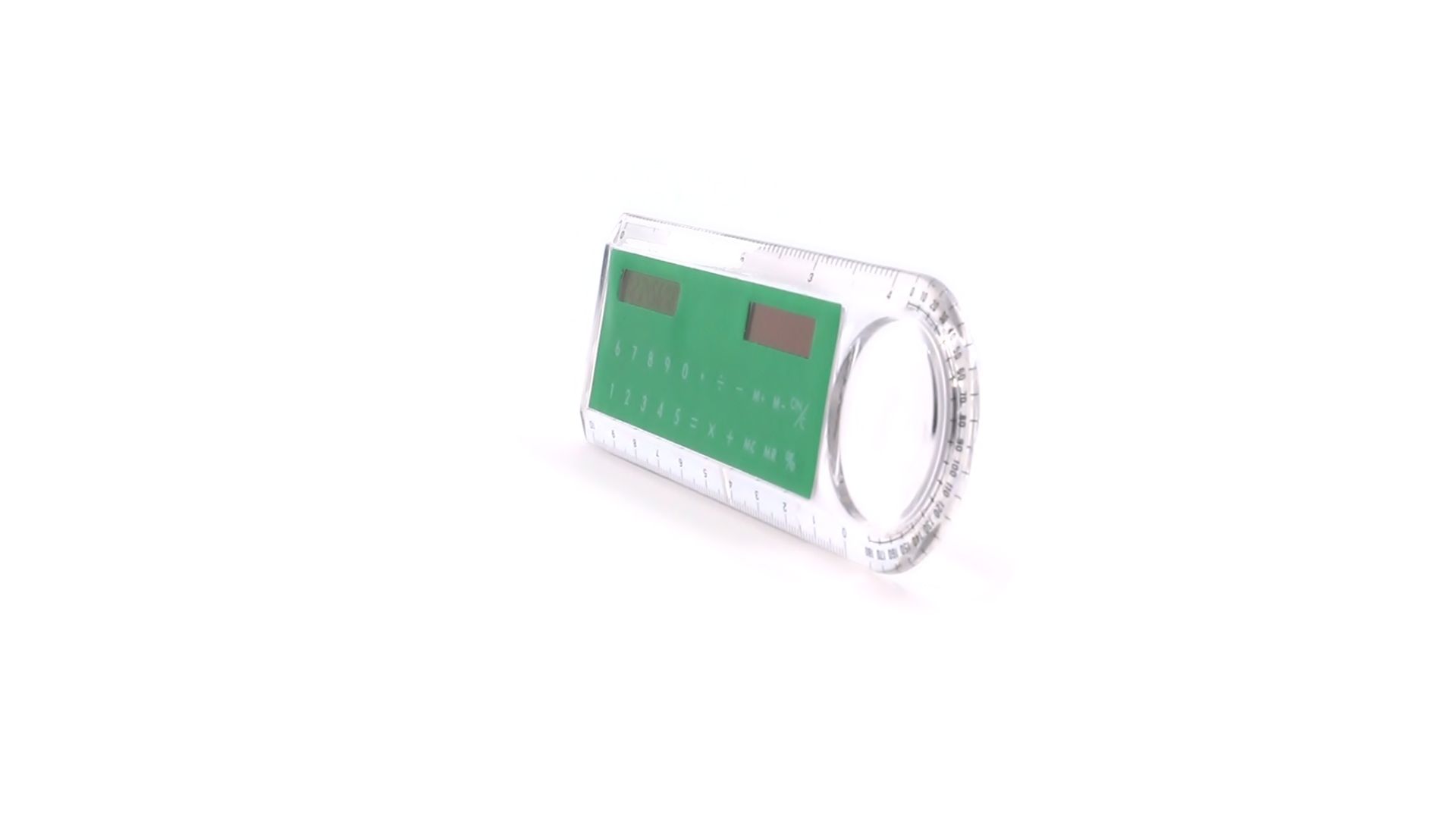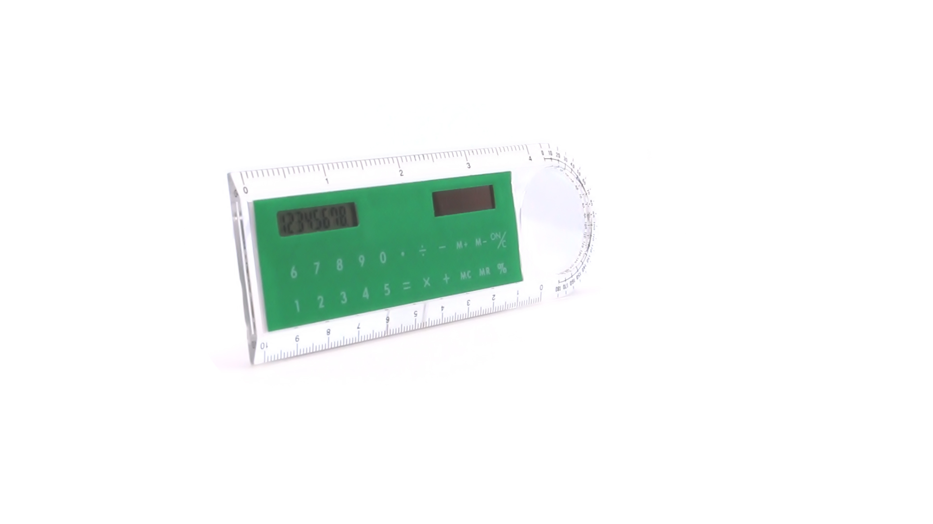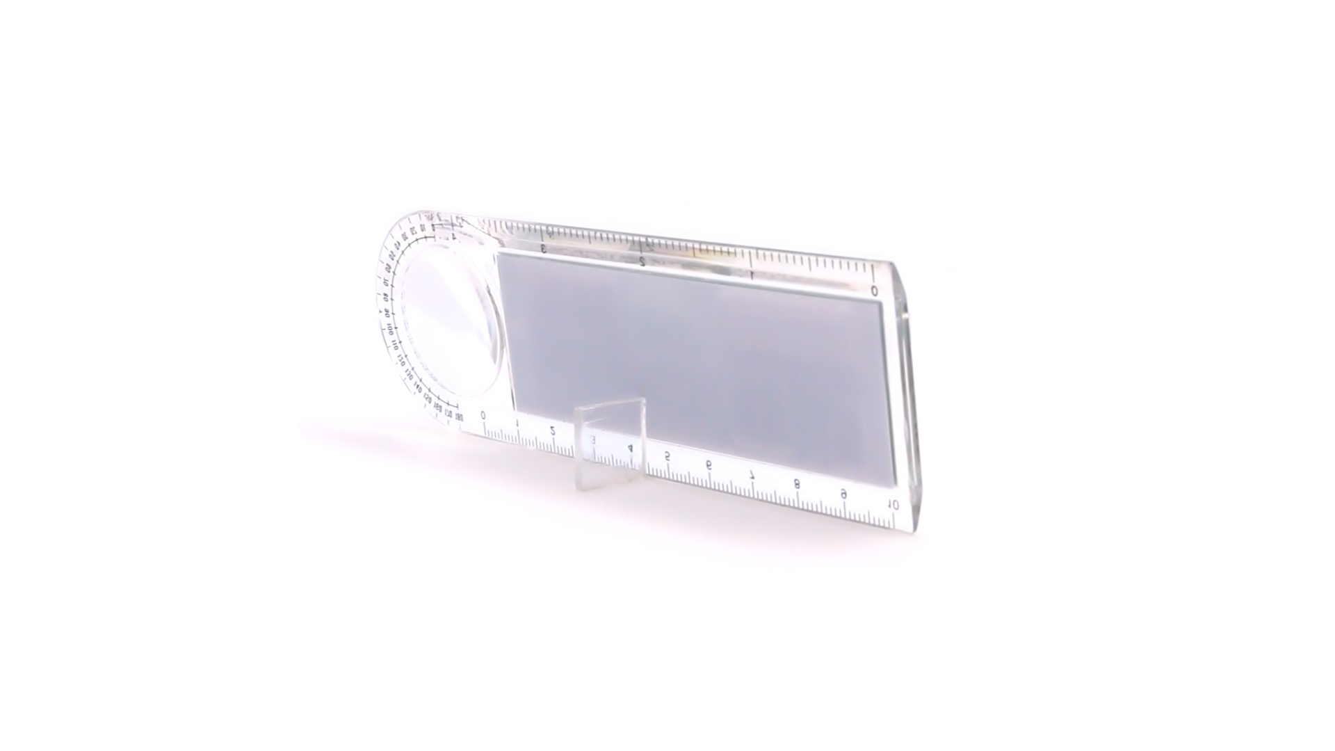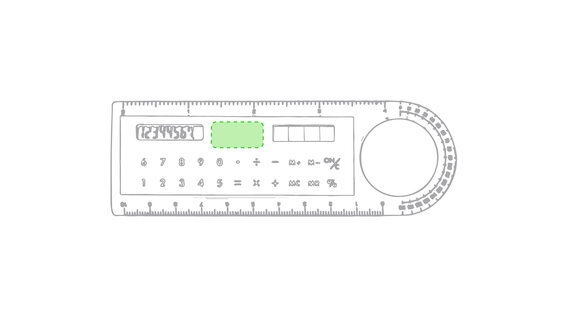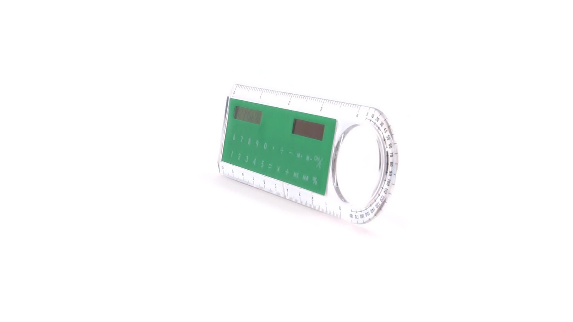 10 cm langes Lineal mit integriertem Solar-Taschenrechner und Lupe. Mit originellem, zweifarbigem Design in lebendigen Farben. Mit Skala in Zentimetern und Zoll und Winkelmesser. Präsentiert in einer individuellen Box.