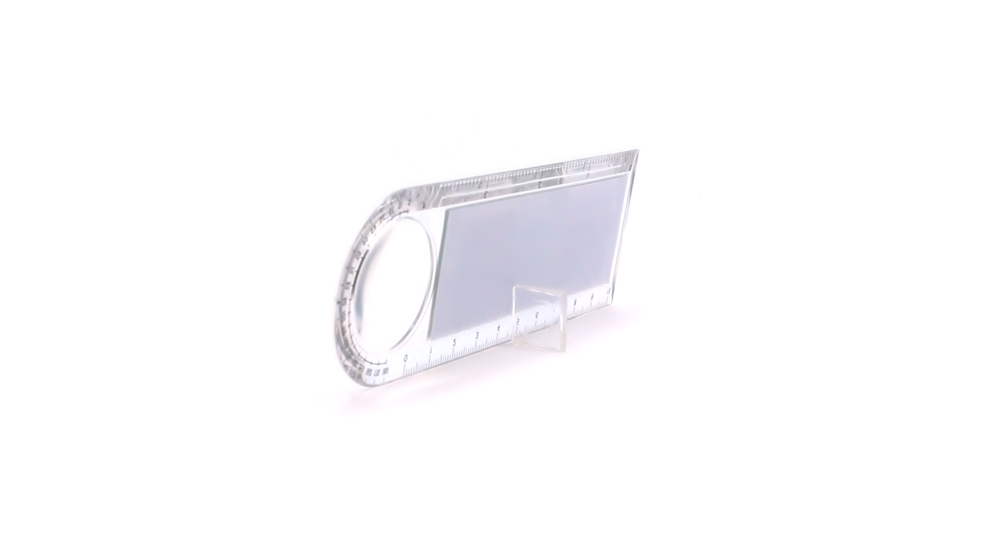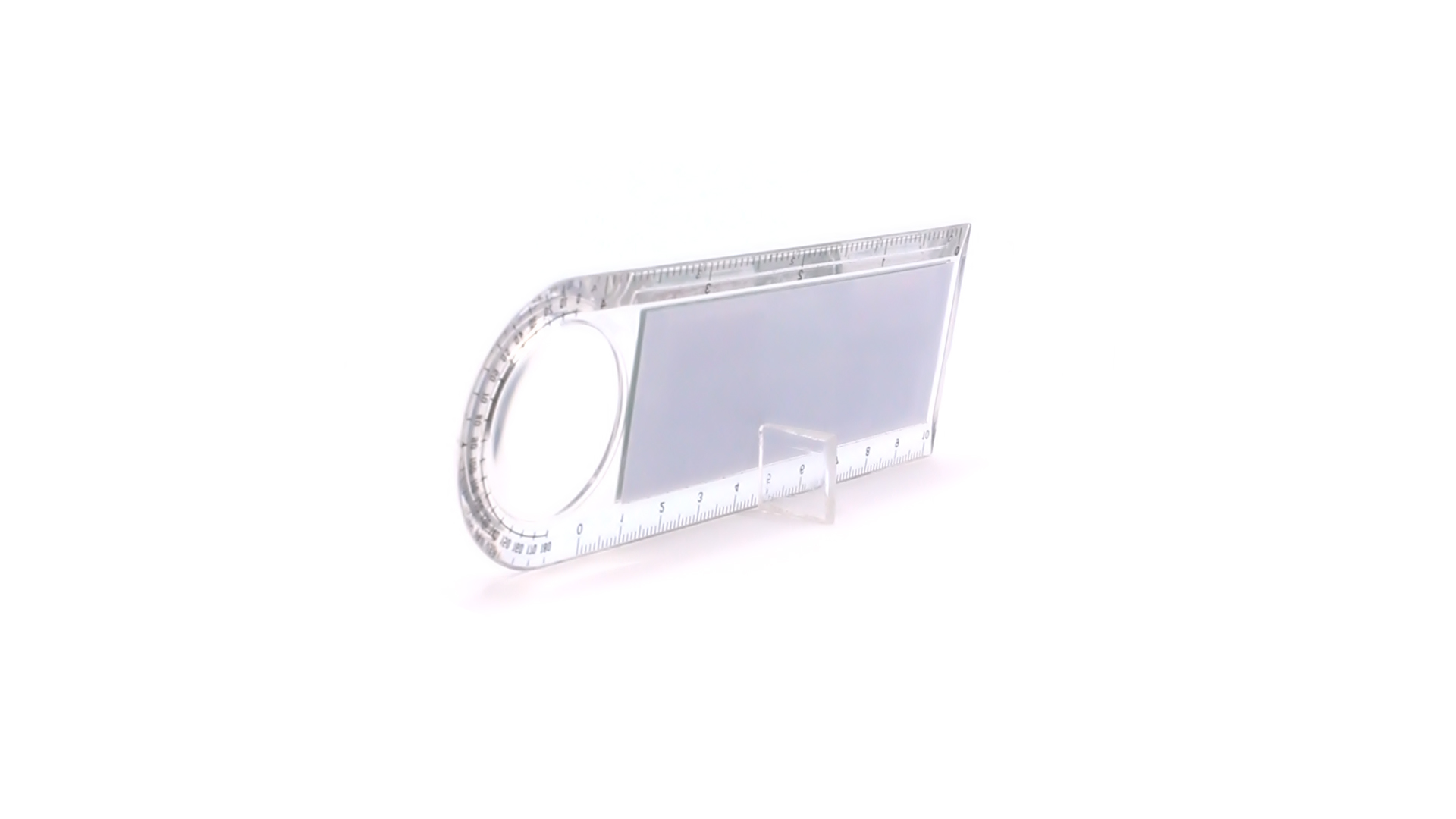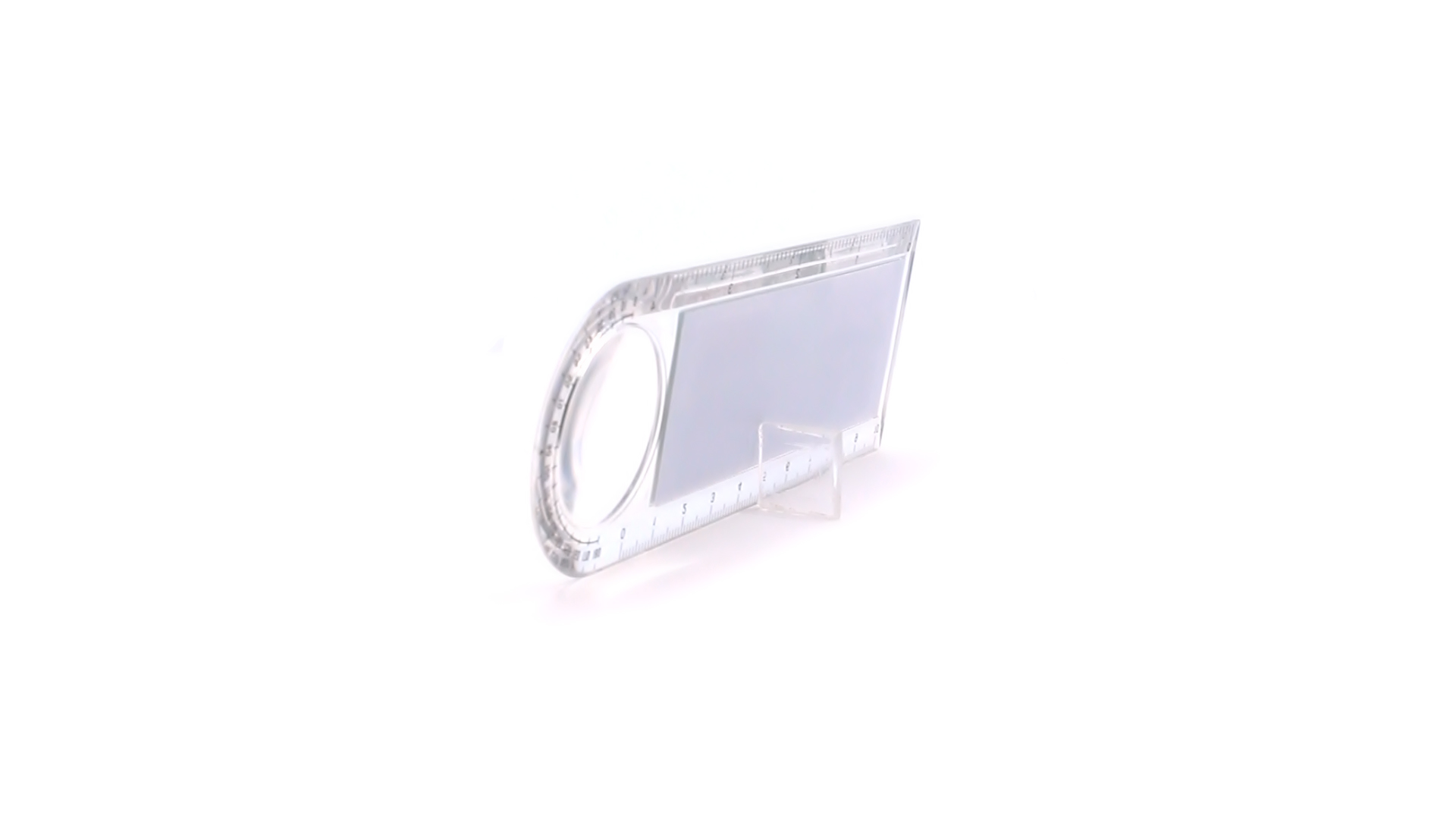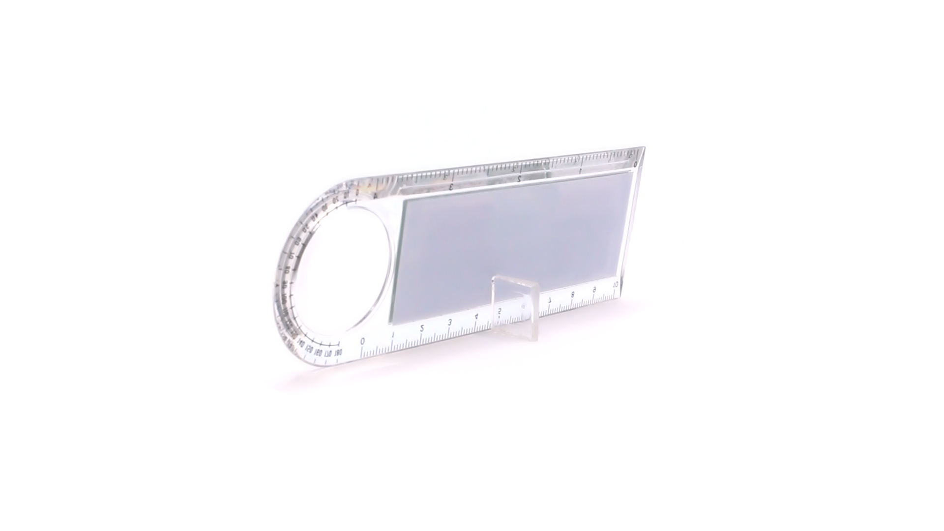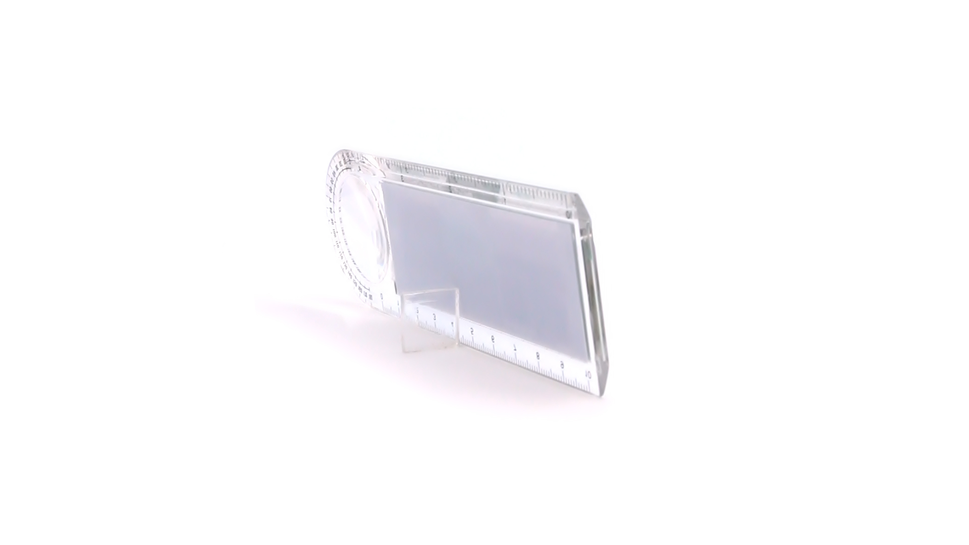 10 cm langes Lineal mit integriertem Solar-Taschenrechner und Lupe. Mit originellem, zweifarbigem Design in lebendigen Farben. Mit Skala in Zentimetern und Zoll und Winkelmesser. Präsentiert in einer individuellen Box.
