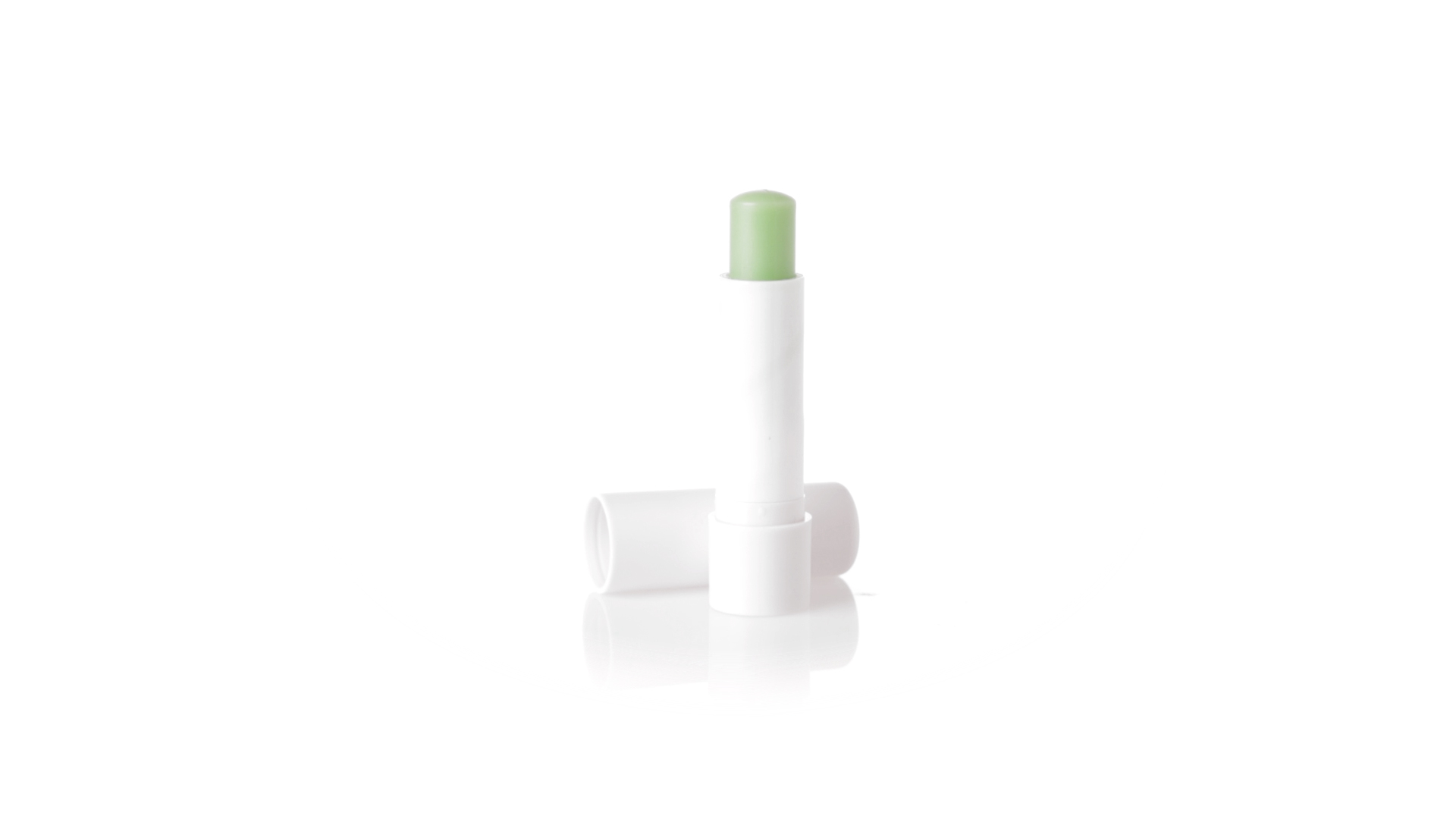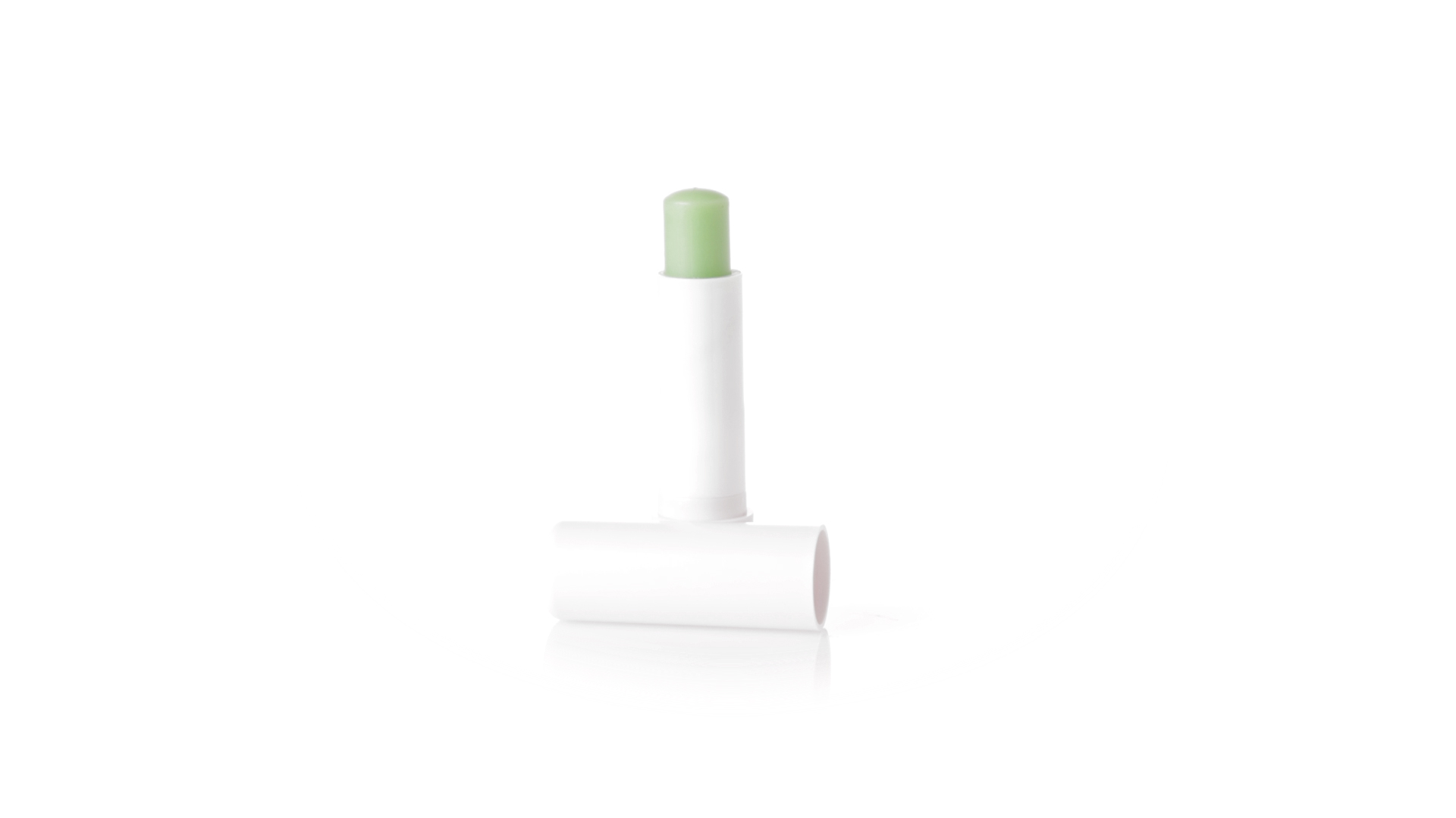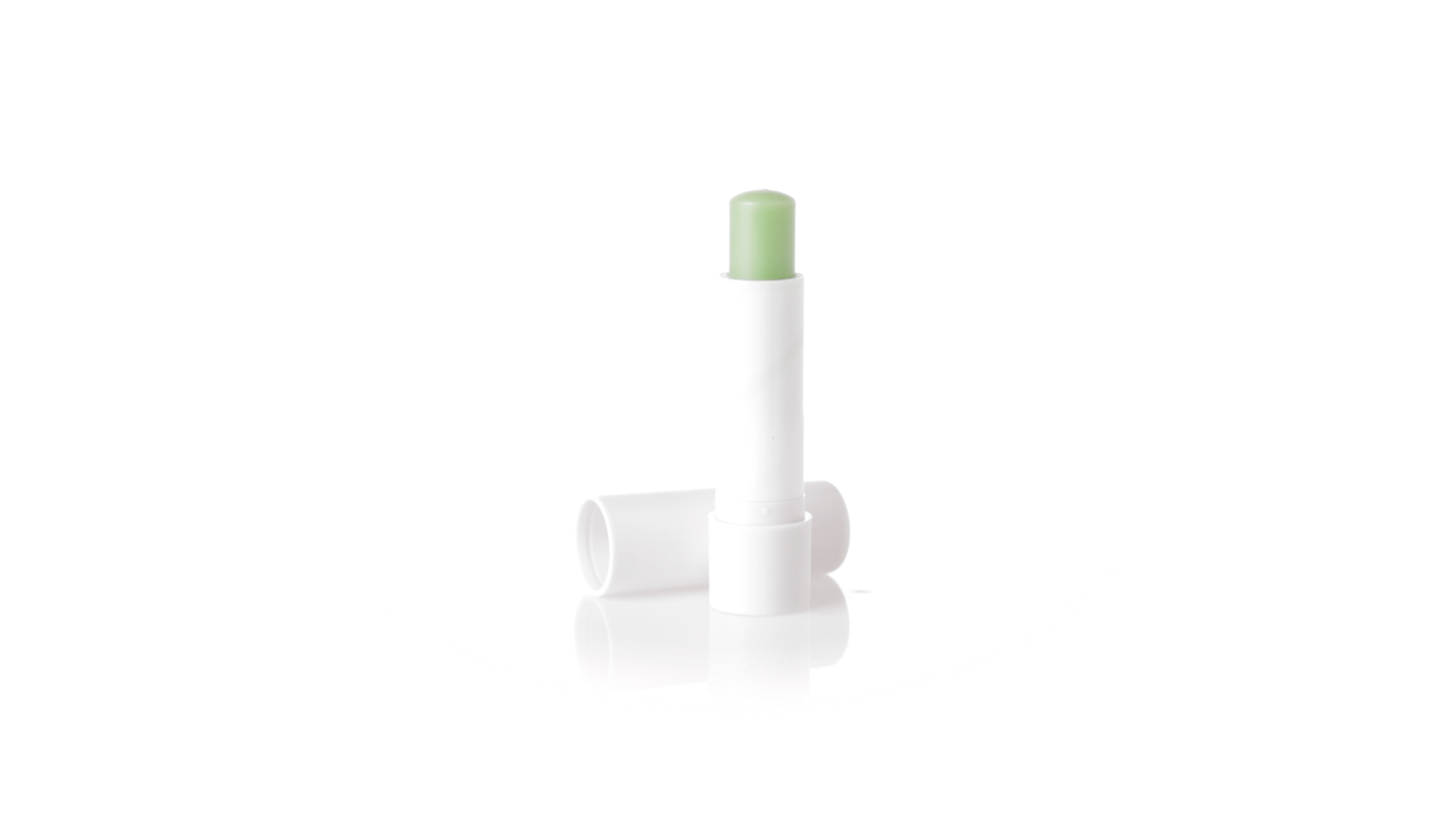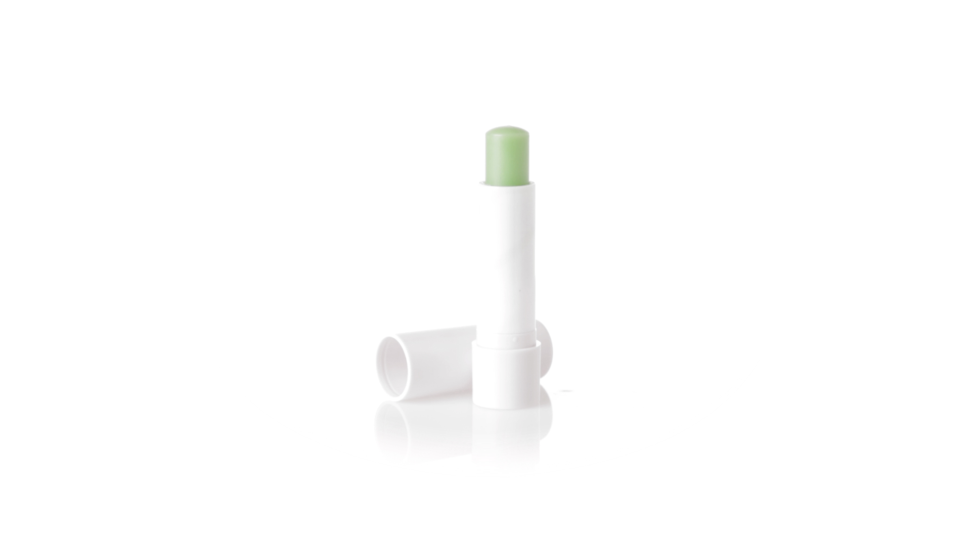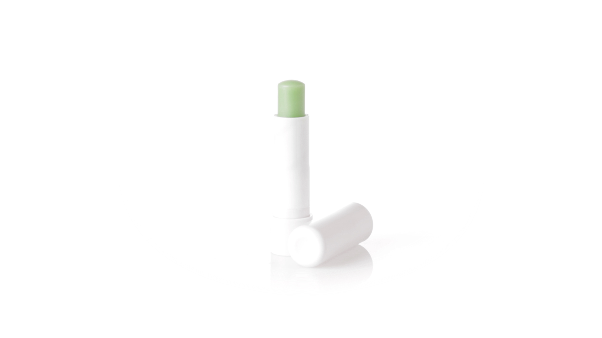 Lippenbalsam mit Aloe-Vera-Duft. In weissem Spenderbehälter mit Deckel.