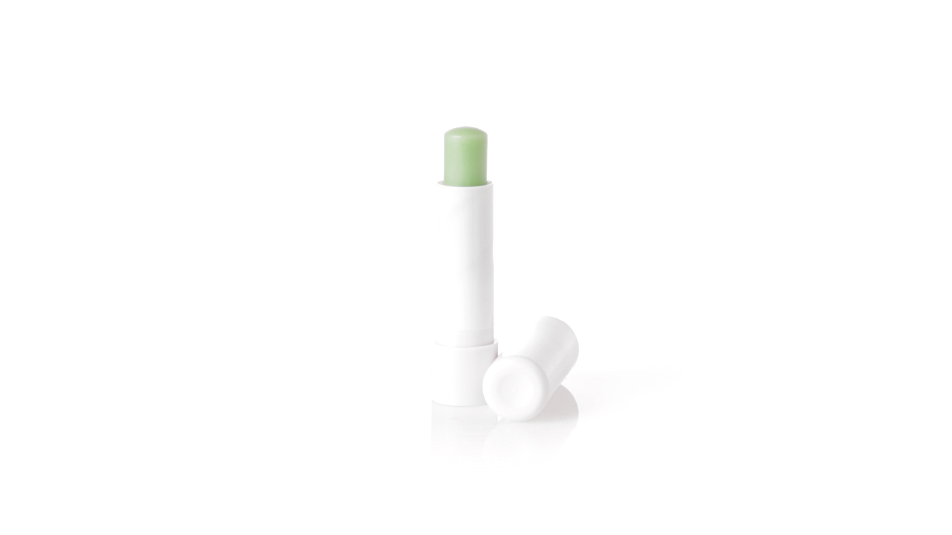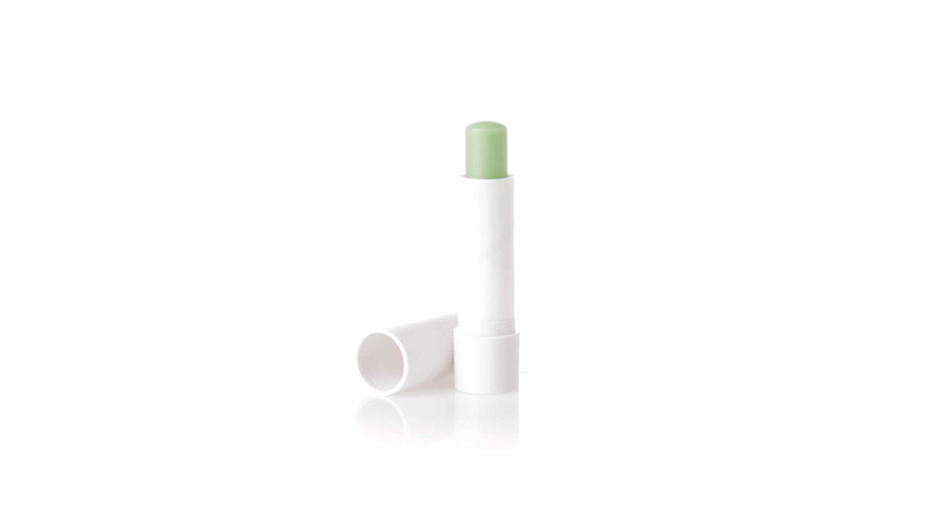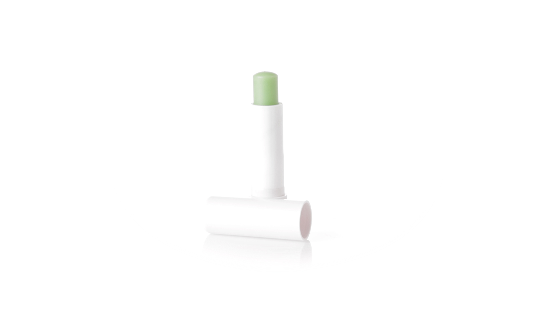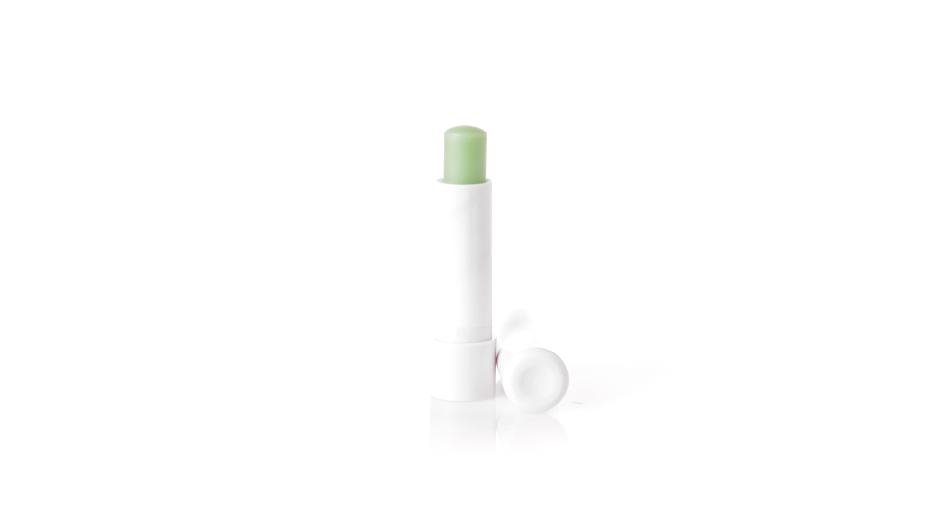 Lippenbalsam mit Aloe-Vera-Duft. In weissem Spenderbehälter mit Deckel.