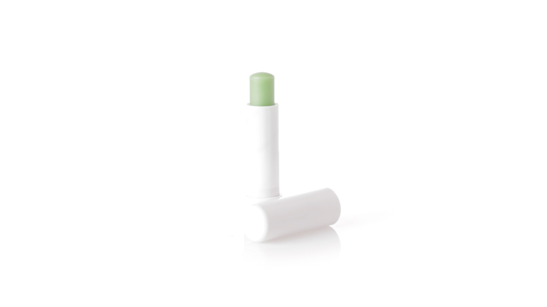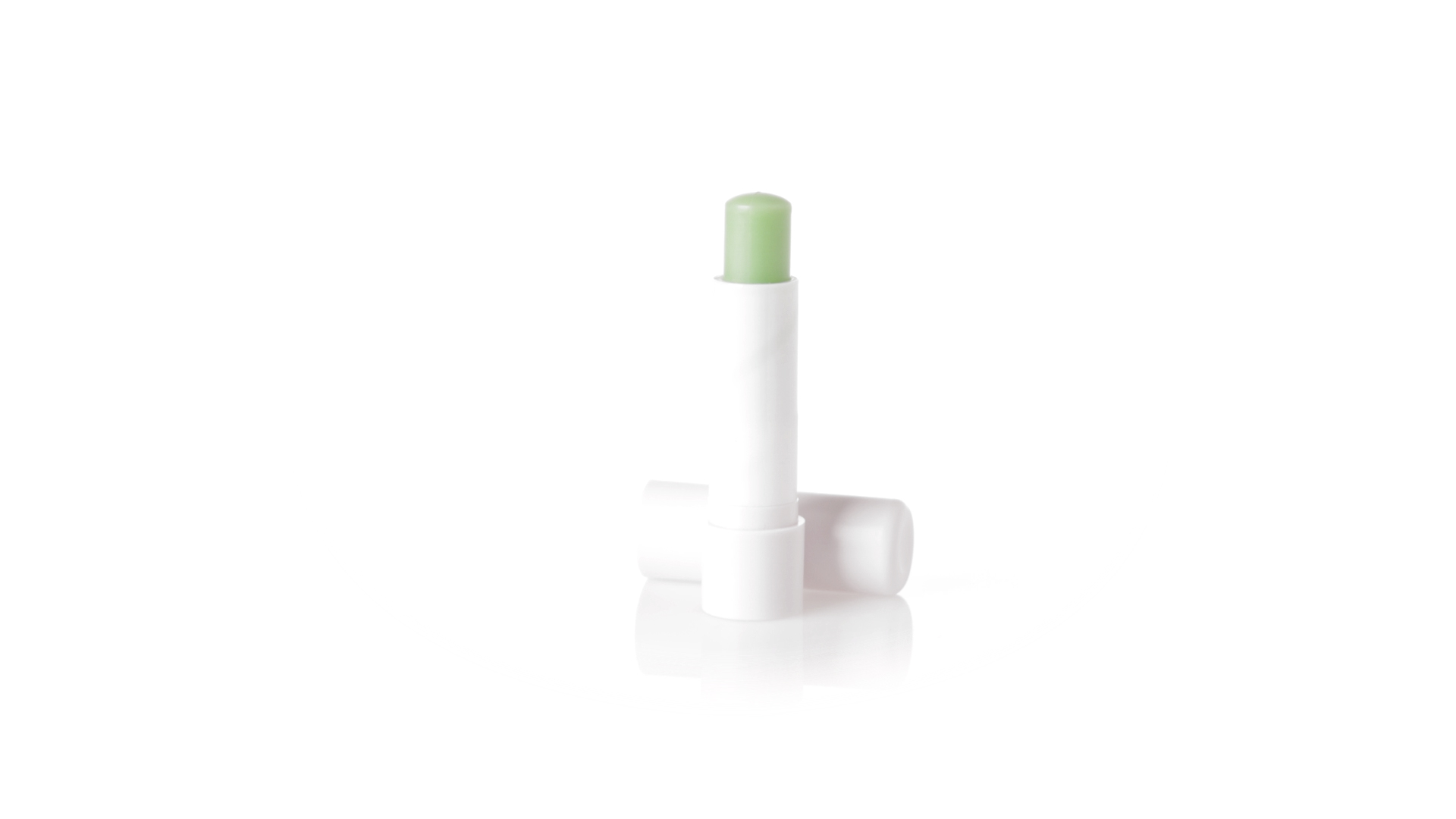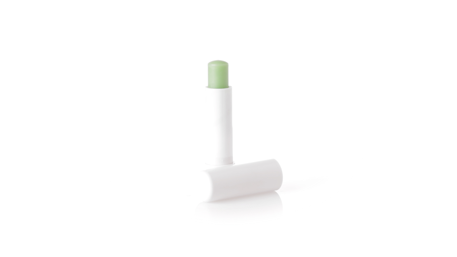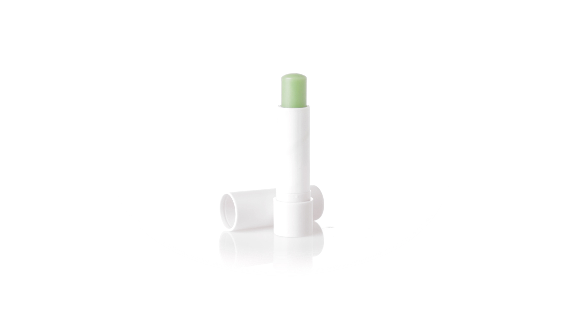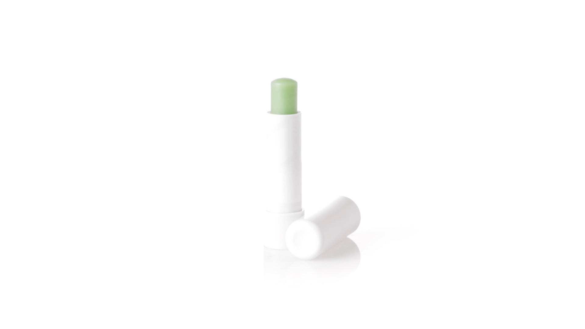 Lippenbalsam mit Aloe-Vera-Duft. In weissem Spenderbehälter mit Deckel.