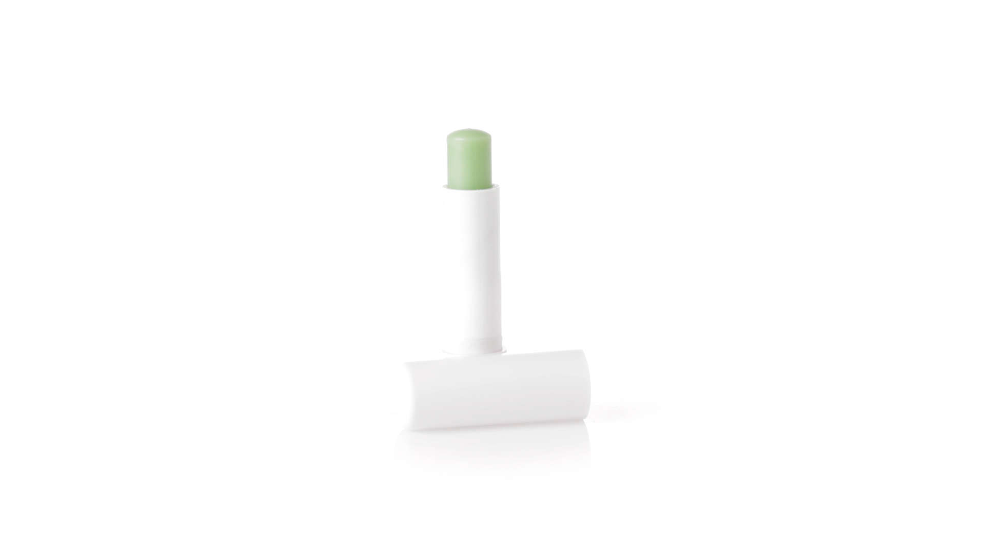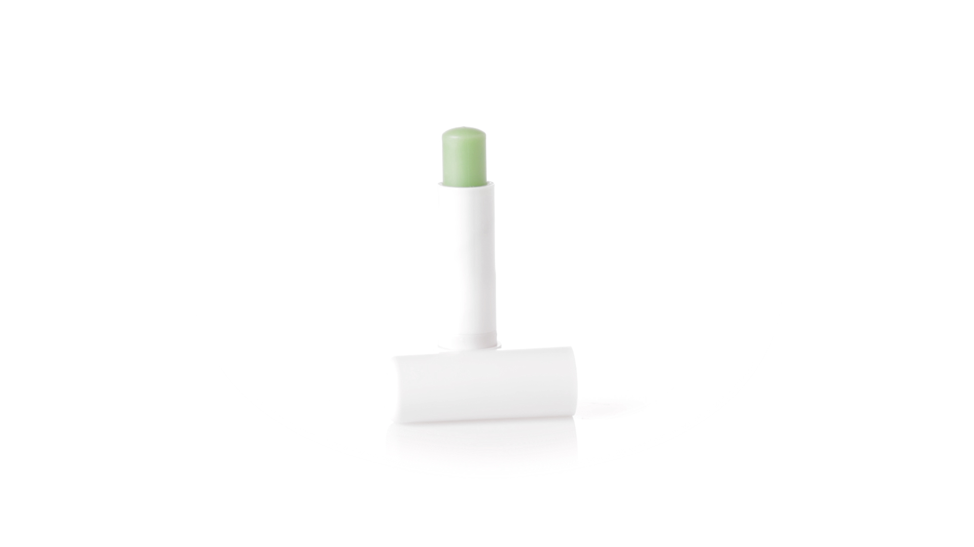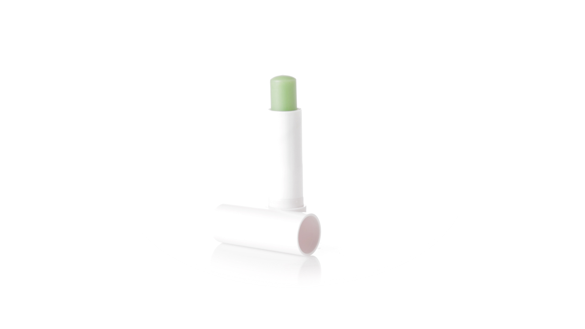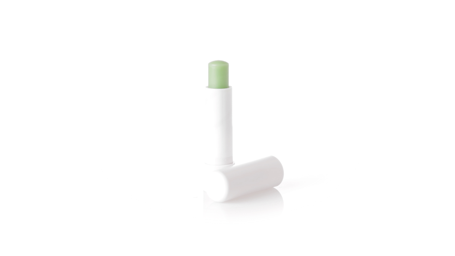 Lippenbalsam mit Aloe-Vera-Duft. In weissem Spenderbehälter mit Deckel.