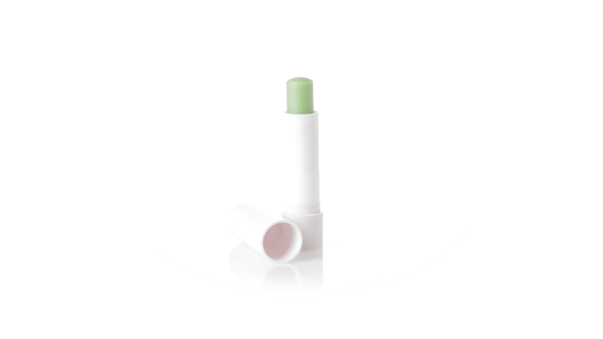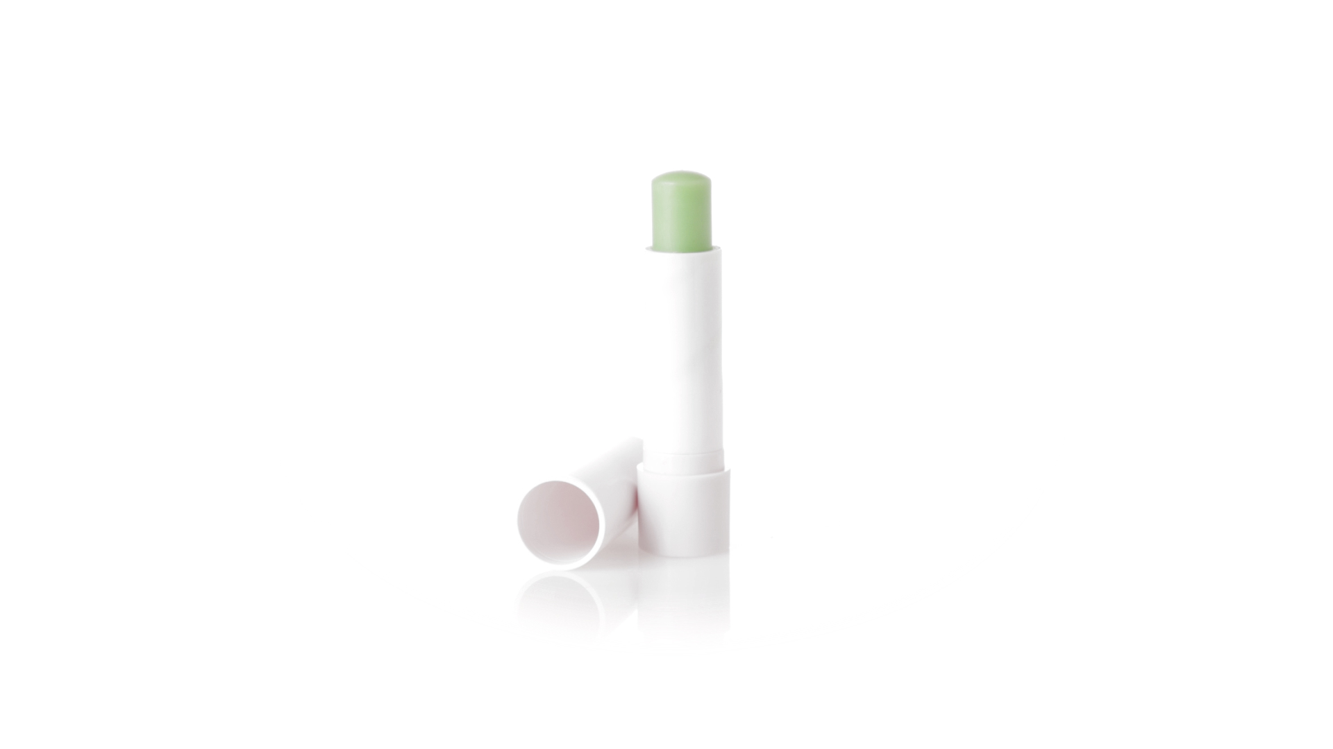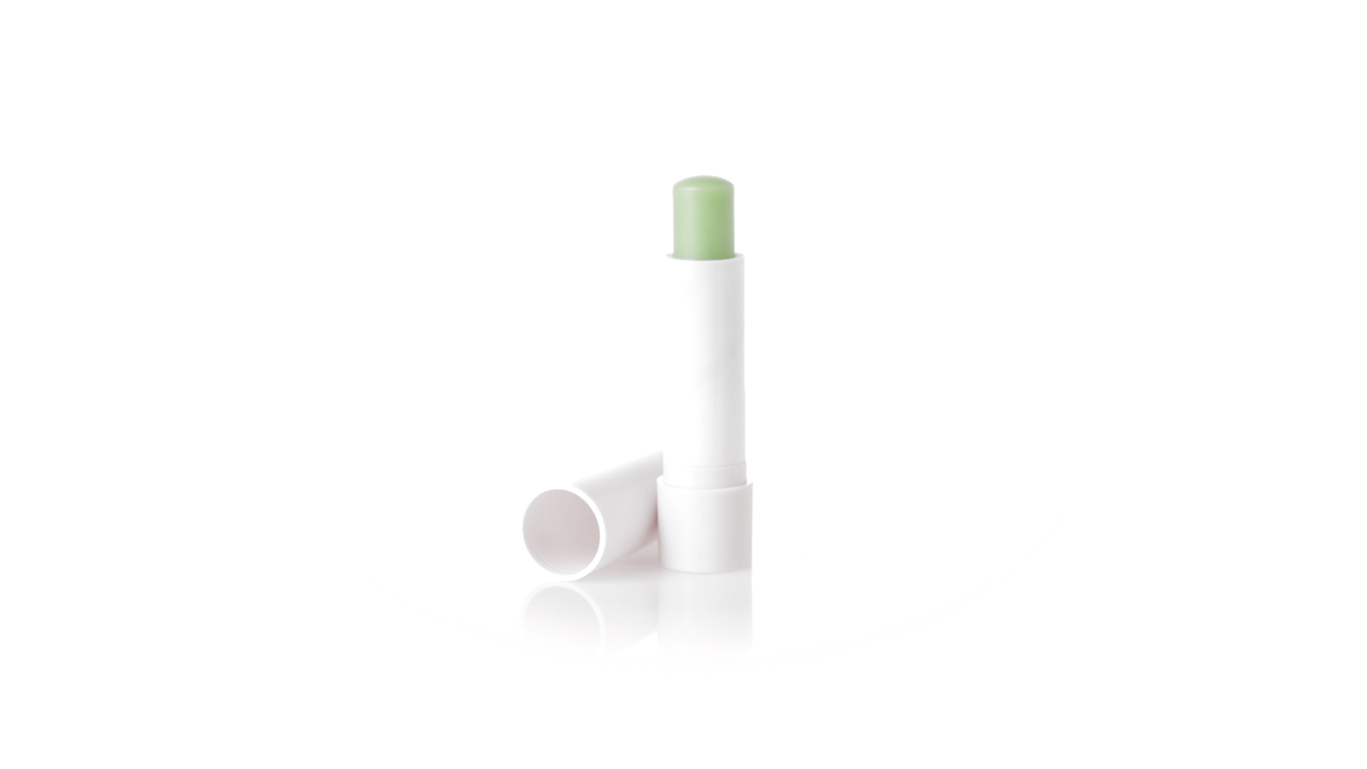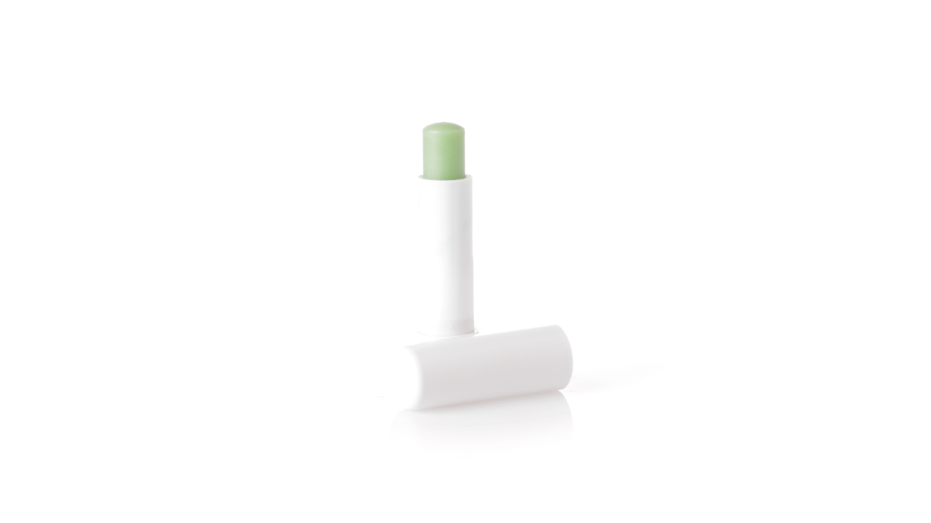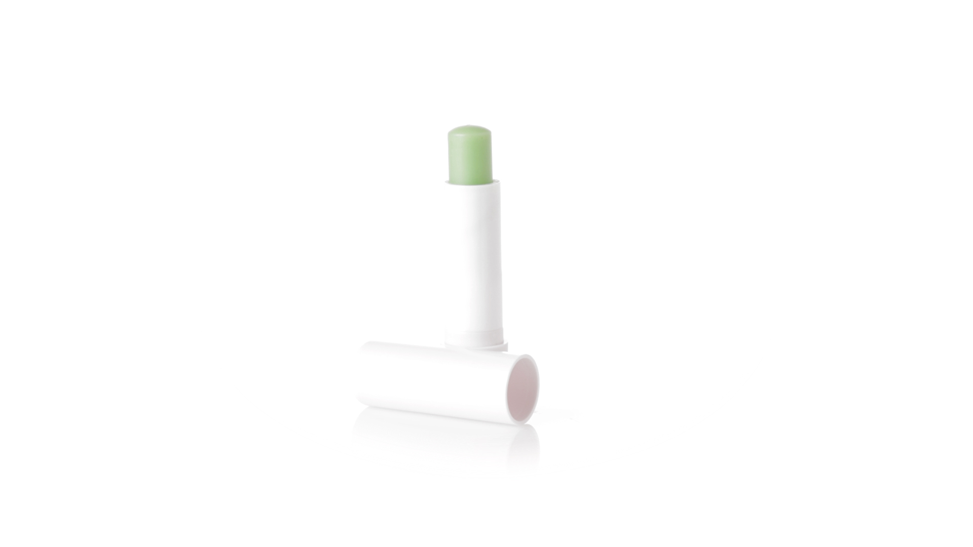Lippenbalsam mit Aloe-Vera-Duft. In weissem Spenderbehälter mit Deckel.