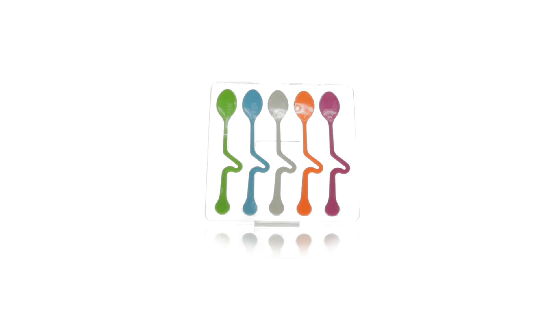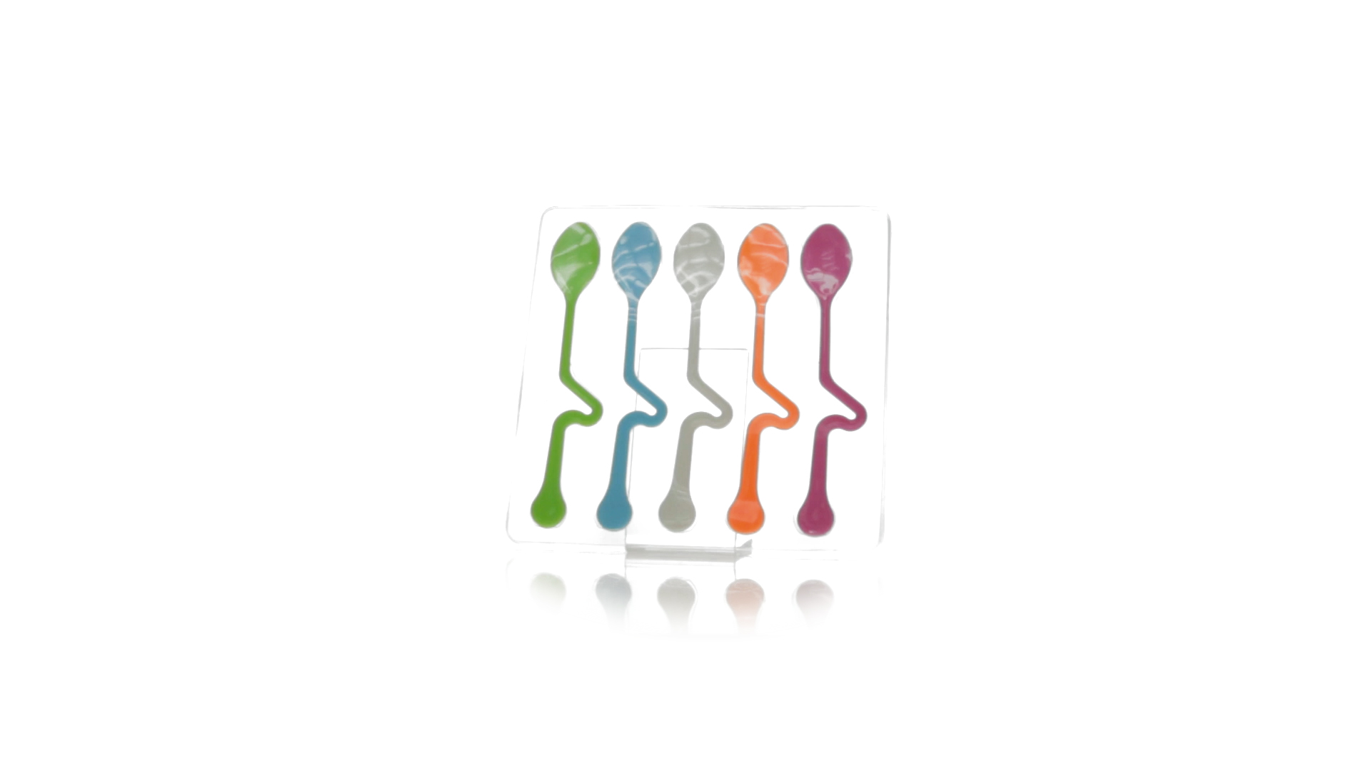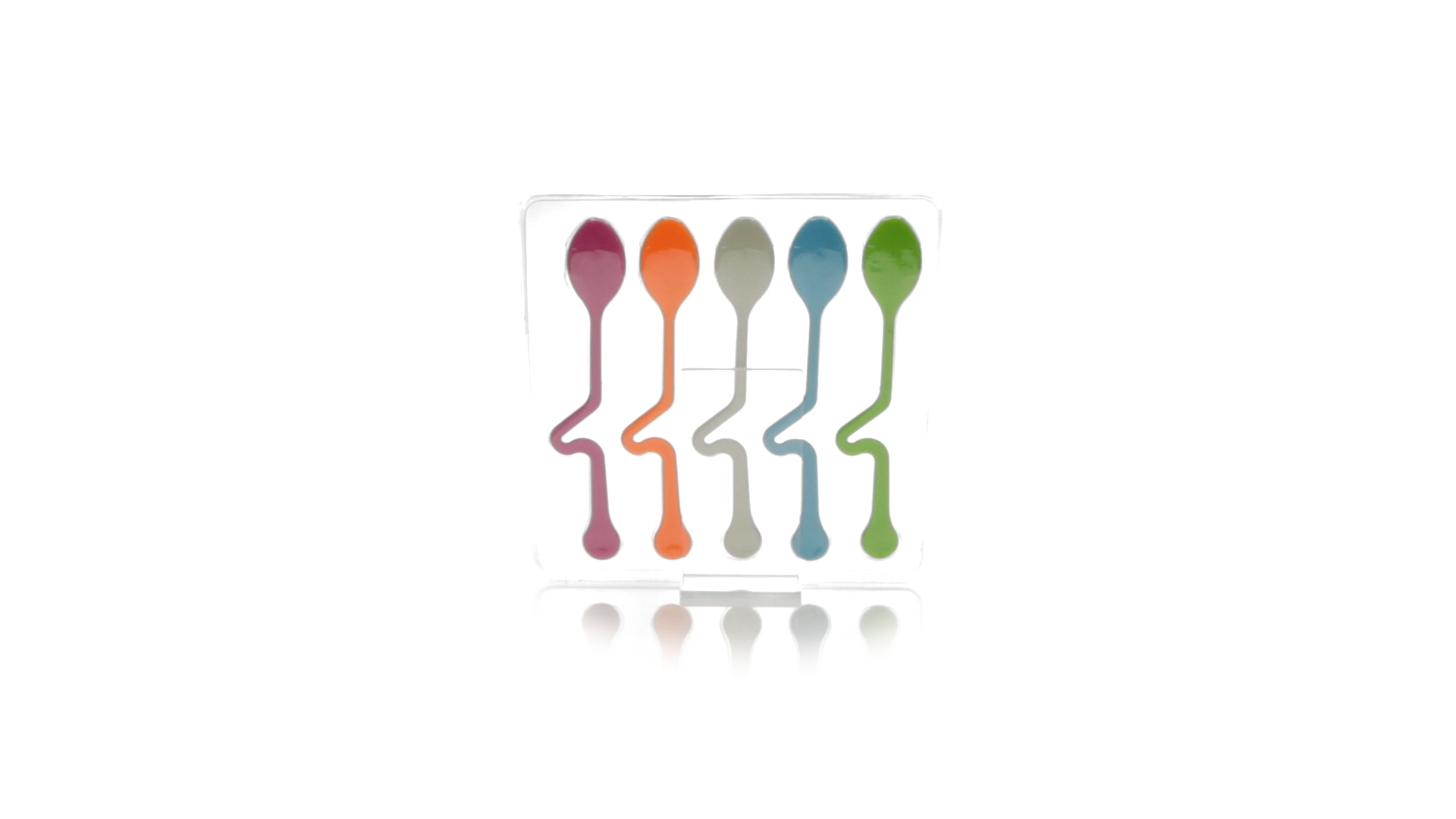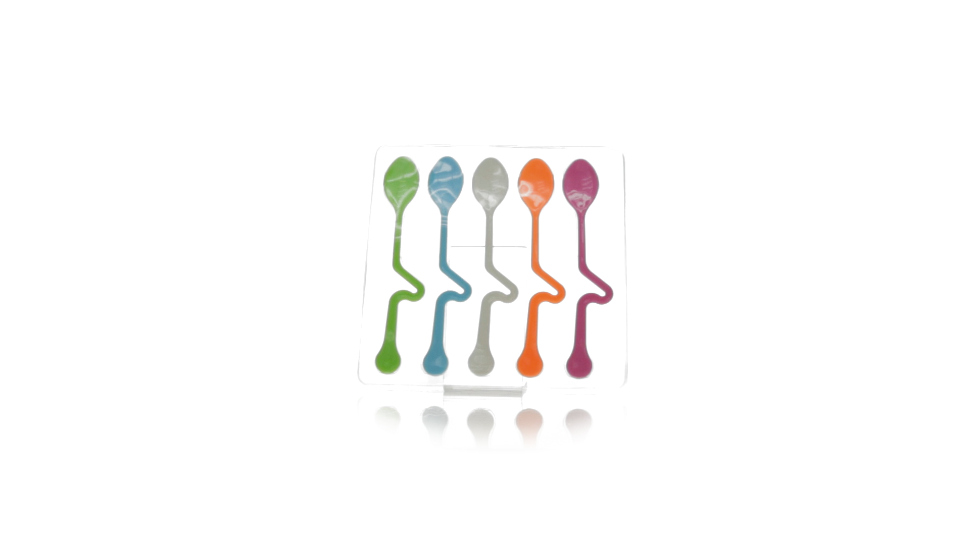 Lustiges Set aus 5 Löffeln in leuchtenden Farben und mit Körper, der speziell entworfen wurde, um die Löffel am Tassenrand zu befestigen.