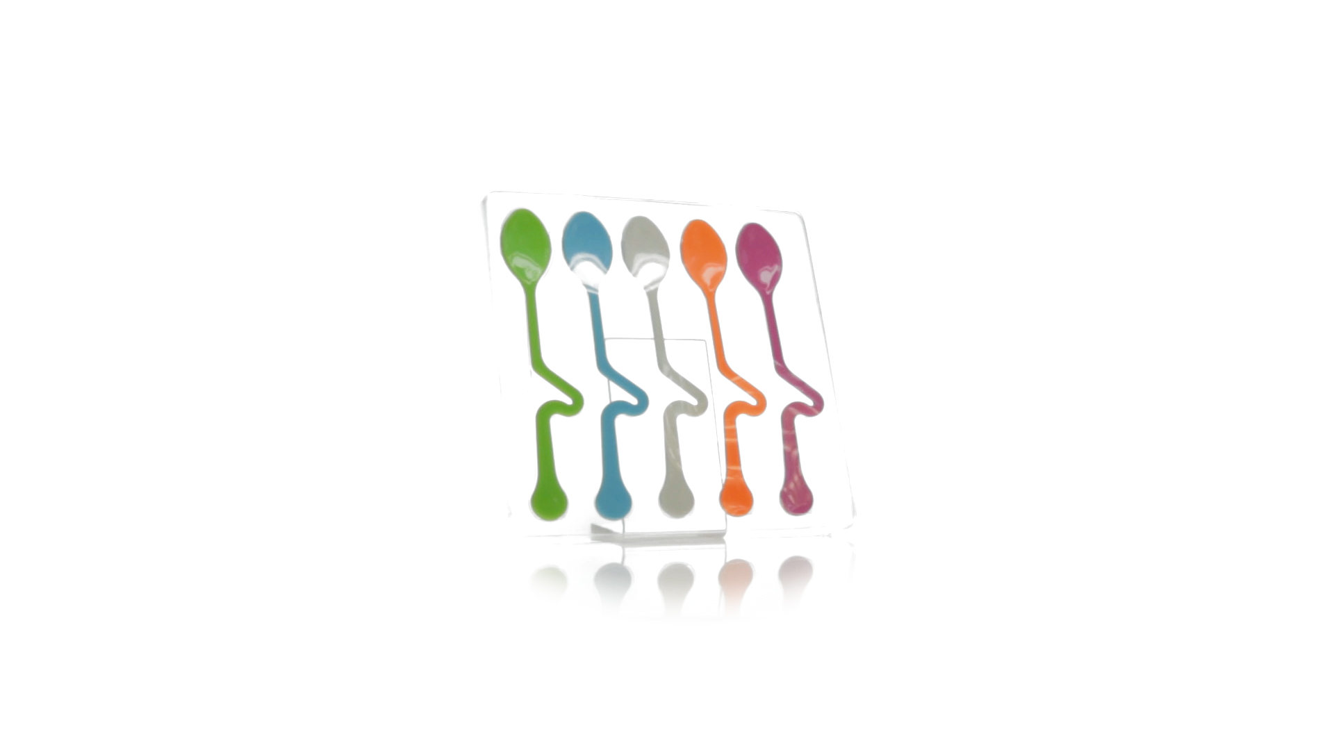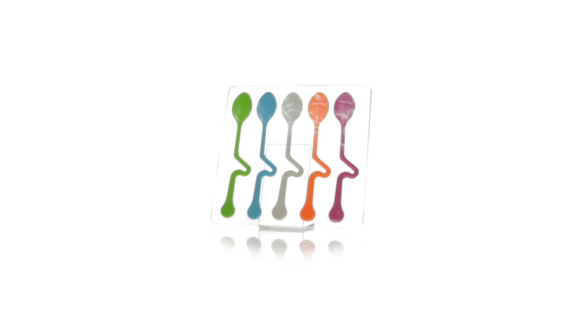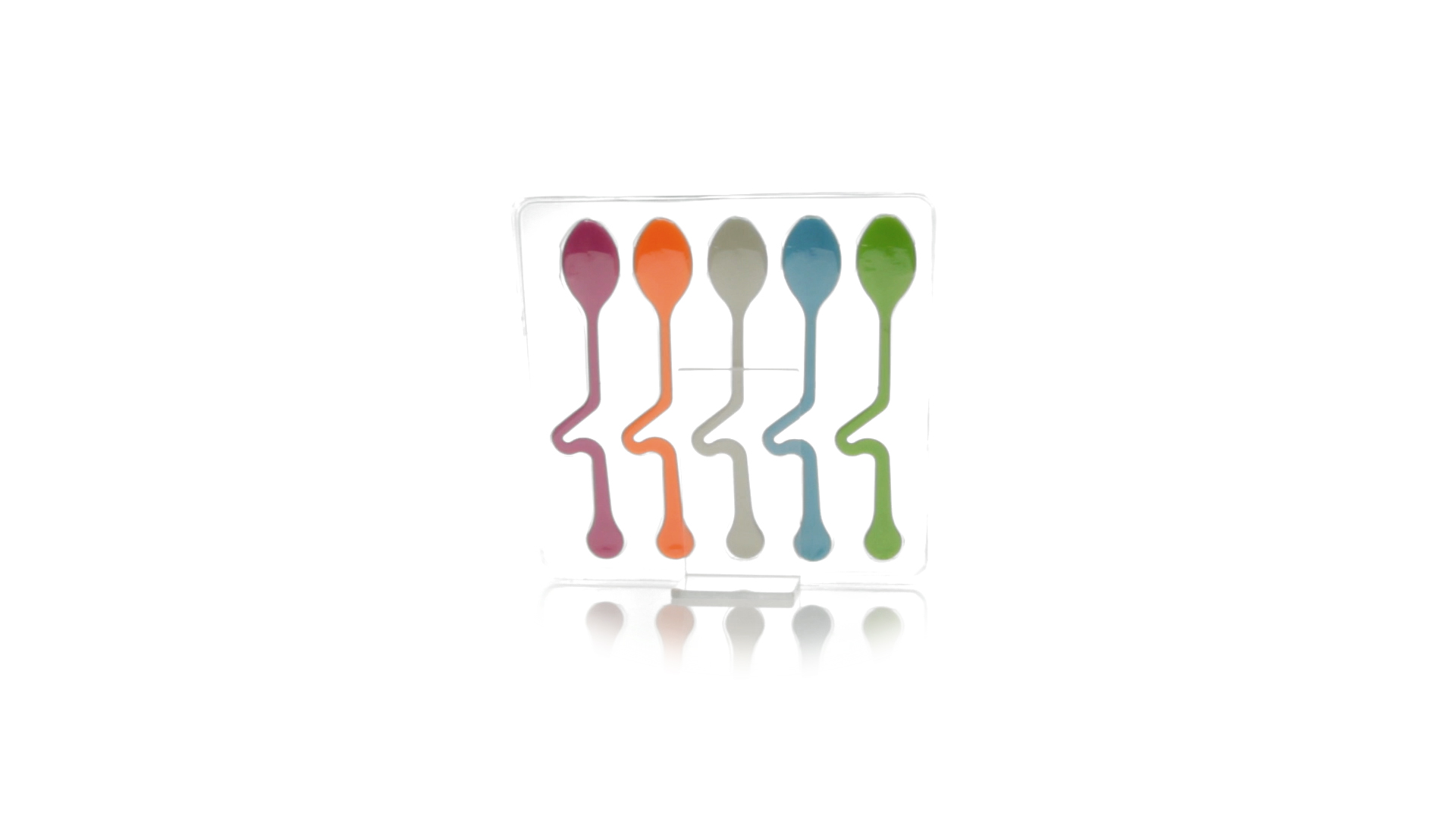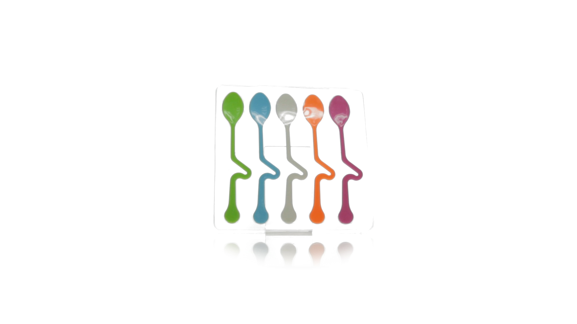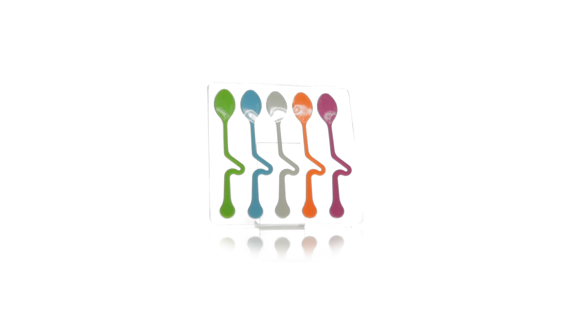 Lustiges Set aus 5 Löffeln in leuchtenden Farben und mit Körper, der speziell entworfen wurde, um die Löffel am Tassenrand zu befestigen.