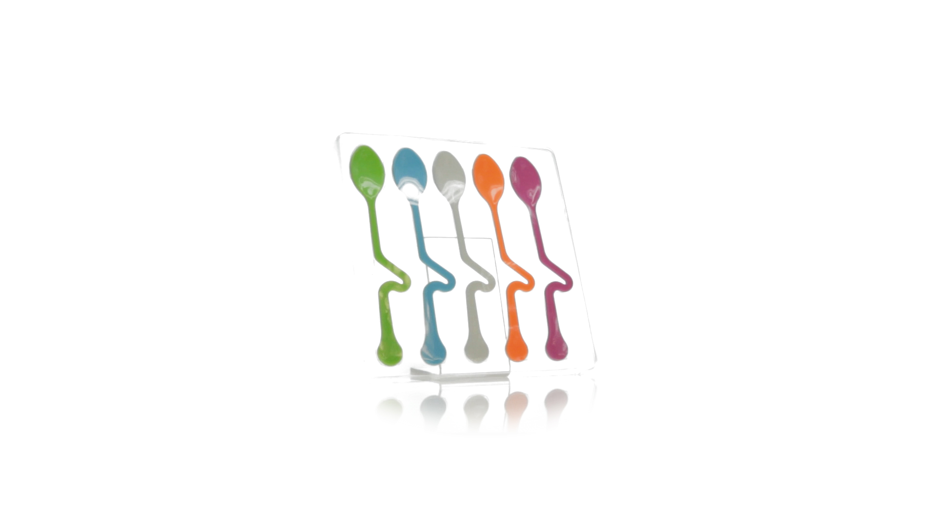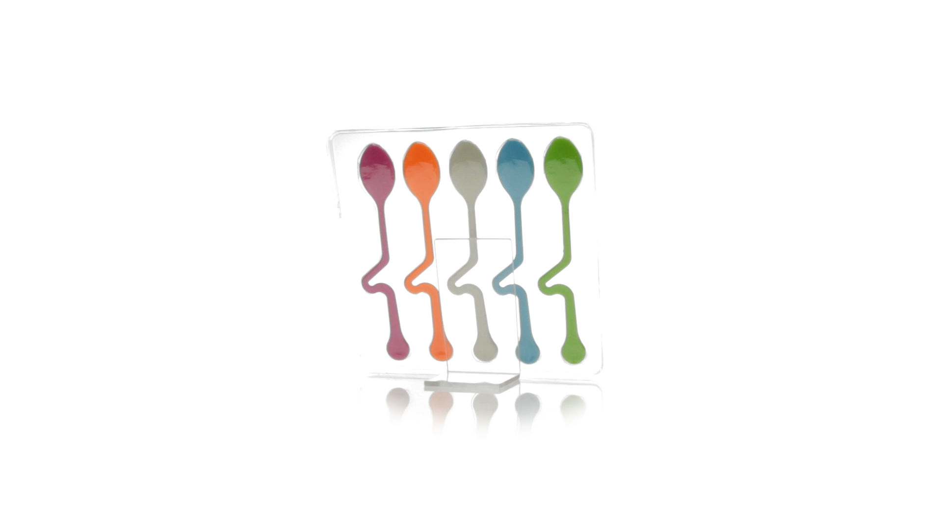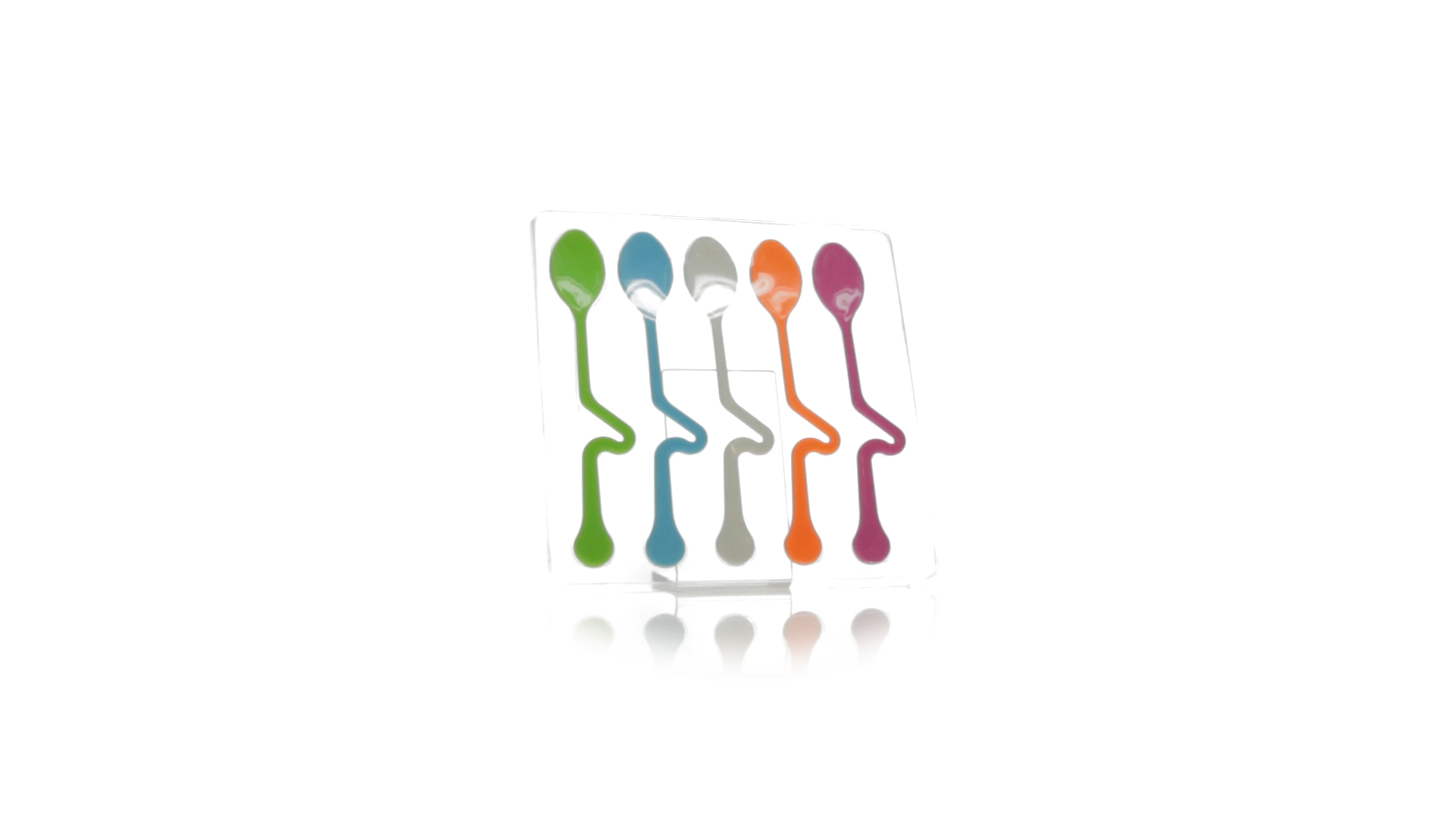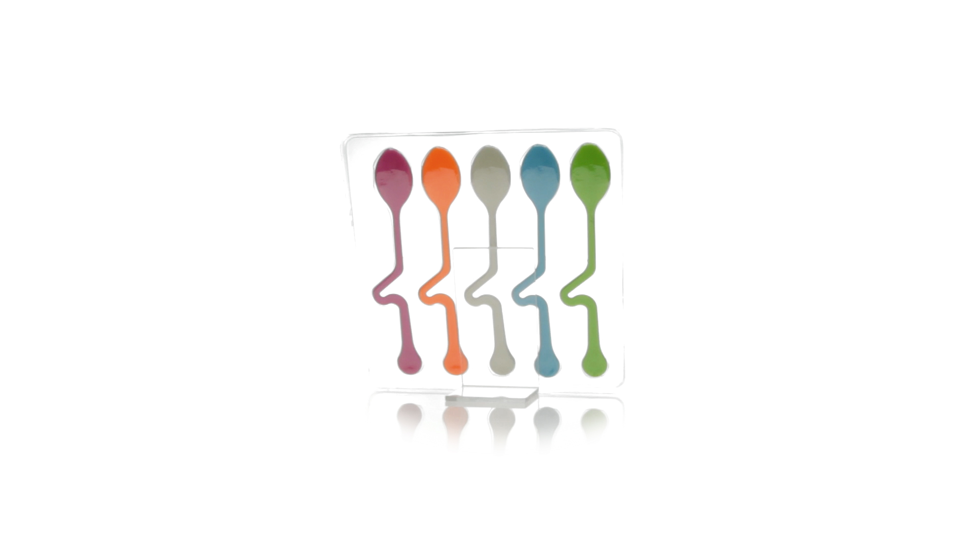 Lustiges Set aus 5 Löffeln in leuchtenden Farben und mit Körper, der speziell entworfen wurde, um die Löffel am Tassenrand zu befestigen.