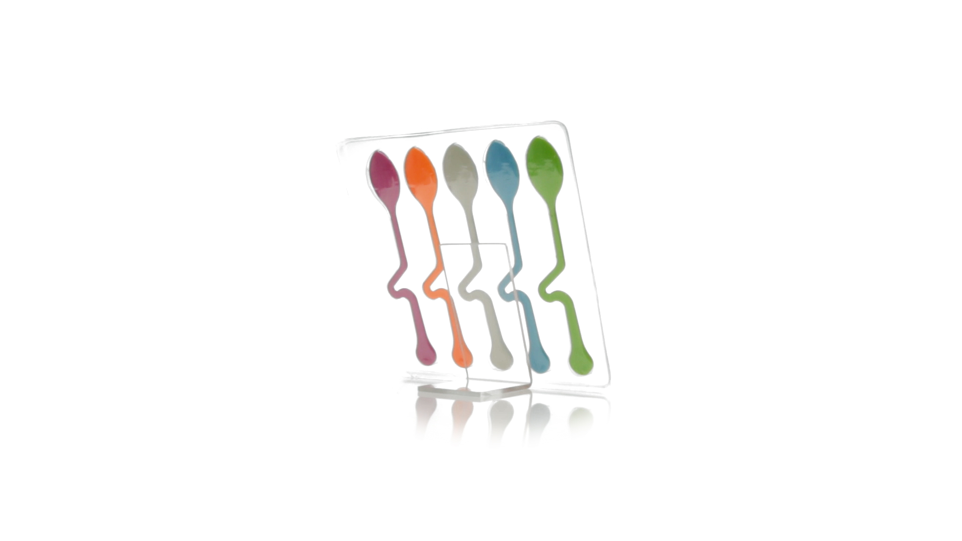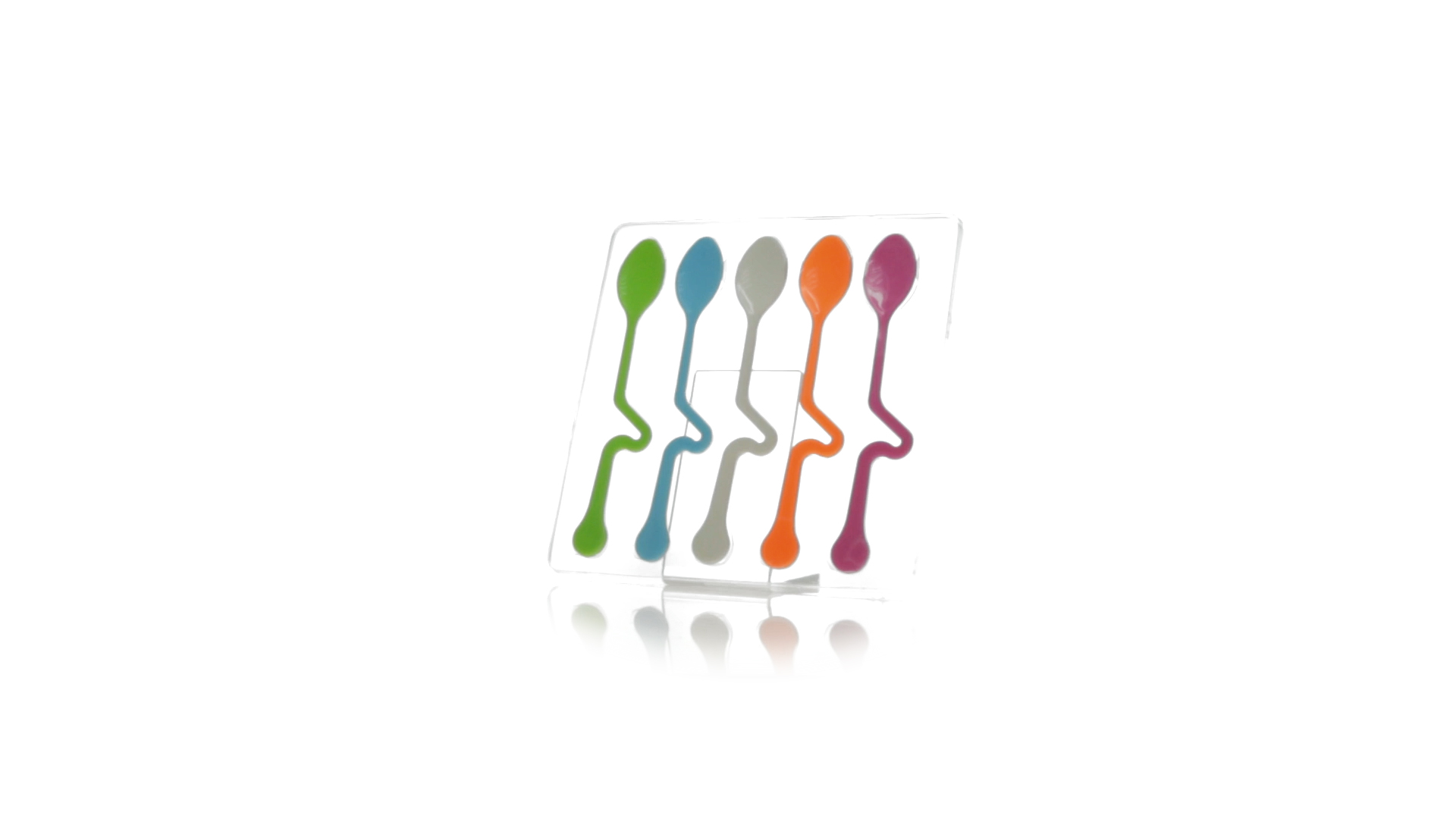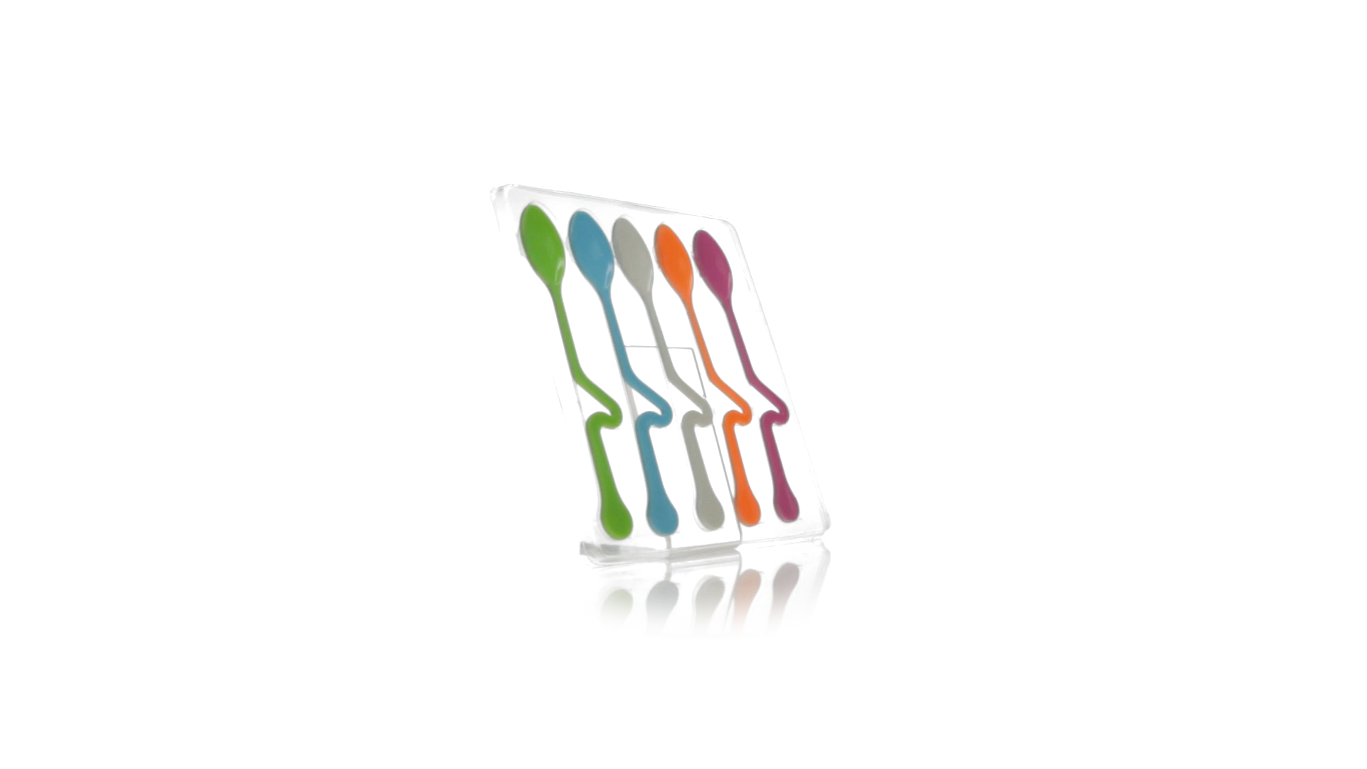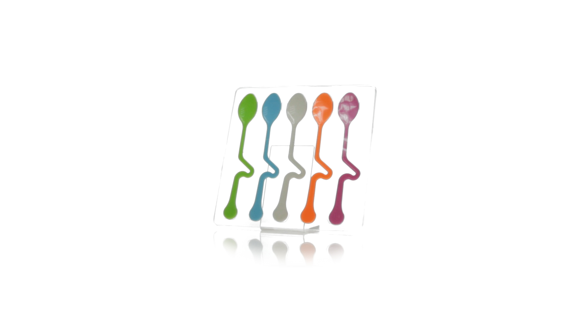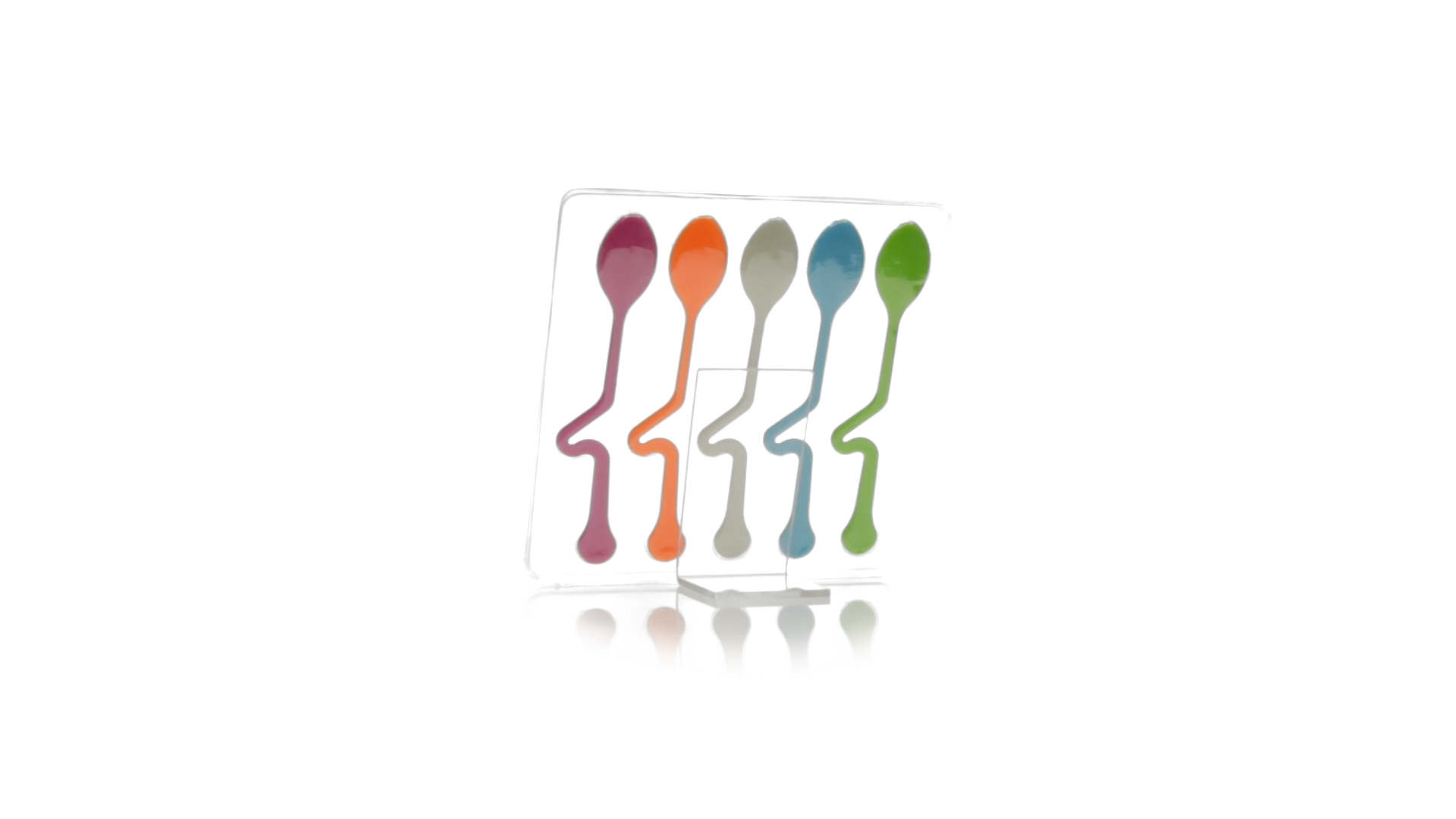 Lustiges Set aus 5 Löffeln in leuchtenden Farben und mit Körper, der speziell entworfen wurde, um die Löffel am Tassenrand zu befestigen.