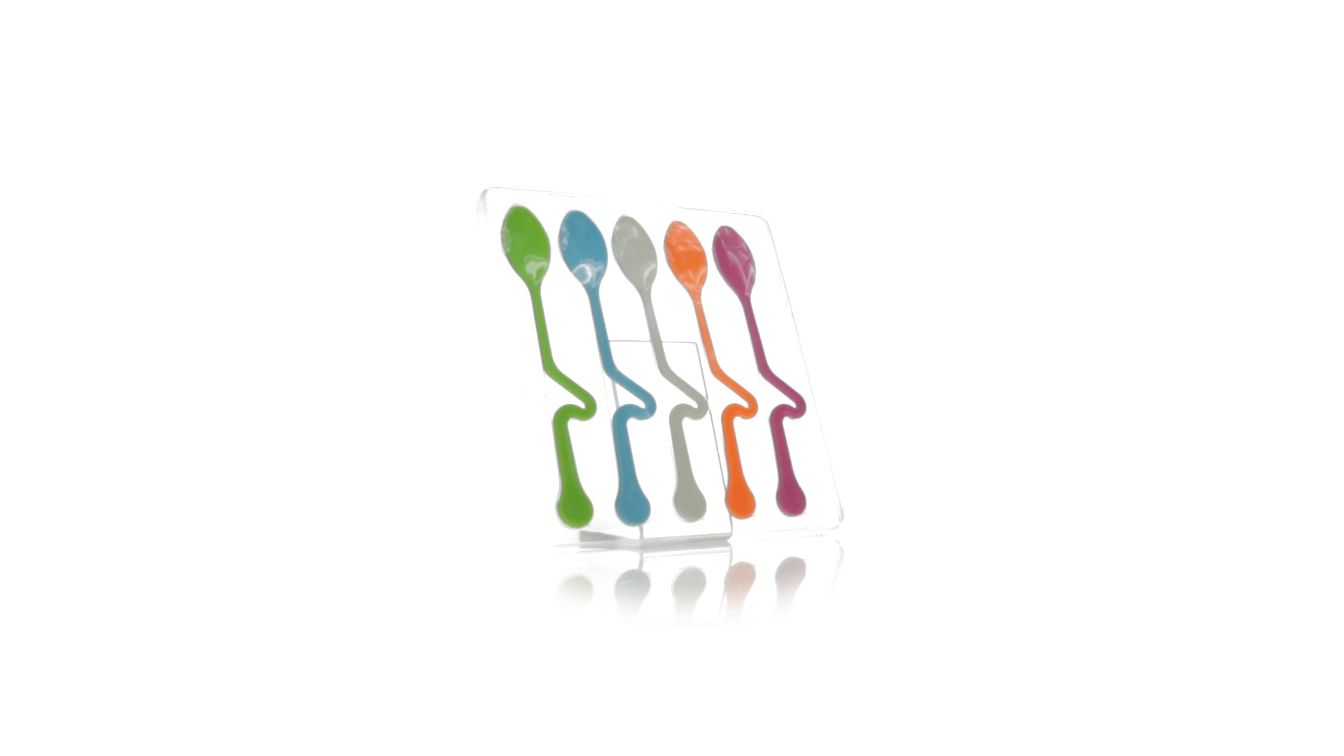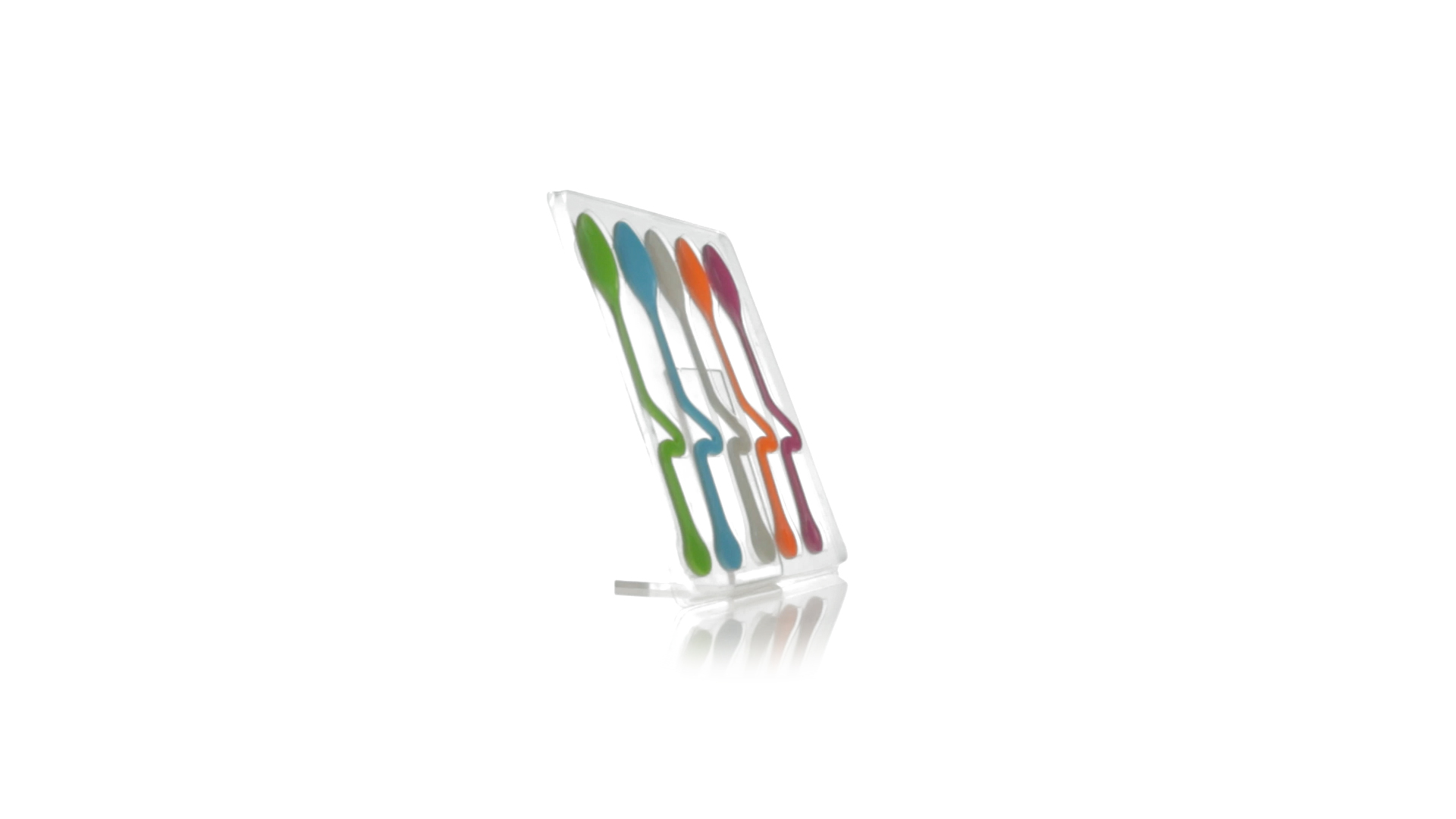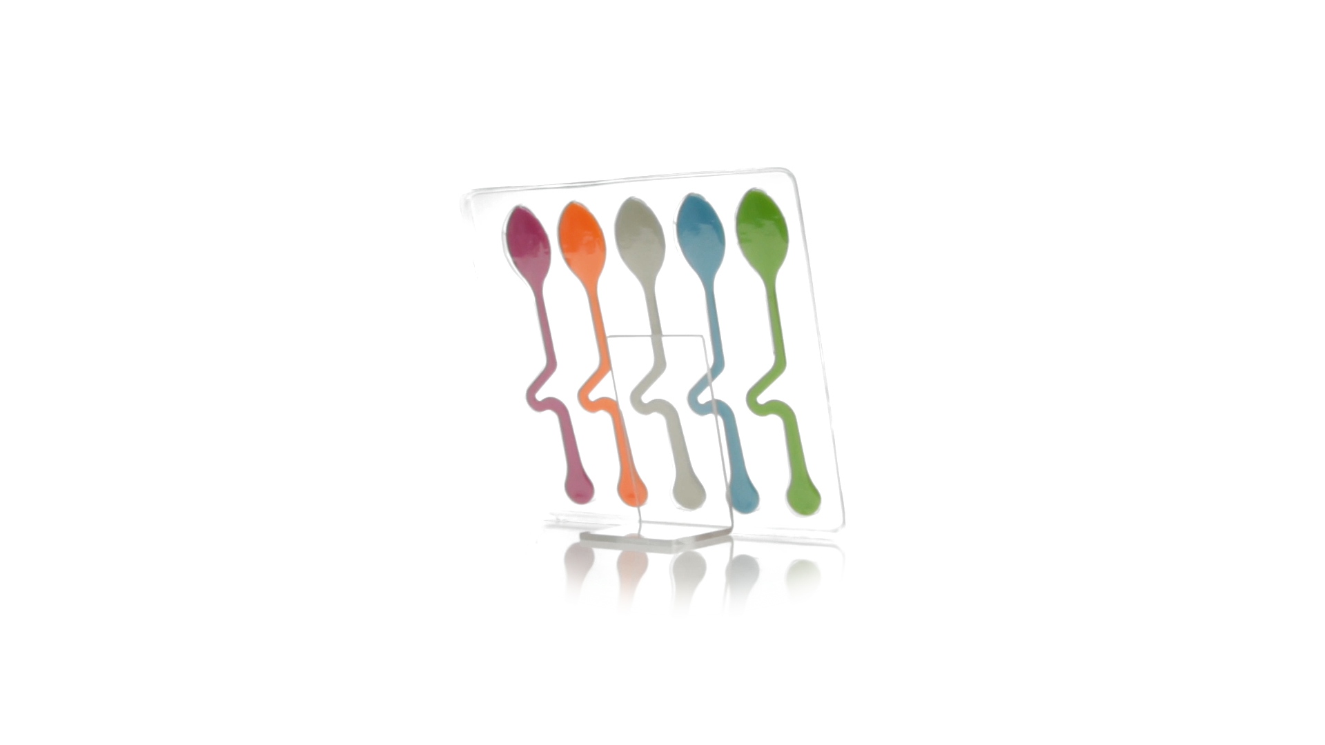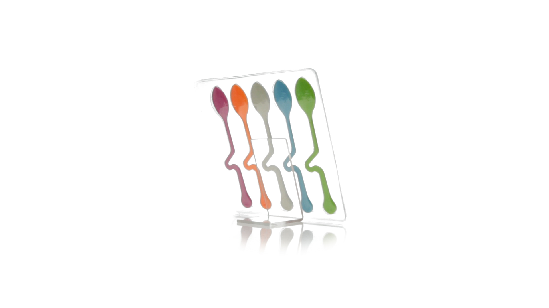 Lustiges Set aus 5 Löffeln in leuchtenden Farben und mit Körper, der speziell entworfen wurde, um die Löffel am Tassenrand zu befestigen.