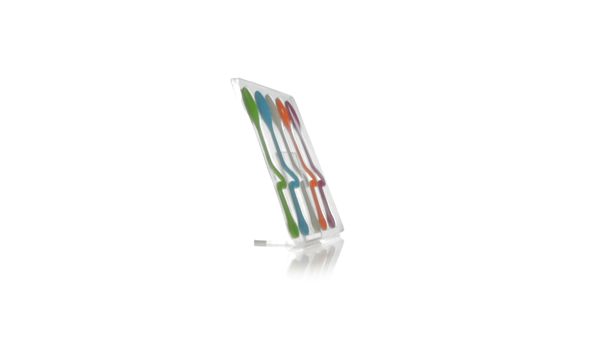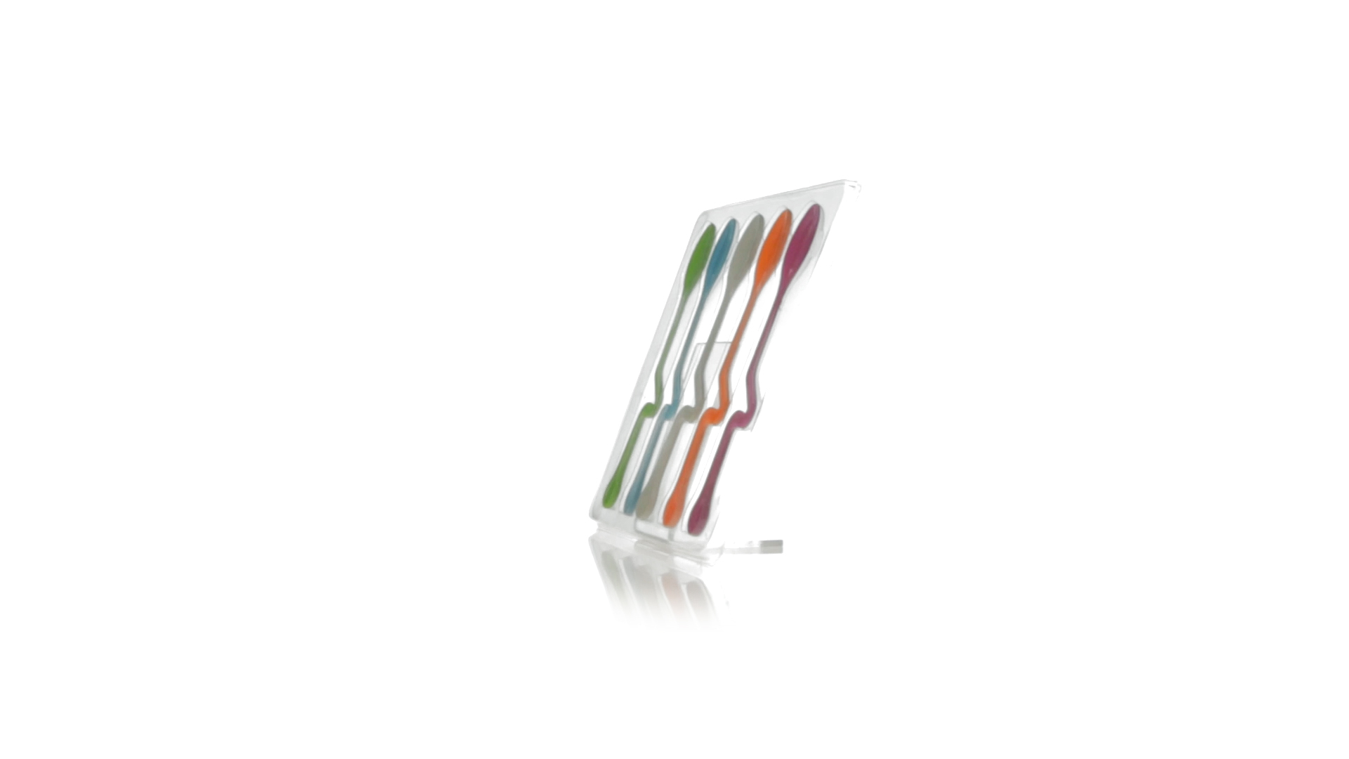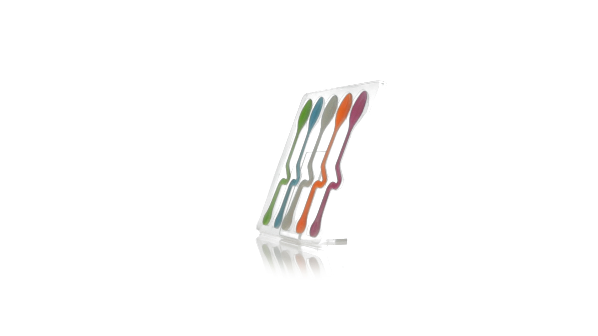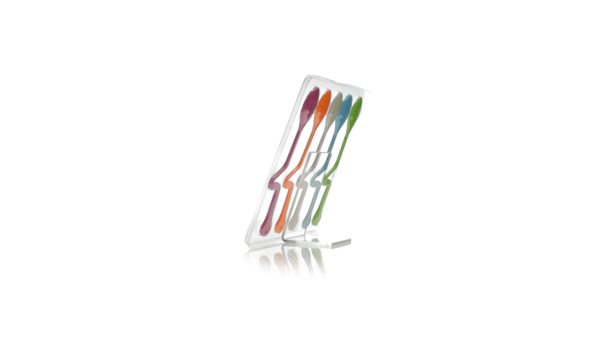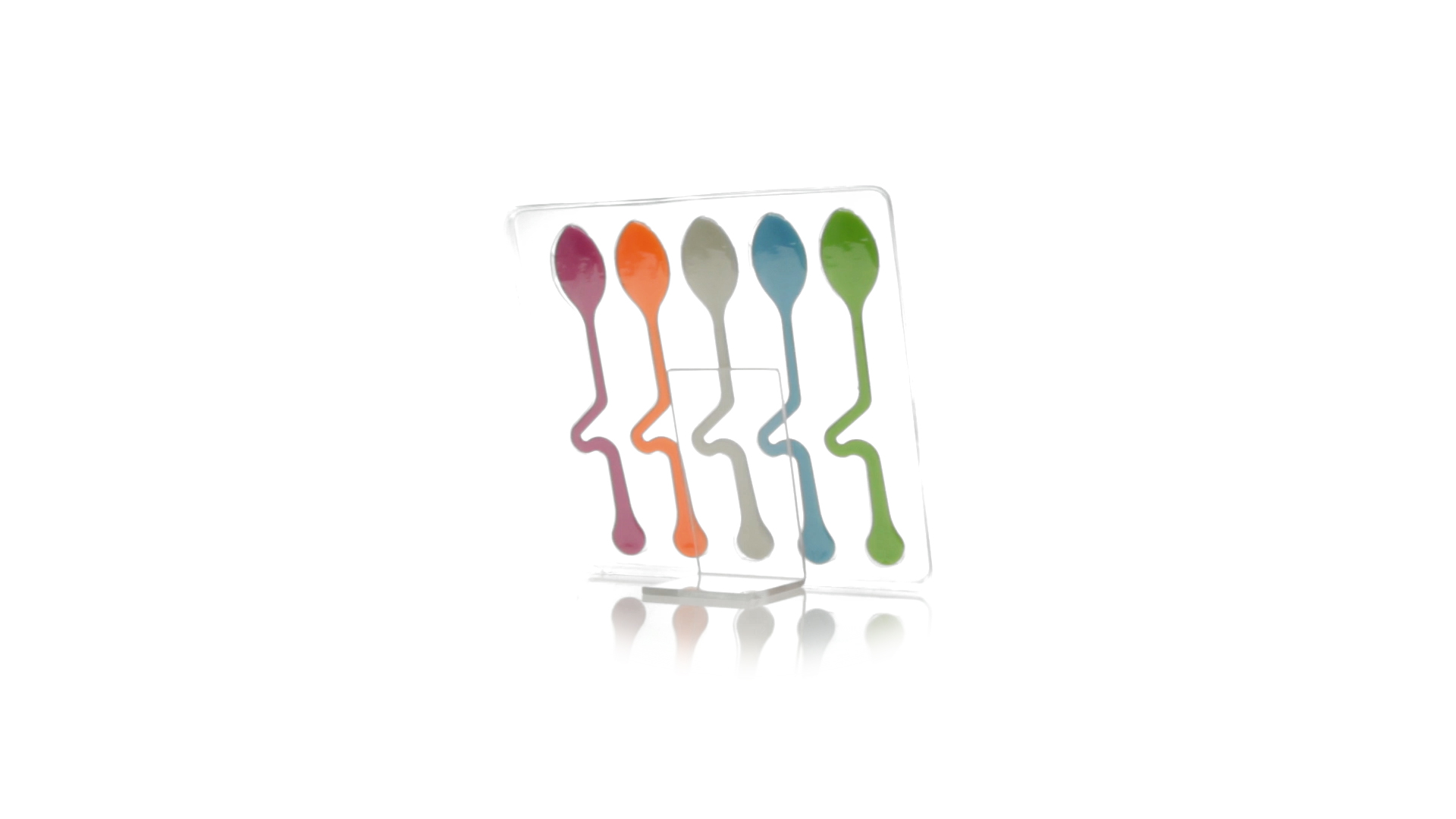 Lustiges Set aus 5 Löffeln in leuchtenden Farben und mit Körper, der speziell entworfen wurde, um die Löffel am Tassenrand zu befestigen.