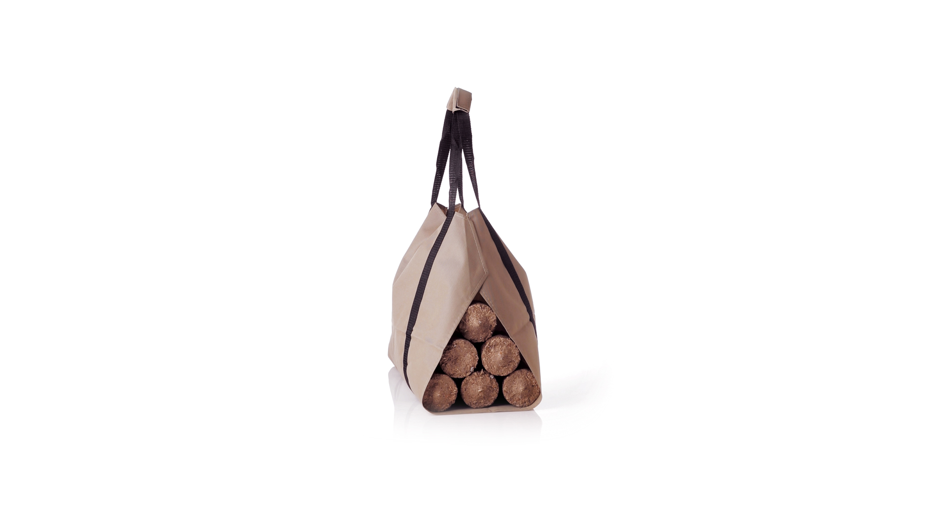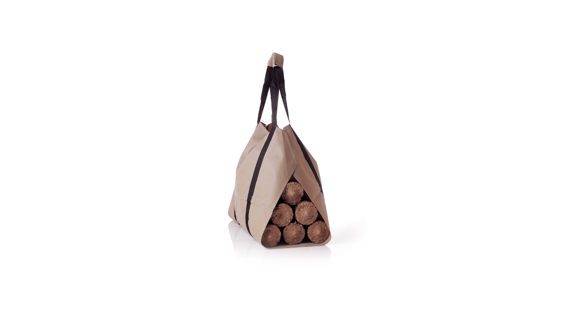 Kaminholztasche aus widerstandsfähigem Polyester, mit einem sehr praktischen und bequemen Design, um Kaminholz ohne Risiko von Kratzern und Handverletzungen zu transportieren. Inklusive zwei Riemen mit rutschfesten Griffen für einfachen Transport und Klettverschluss. Klein zusammenlegbar für einfache Lagerung. Präsentiert in einer individuellen Tasche.