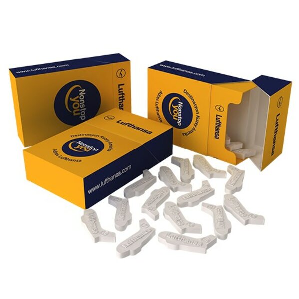 Diese 100% zuckerfreien Mints sind in jeder erdenklichen 3D-Form und mit nahezu jedem Logo herstellbar und 18 Monate haltbar.