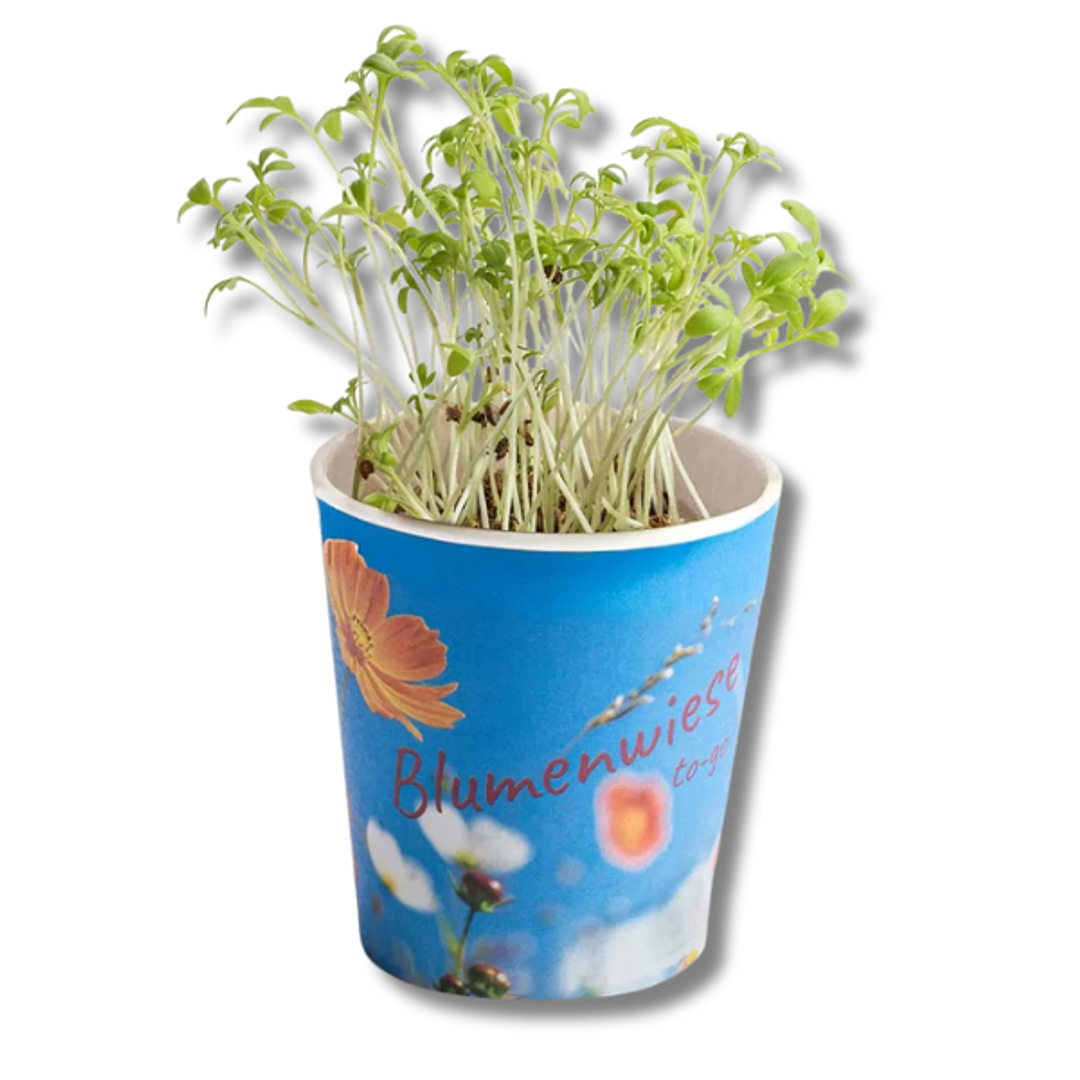 Das zeichnet den Blumenwiese To-Go Pflanzbecher aus