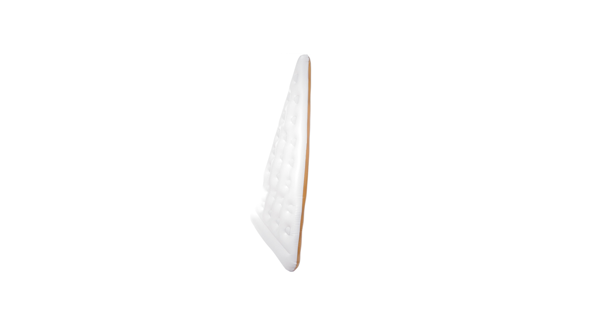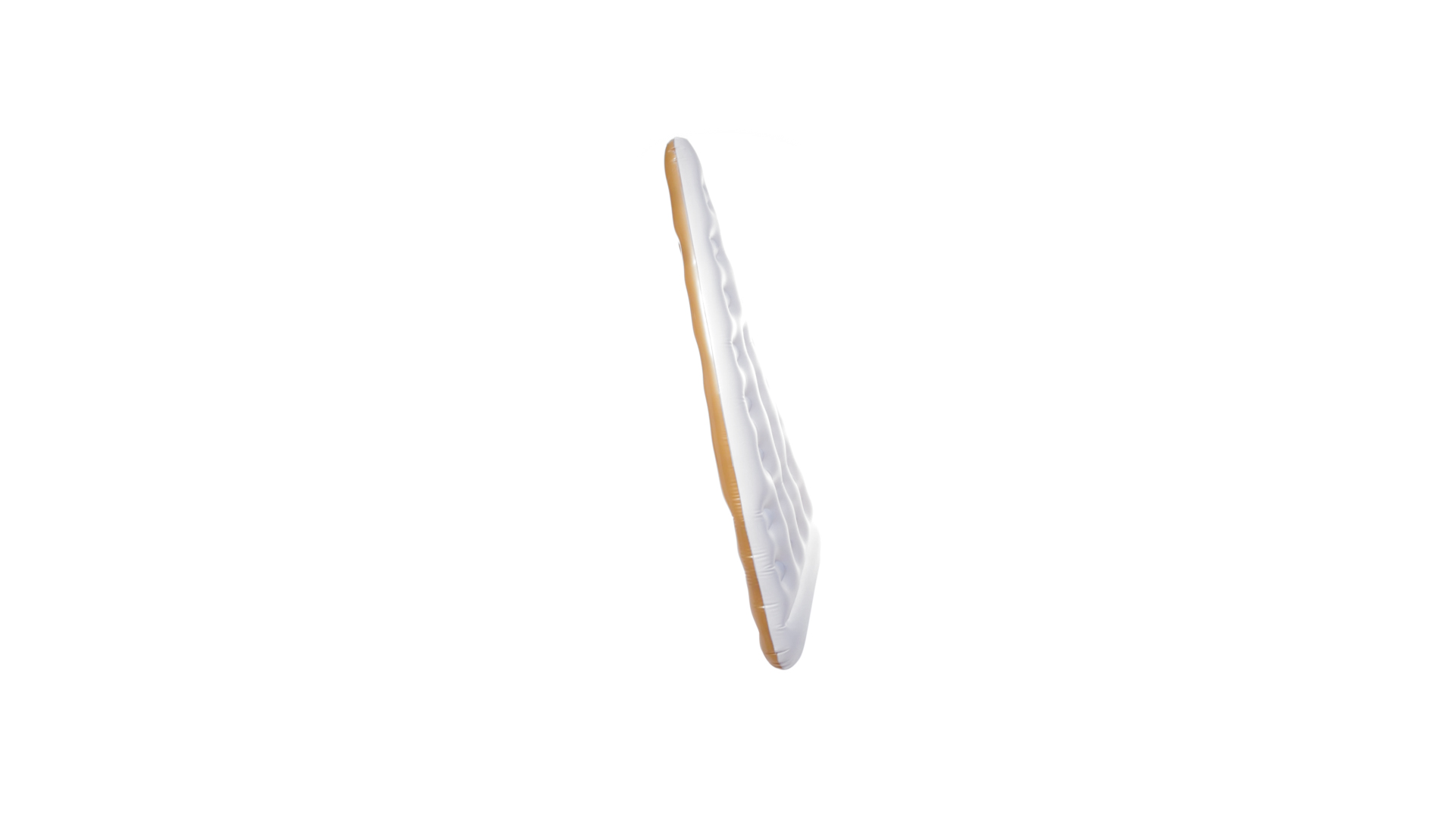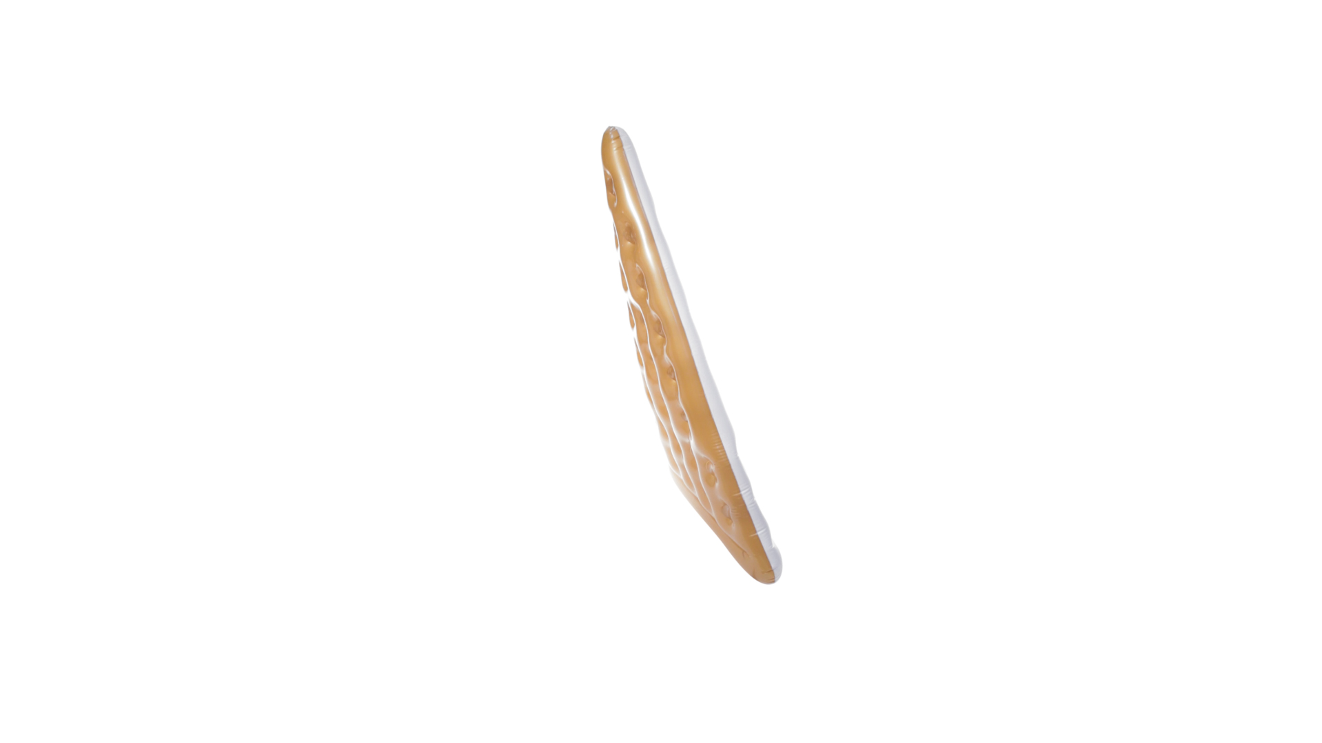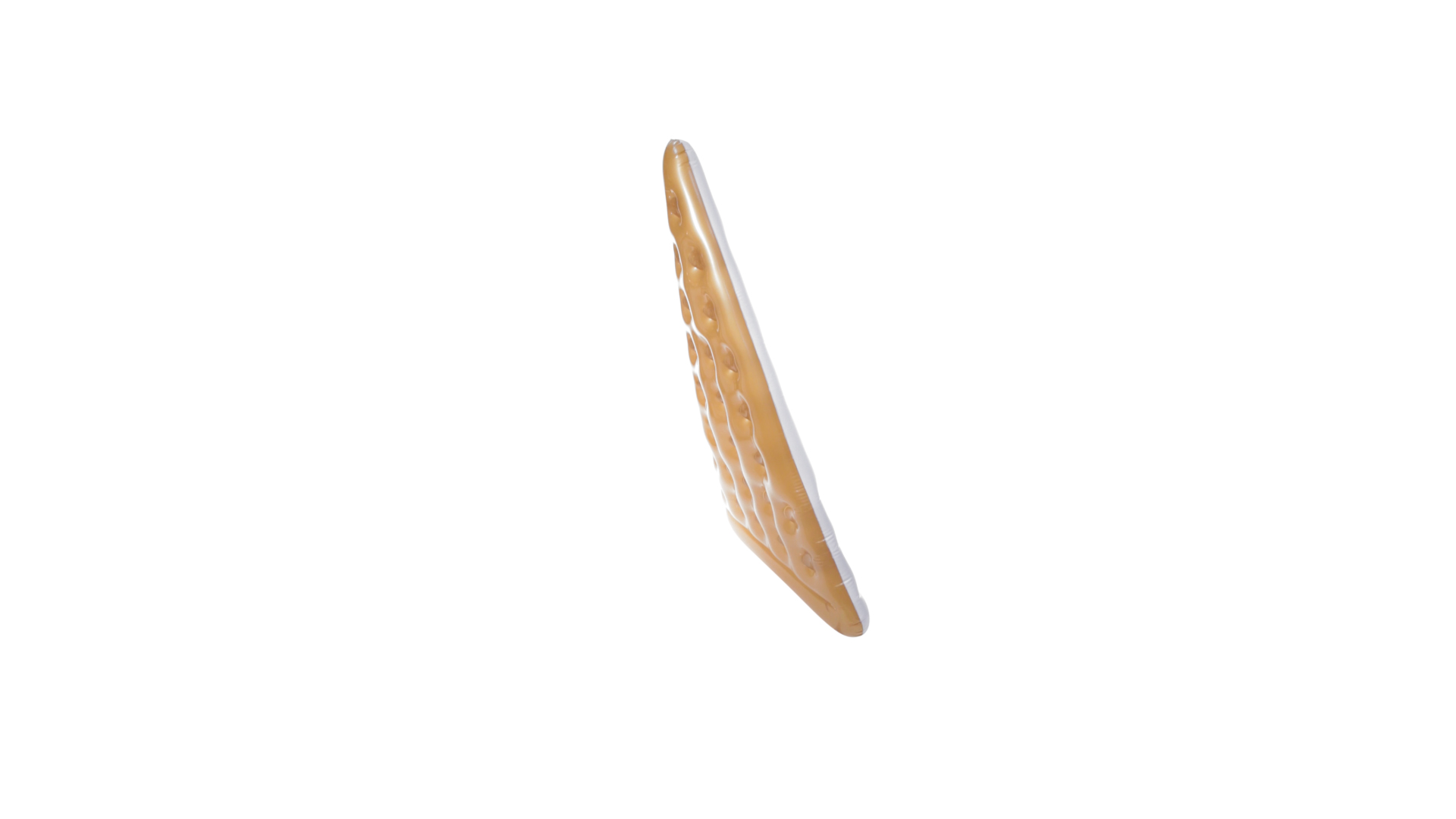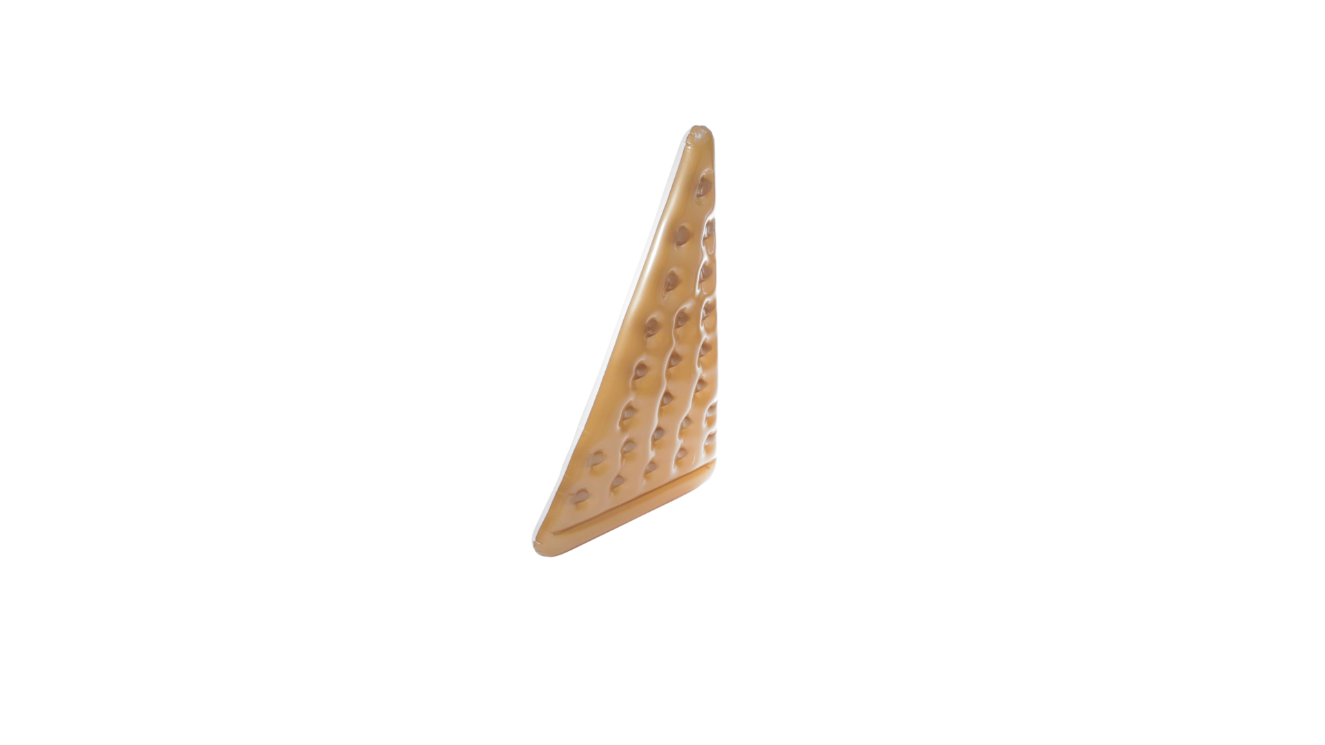 Originelle Luftmatratze aus PVC in Maxi-Grösse und Form eines Pizzastücks. Präsentiert mit spezieller Faltung für einfaches Bedrucken.