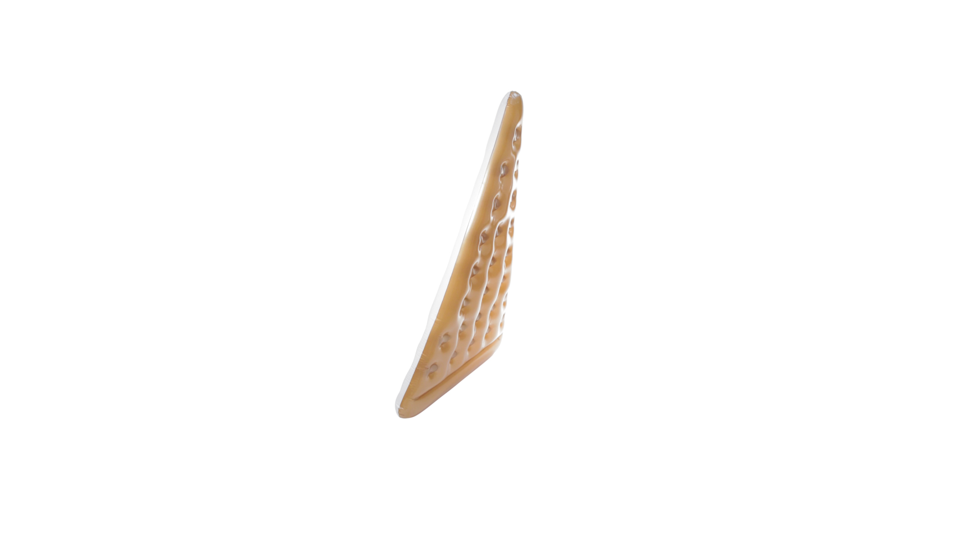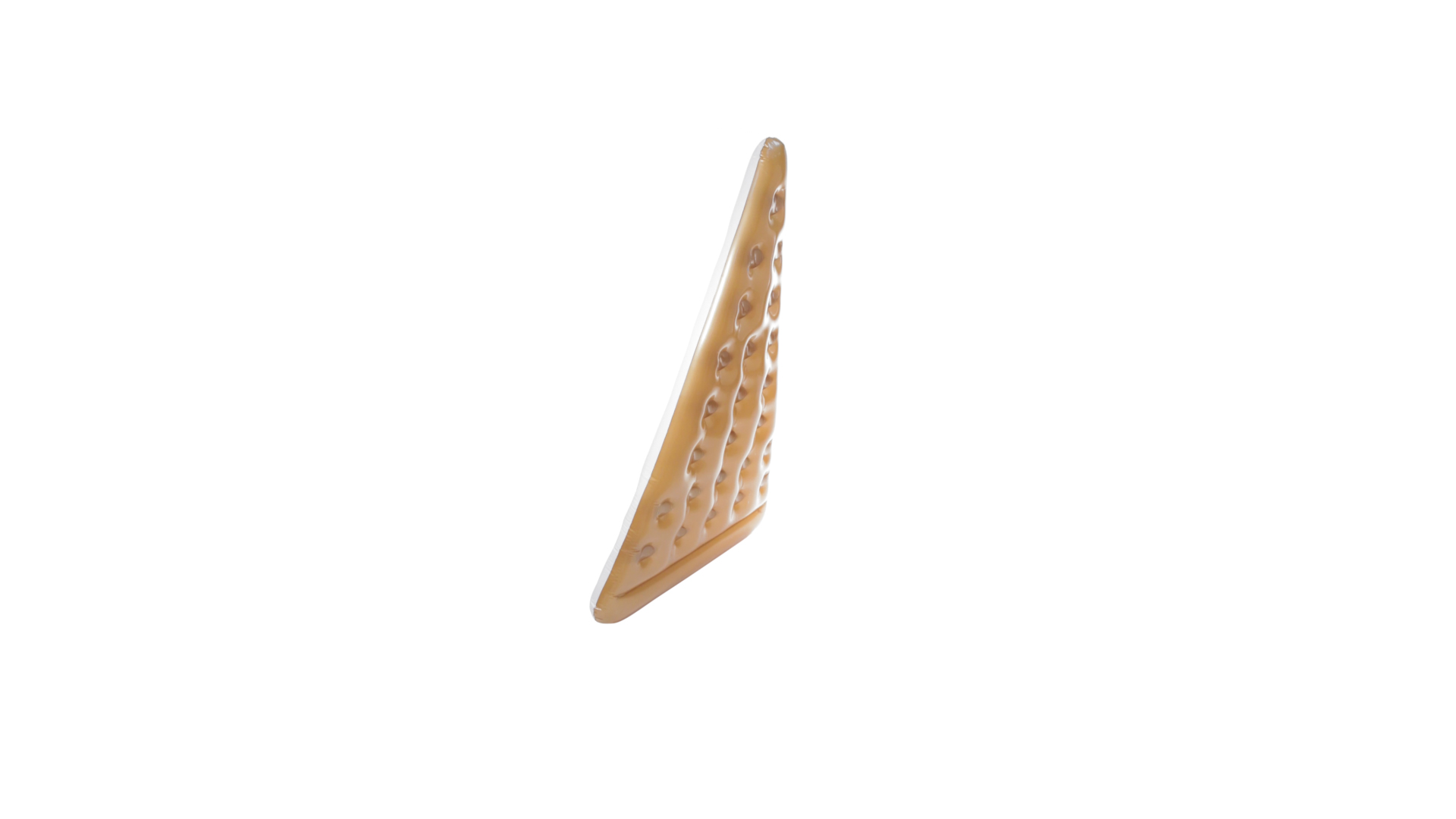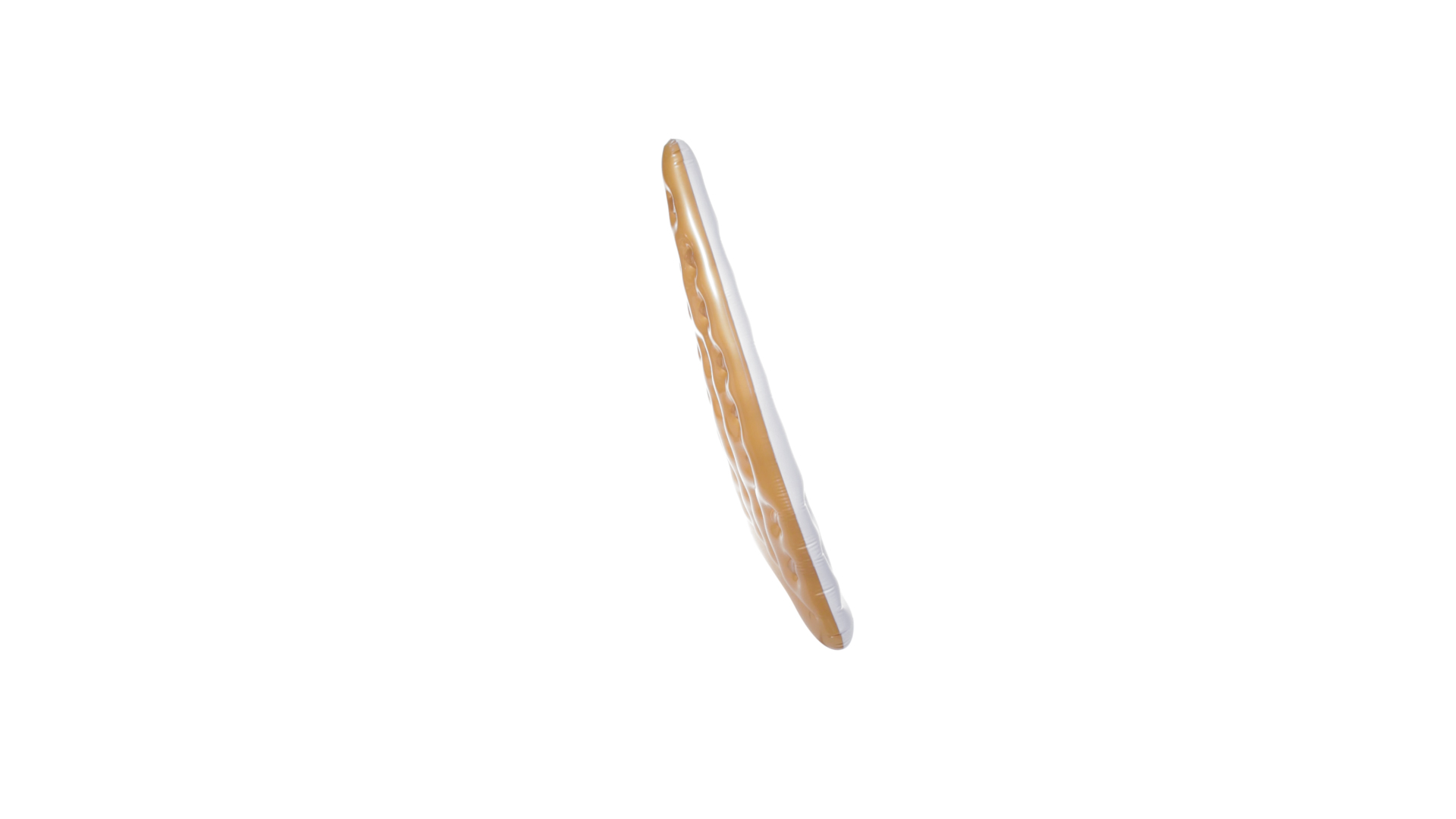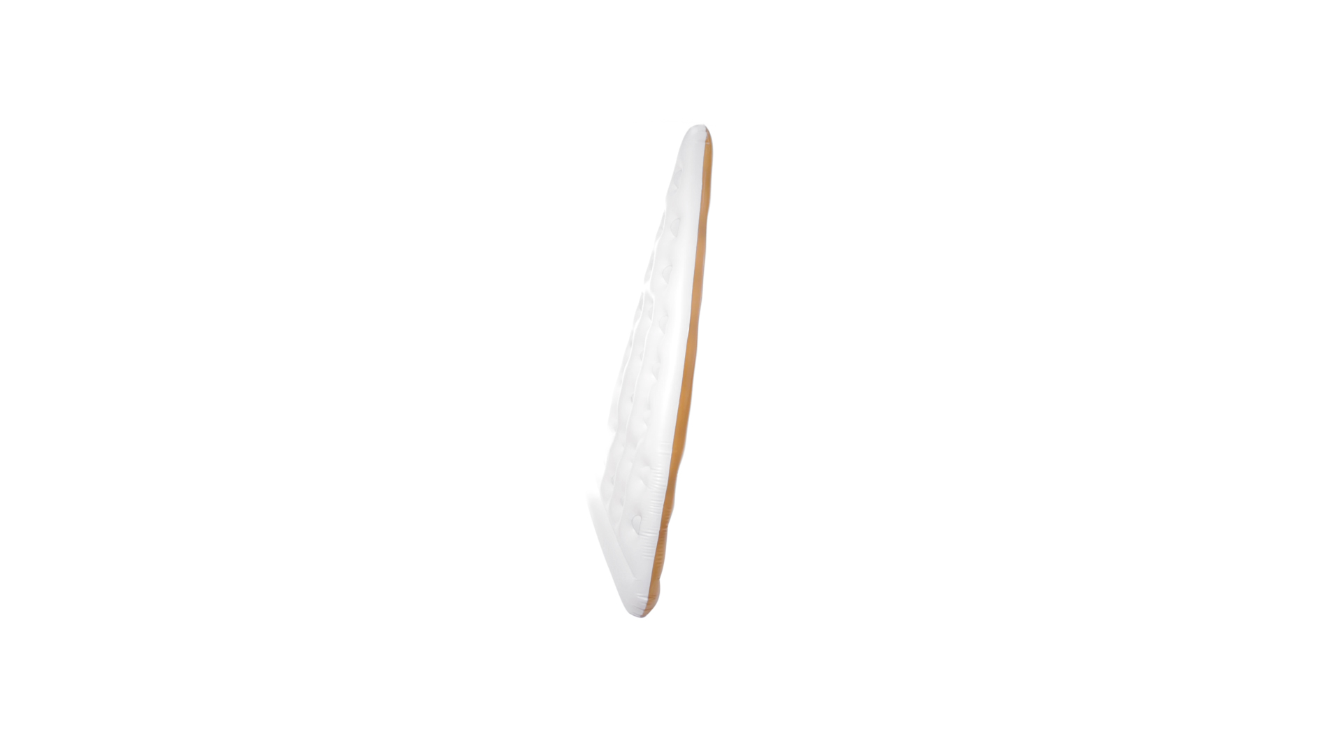 Originelle Luftmatratze aus PVC in Maxi-Grösse und Form eines Pizzastücks. Präsentiert mit spezieller Faltung für einfaches Bedrucken.