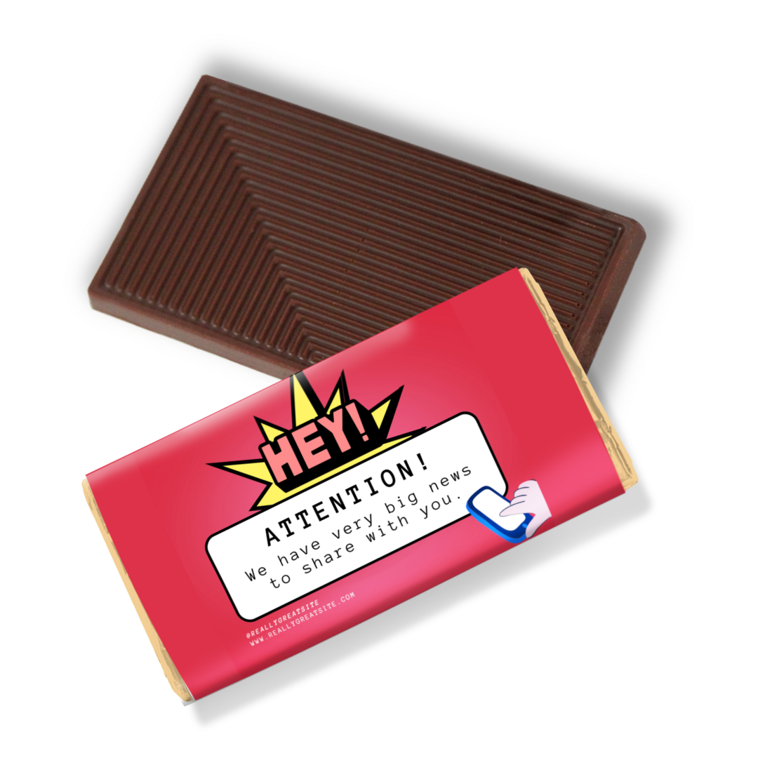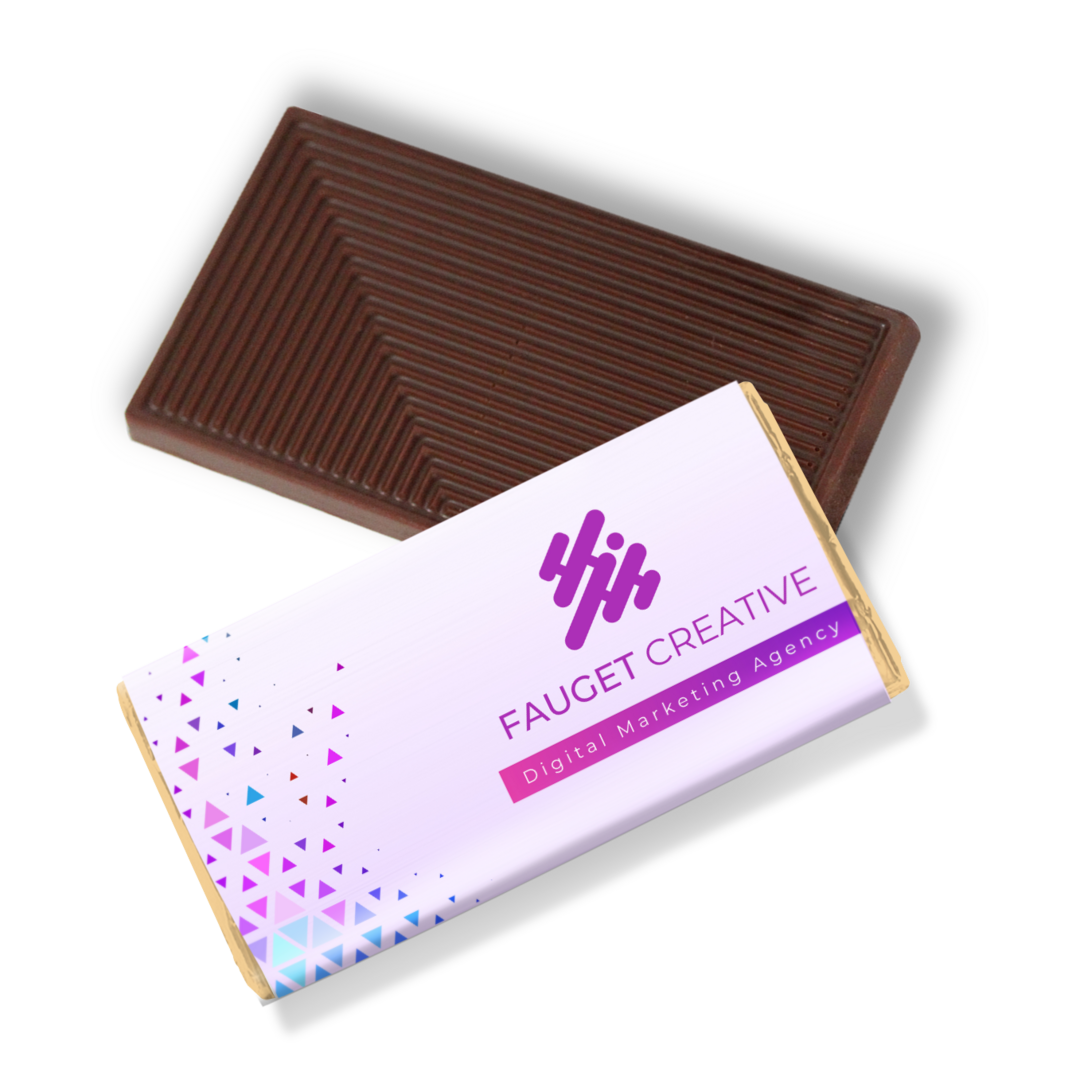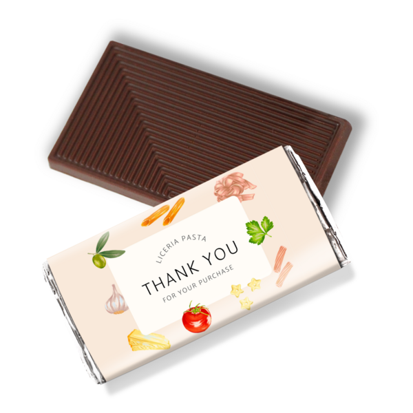 Verleihe deinen Lunchschokoladen eine persönliche Note mit einem individuellen 4-farbigen Digitaldruck auf dem Papierwickel, um eine einzigartige Präsentation für dein Unternehmen oder deine Veranstaltung zu schaffen. Du kannst die Verpackung weiter personalisieren, indem du zwischen Alufolien oder umweltfreundlichen Papierverpackungen wählst.