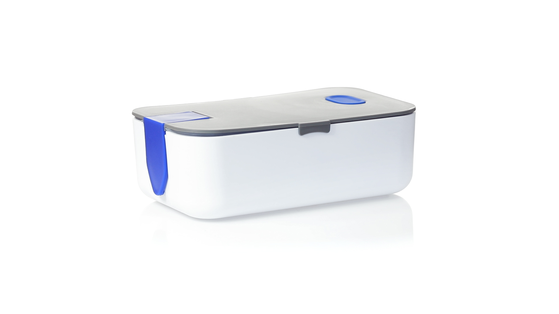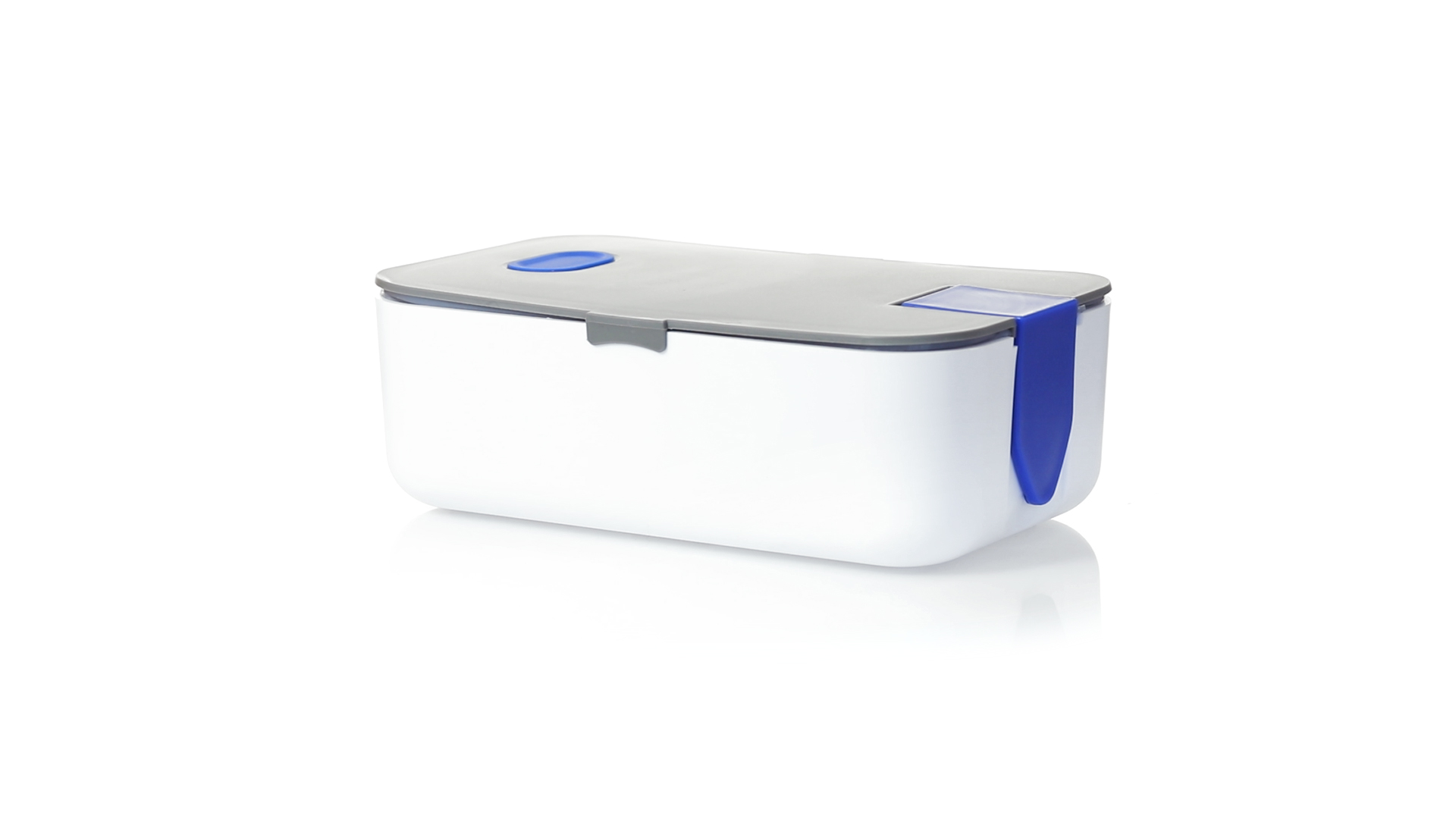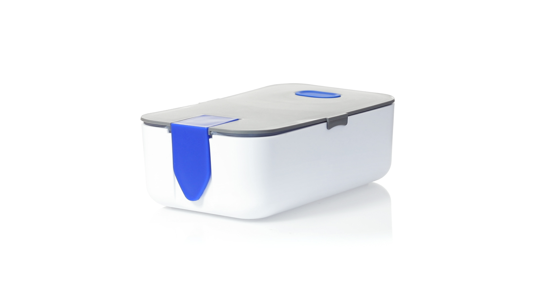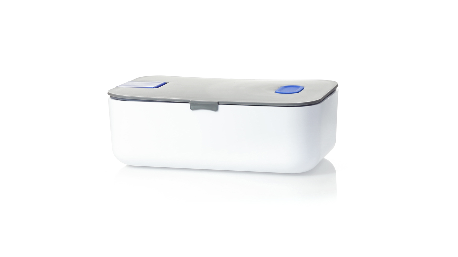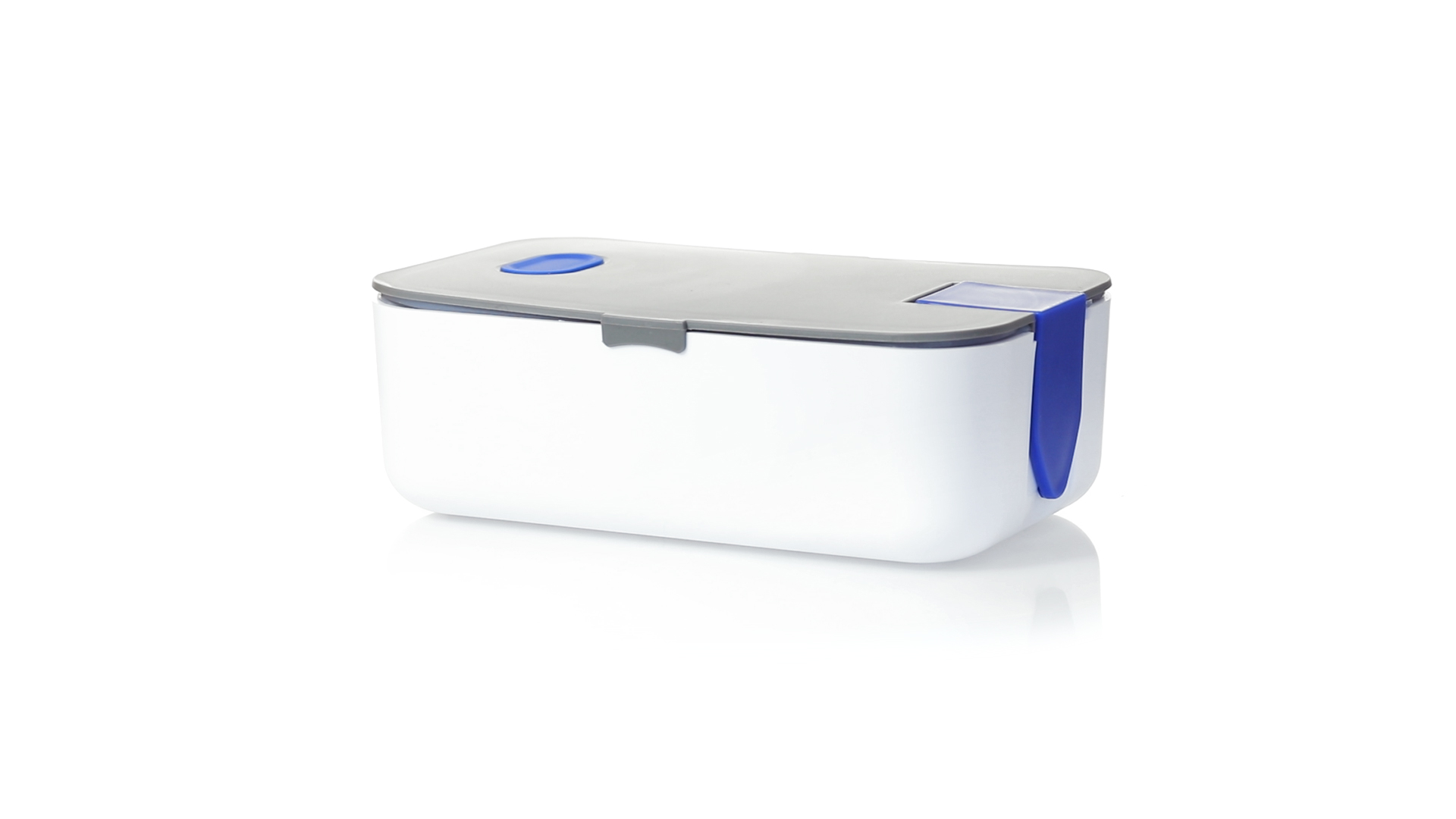 1l fassende Lunchbox aus stabilem BPA-freiem PP-Material. In weisser und grauer Farbkombination, mit passendem Zubehör und in einer grossen Farbauswahl erhältlich. Inklusive im Deckel integriertem Smartphone-Halter, Silikon-Deckelloch zur Belüftung und verstellbarem Innenteiler.