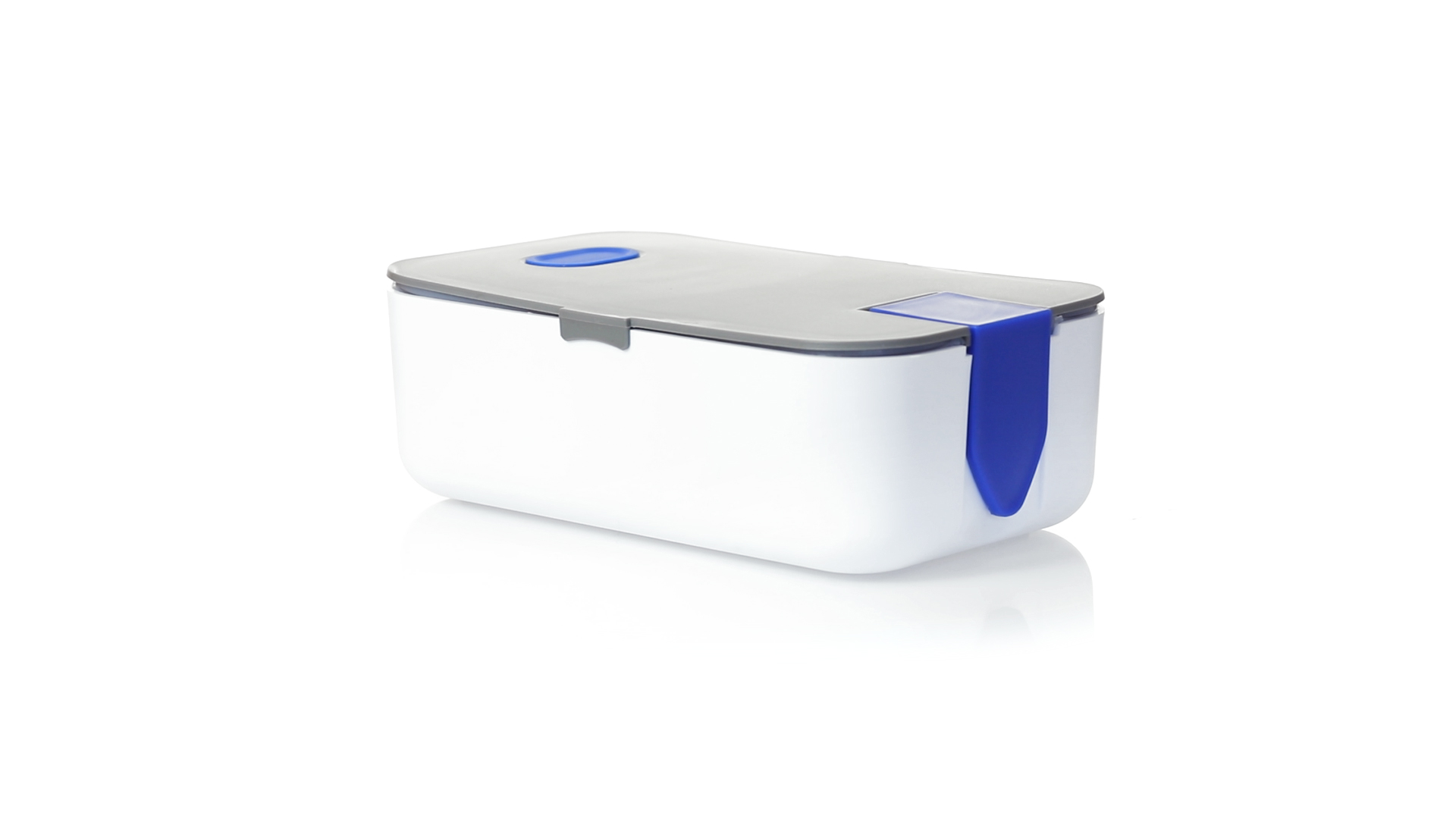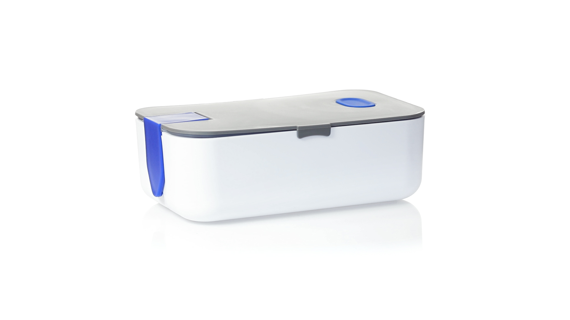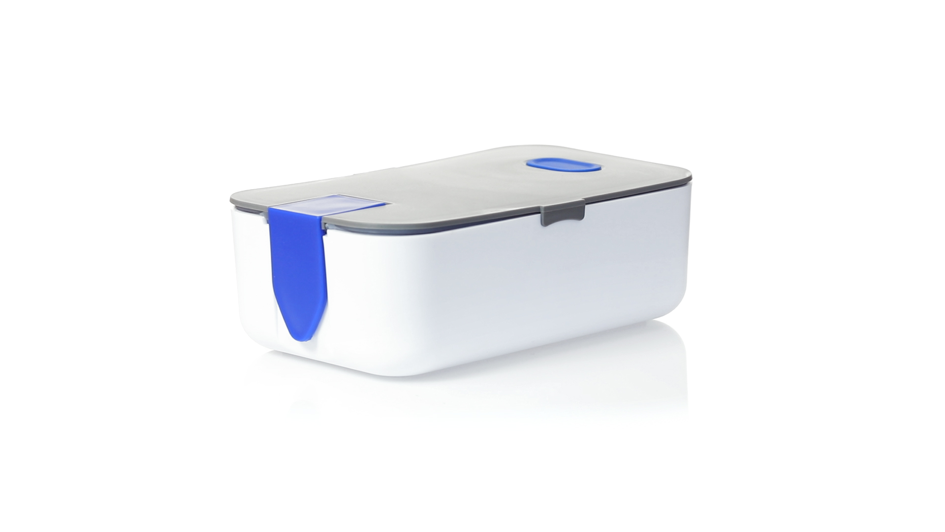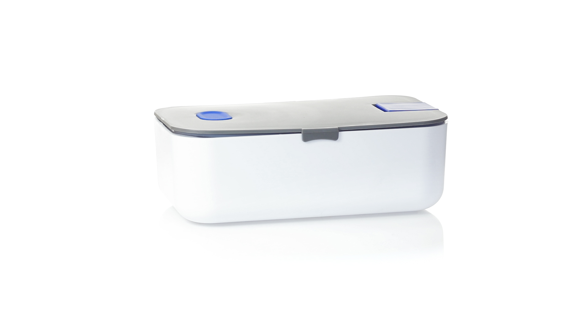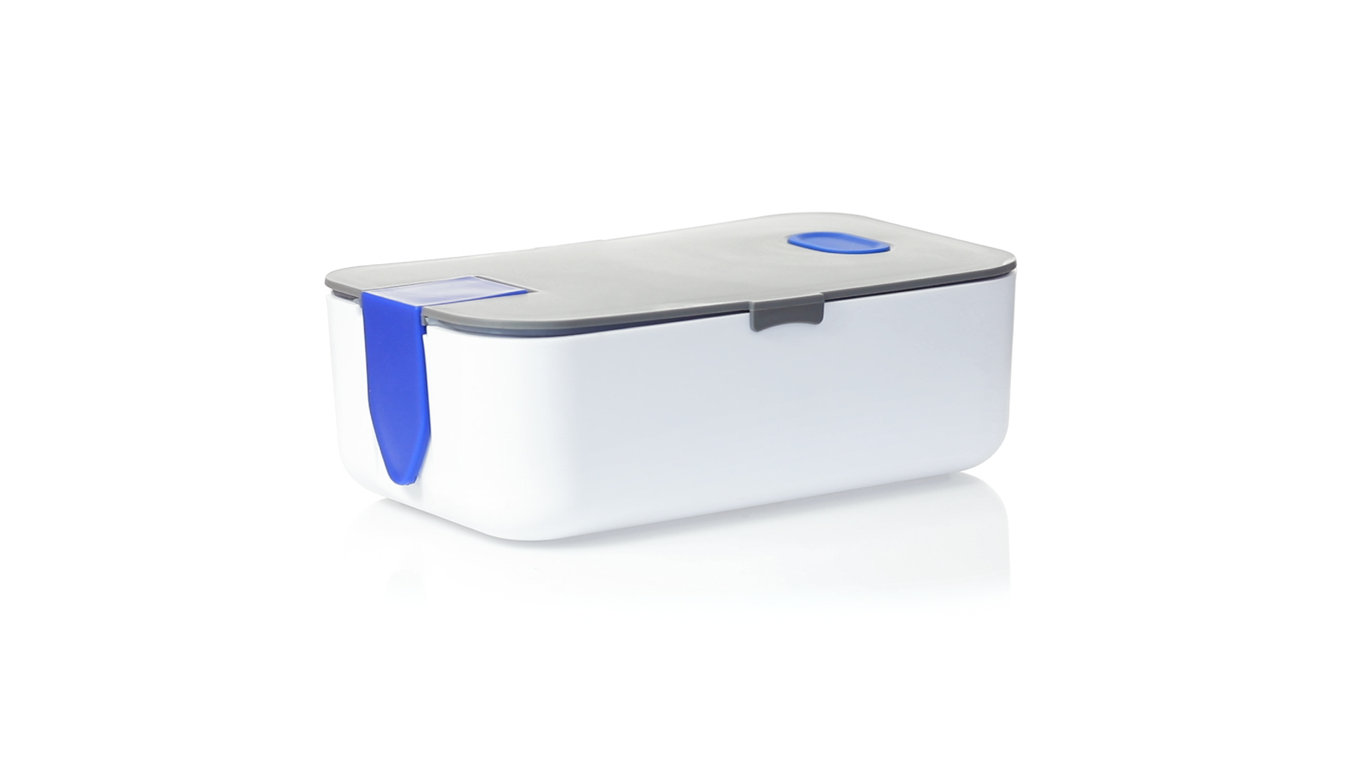 1l fassende Lunchbox aus stabilem BPA-freiem PP-Material. In weisser und grauer Farbkombination, mit passendem Zubehör und in einer grossen Farbauswahl erhältlich. Inklusive im Deckel integriertem Smartphone-Halter, Silikon-Deckelloch zur Belüftung und verstellbarem Innenteiler.