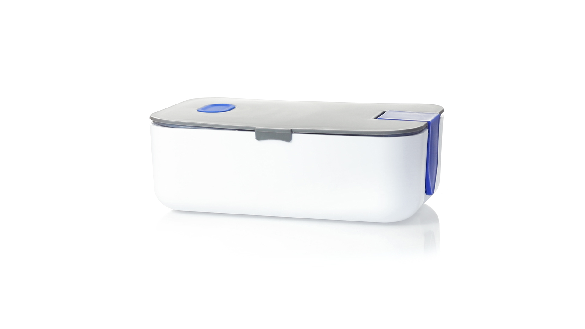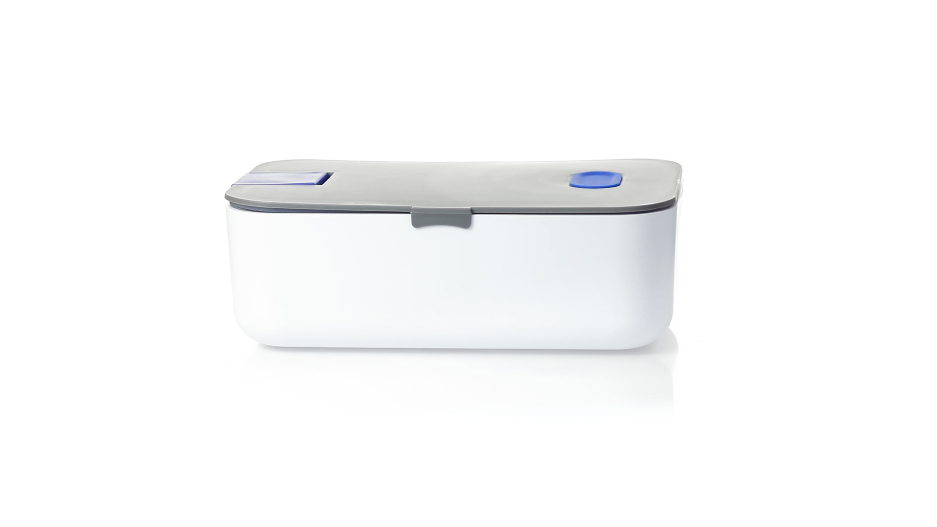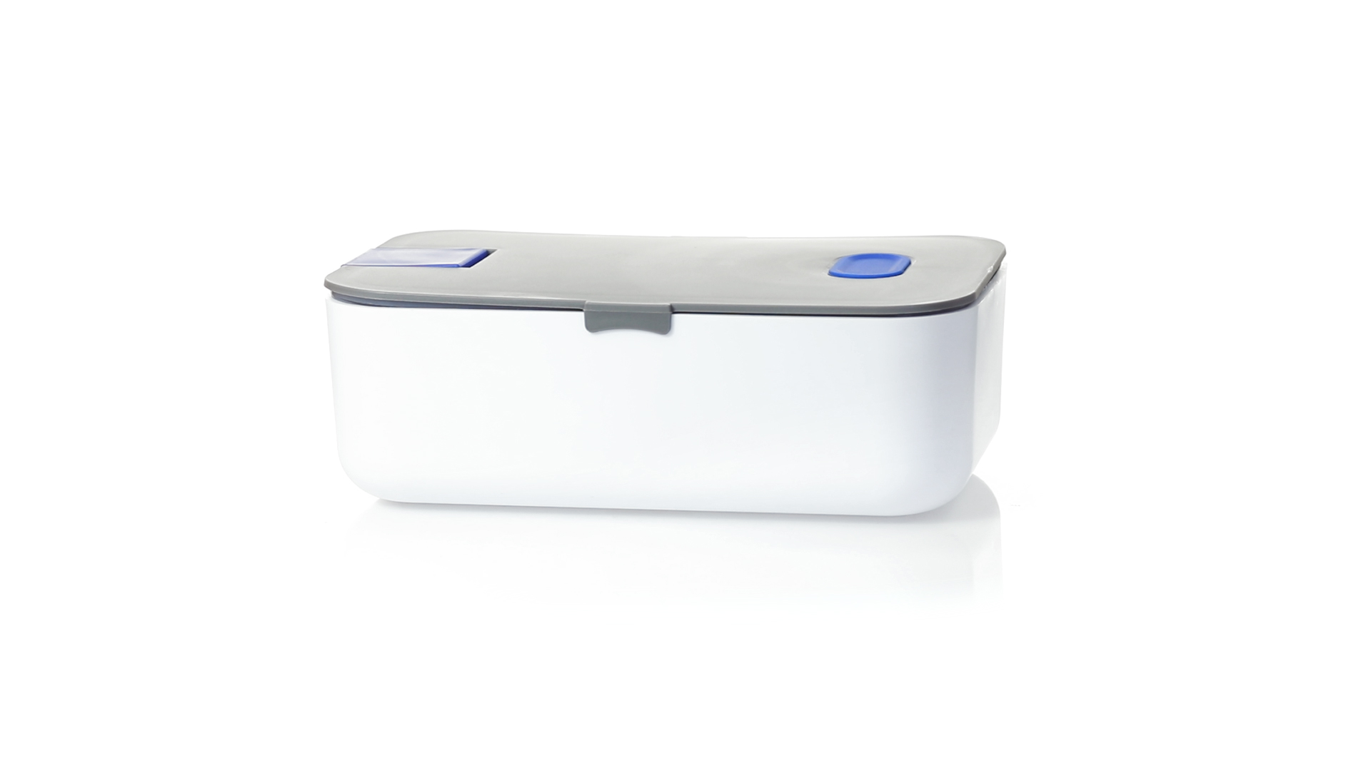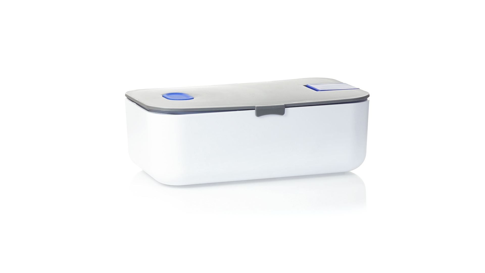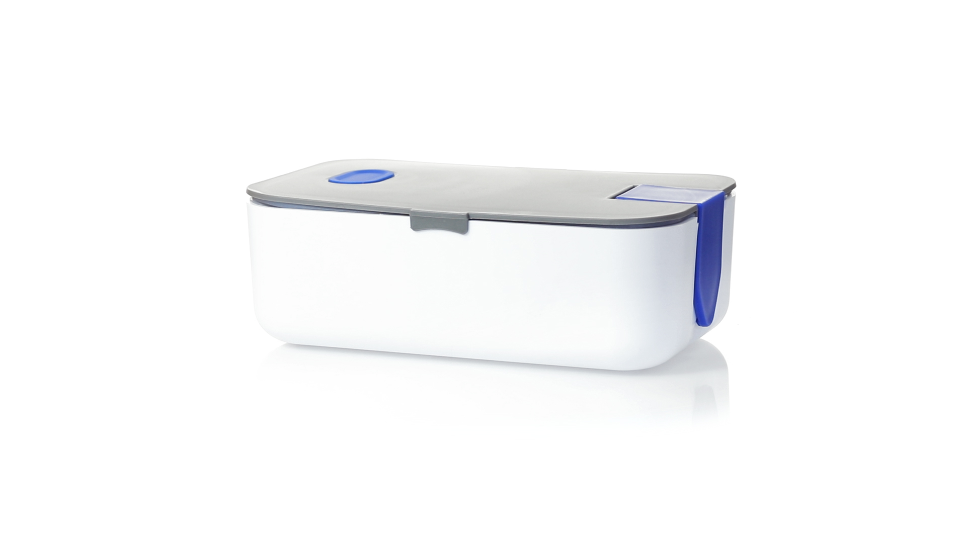 1l fassende Lunchbox aus stabilem BPA-freiem PP-Material. In weisser und grauer Farbkombination, mit passendem Zubehör und in einer grossen Farbauswahl erhältlich. Inklusive im Deckel integriertem Smartphone-Halter, Silikon-Deckelloch zur Belüftung und verstellbarem Innenteiler.