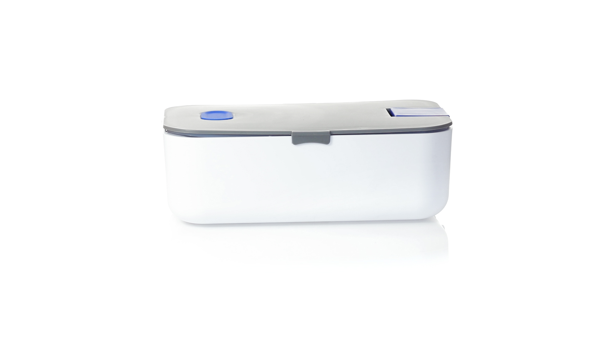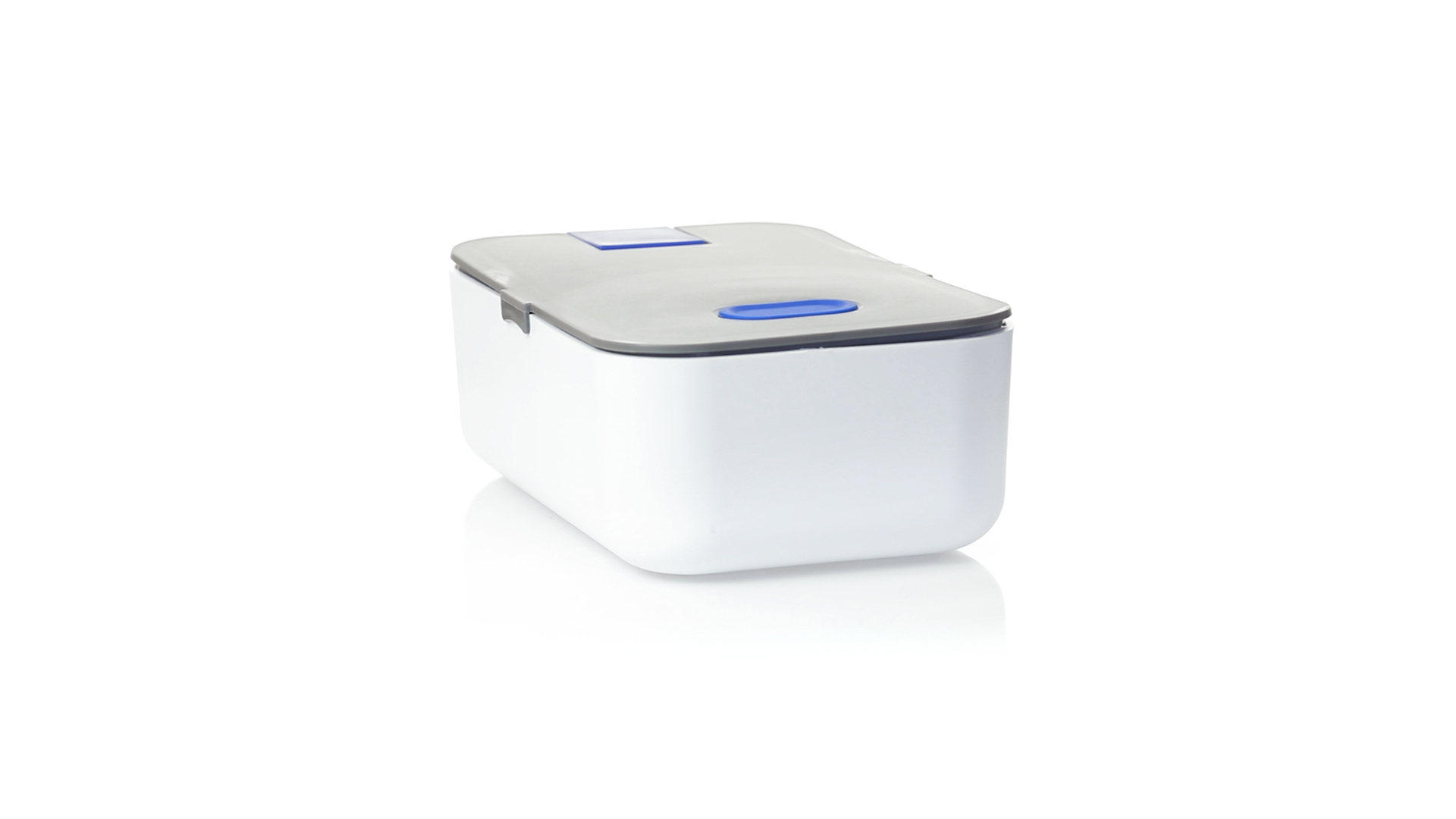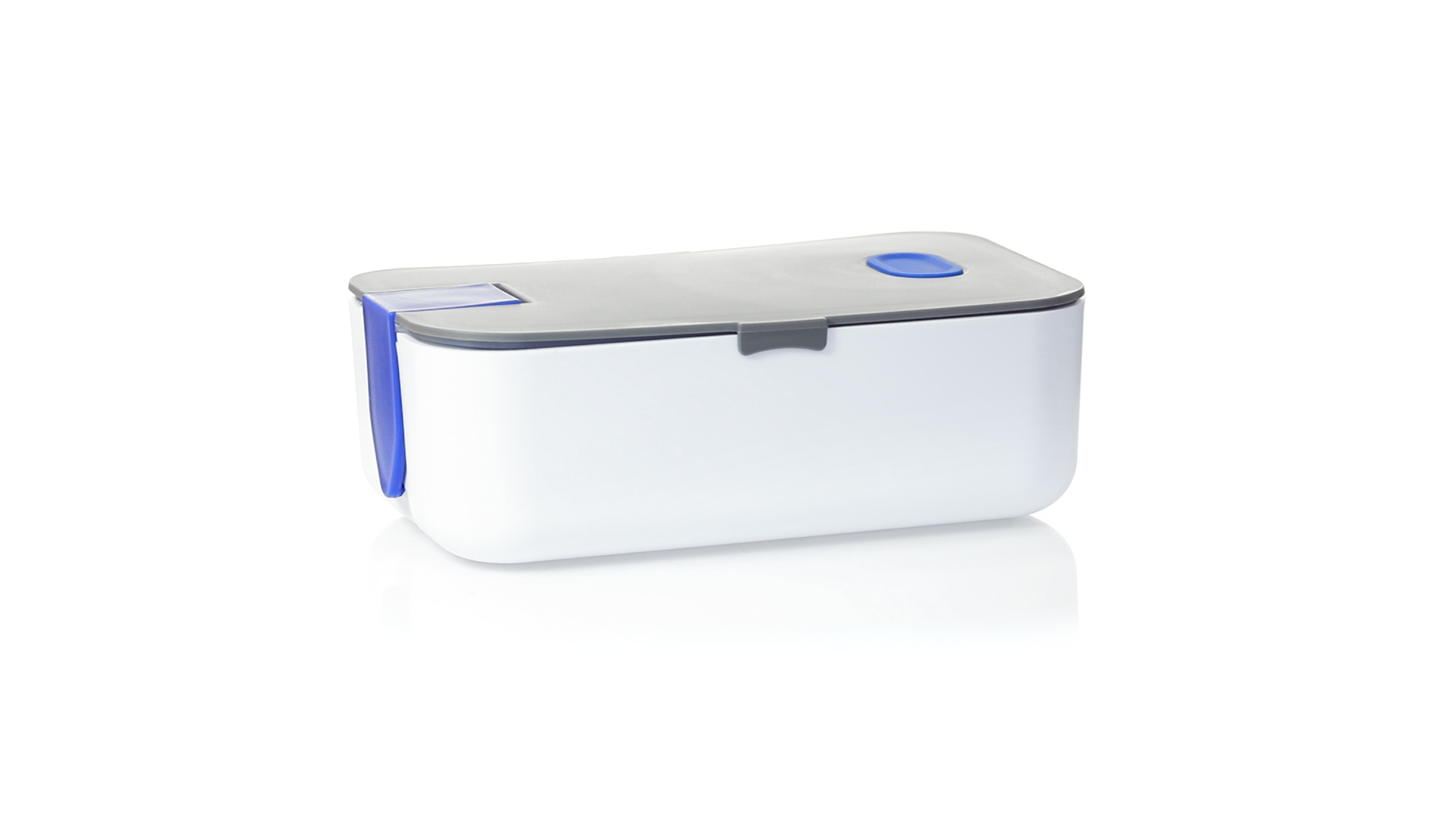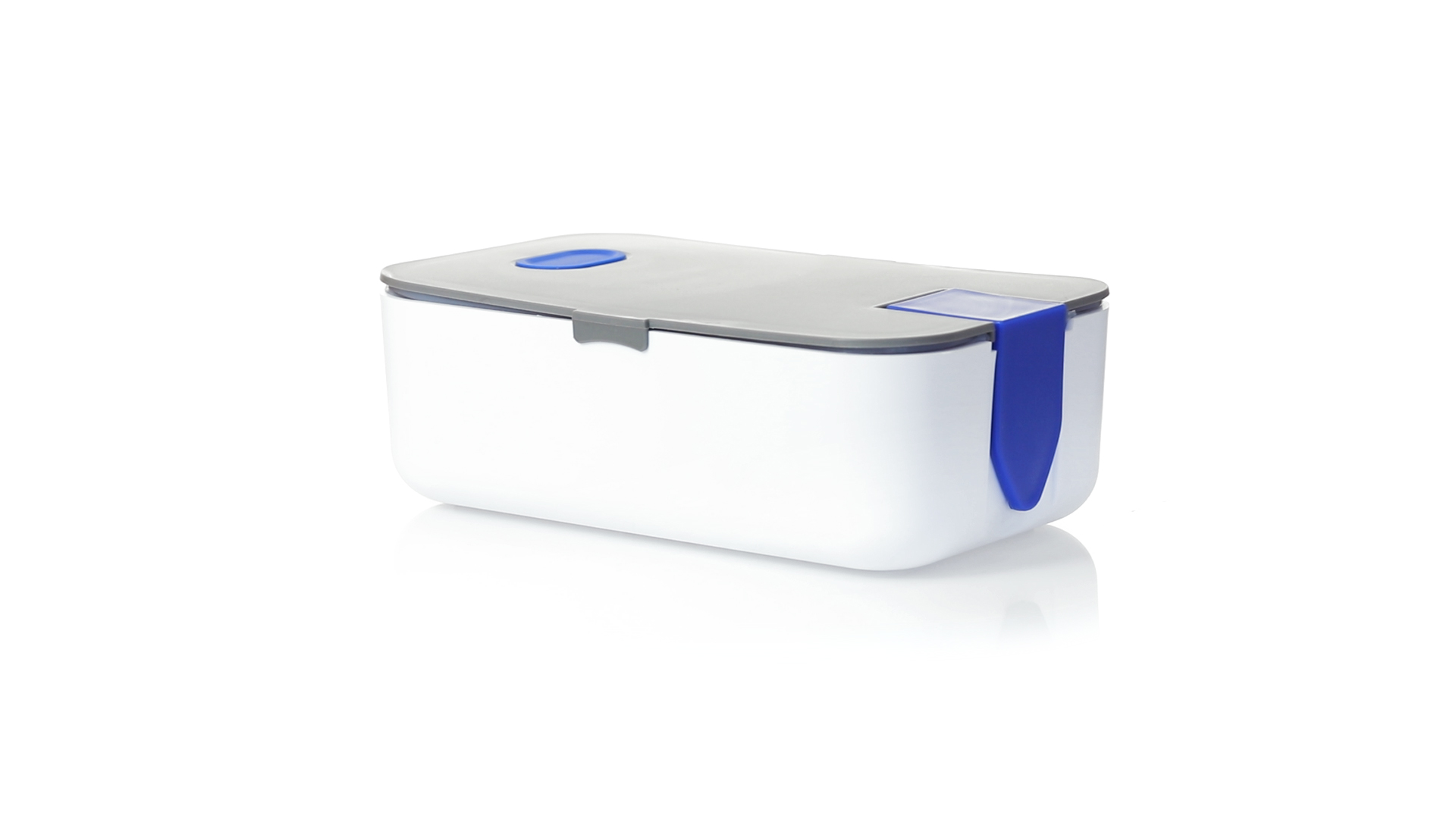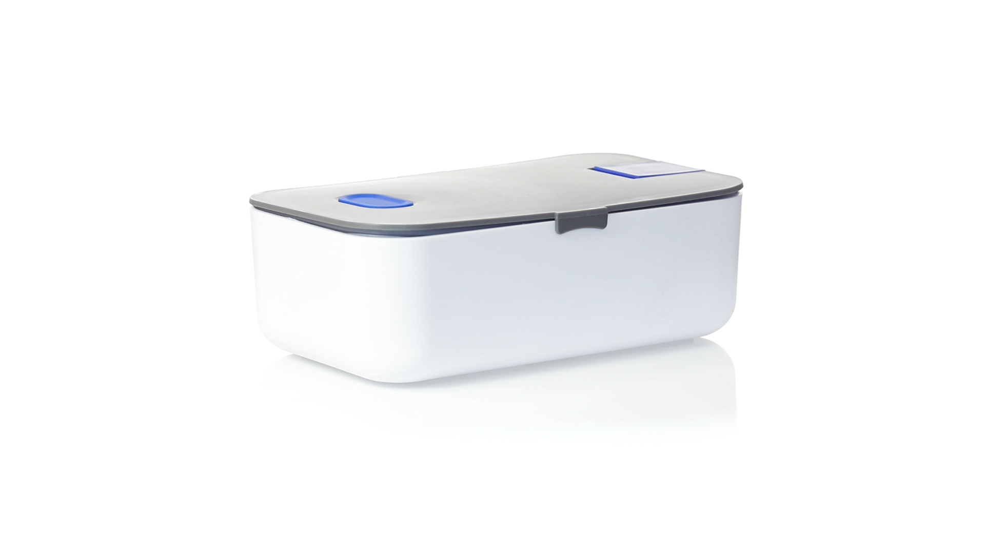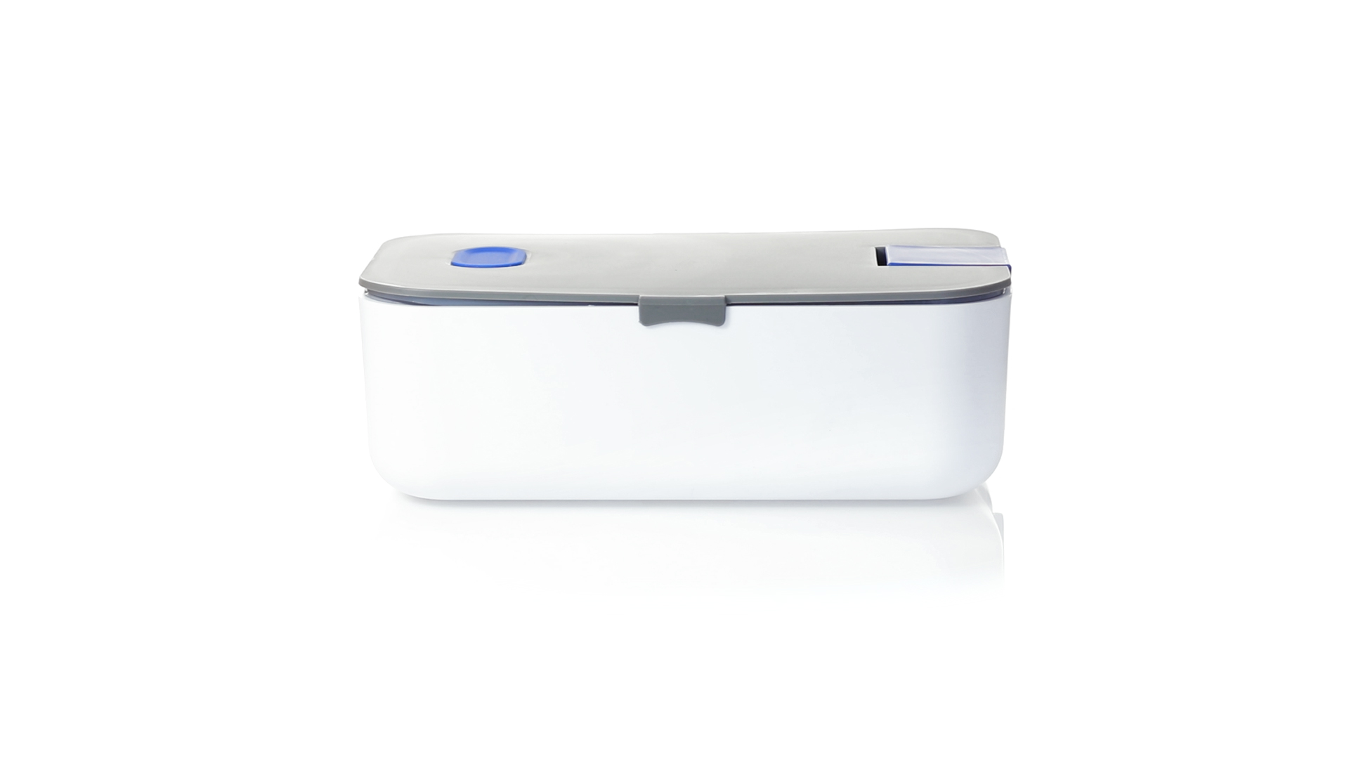 1l fassende Lunchbox aus stabilem BPA-freiem PP-Material. In weisser und grauer Farbkombination, mit passendem Zubehör und in einer grossen Farbauswahl erhältlich. Inklusive im Deckel integriertem Smartphone-Halter, Silikon-Deckelloch zur Belüftung und verstellbarem Innenteiler.