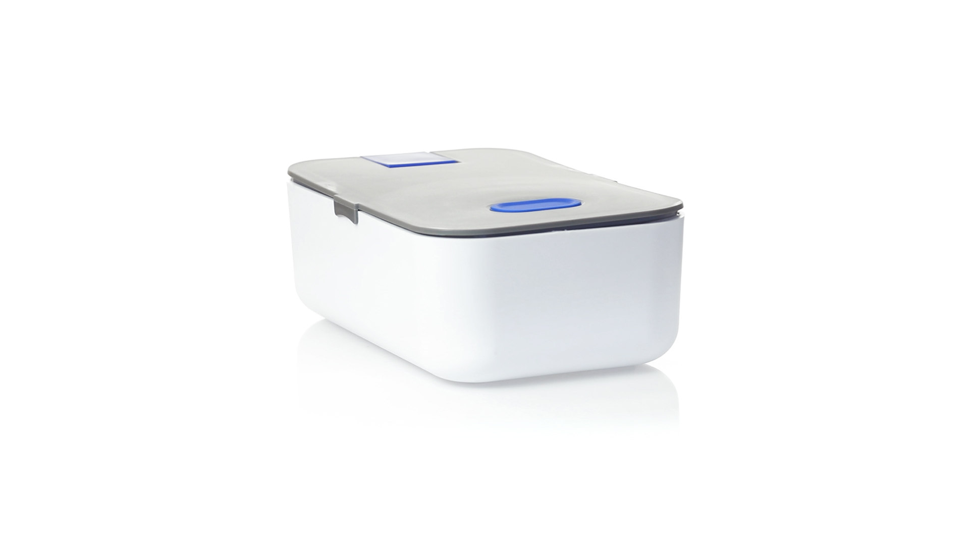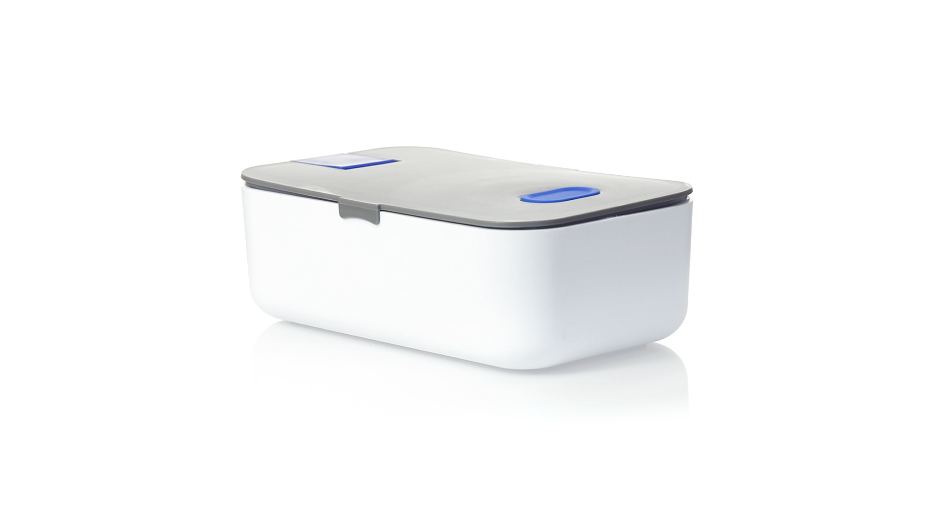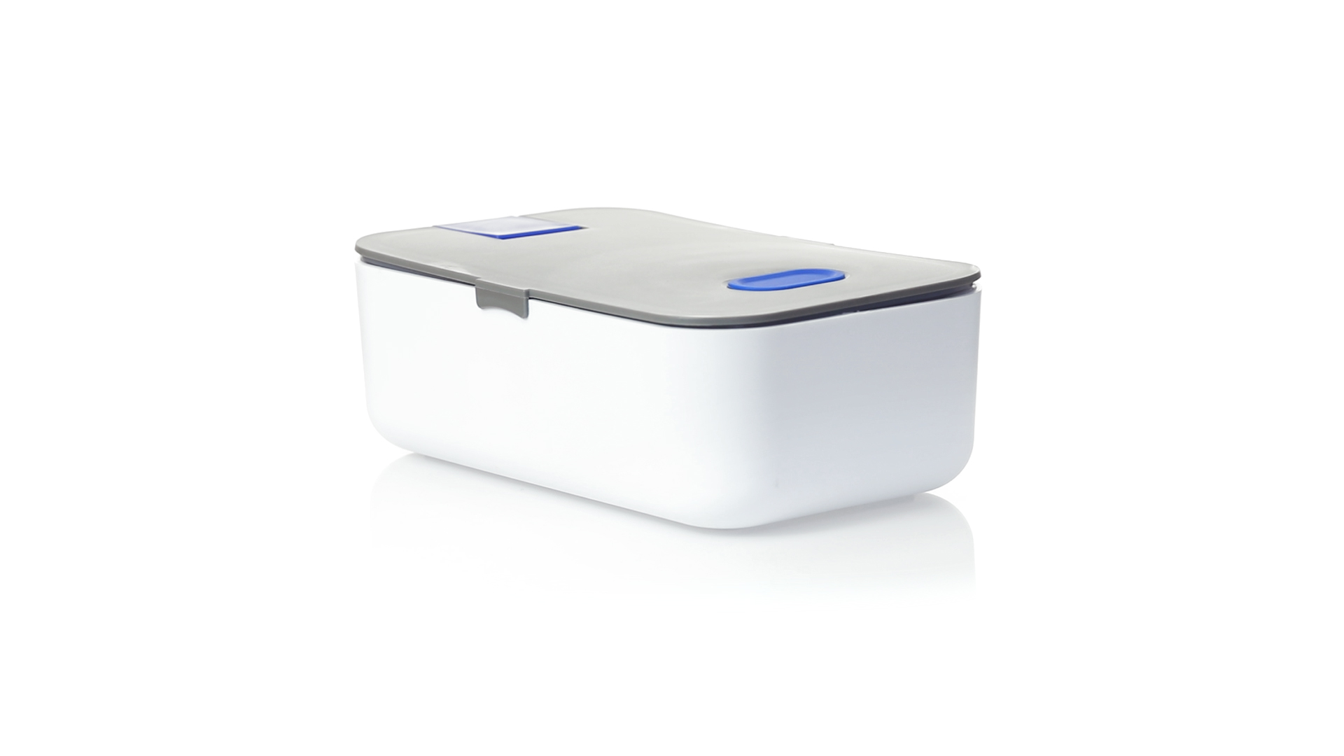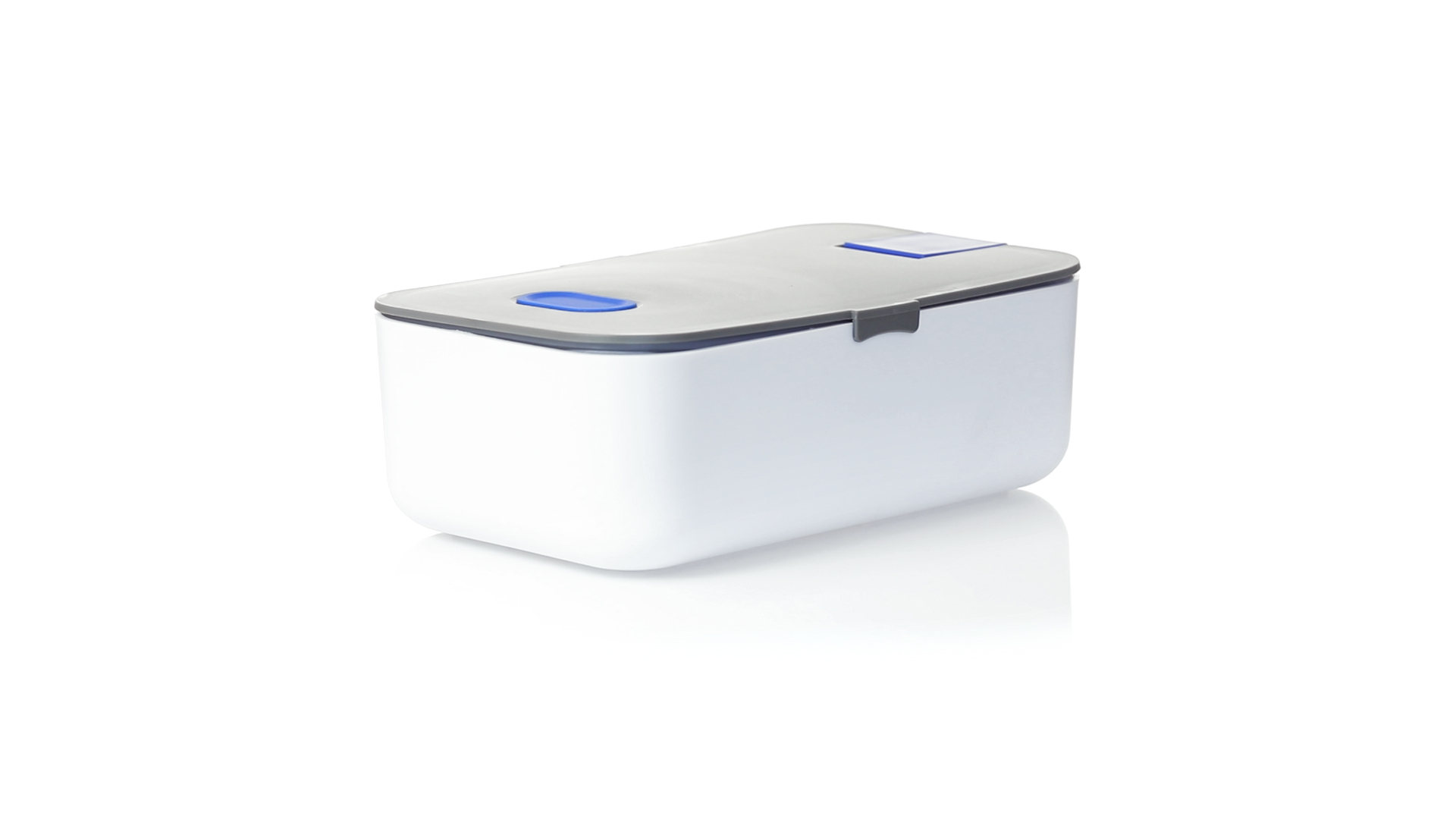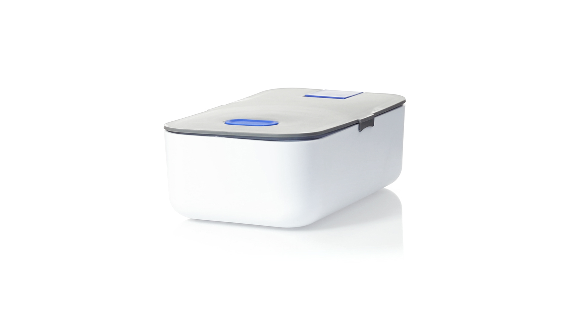 1l fassende Lunchbox aus stabilem BPA-freiem PP-Material. In weisser und grauer Farbkombination, mit passendem Zubehör und in einer grossen Farbauswahl erhältlich. Inklusive im Deckel integriertem Smartphone-Halter, Silikon-Deckelloch zur Belüftung und verstellbarem Innenteiler.