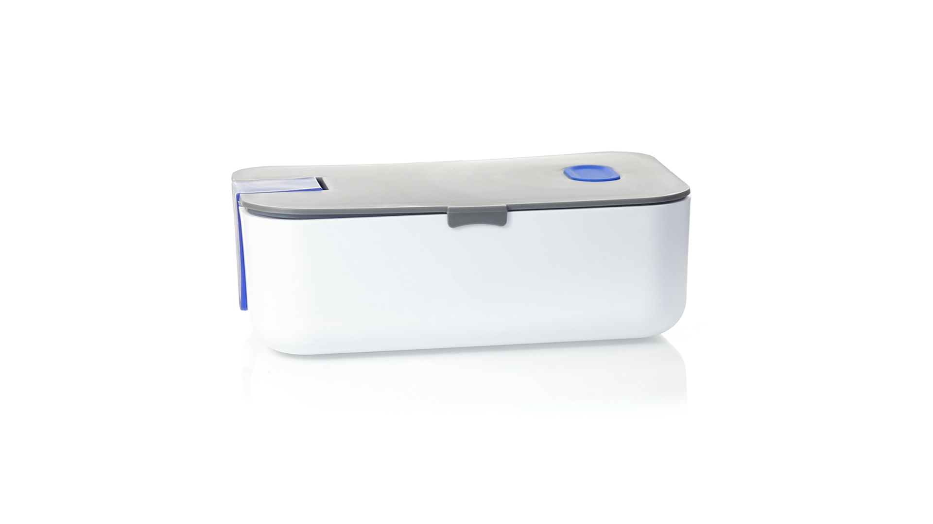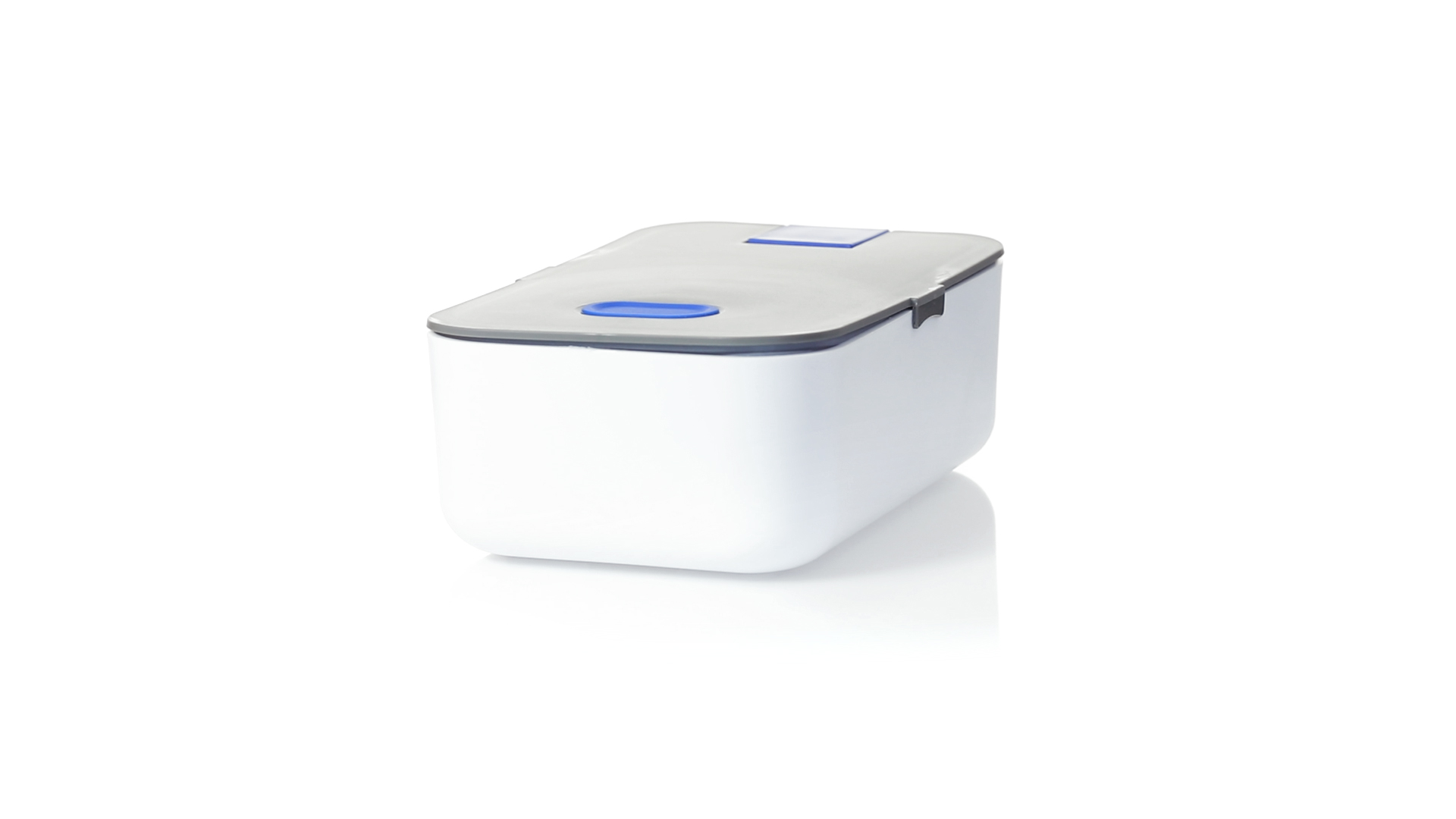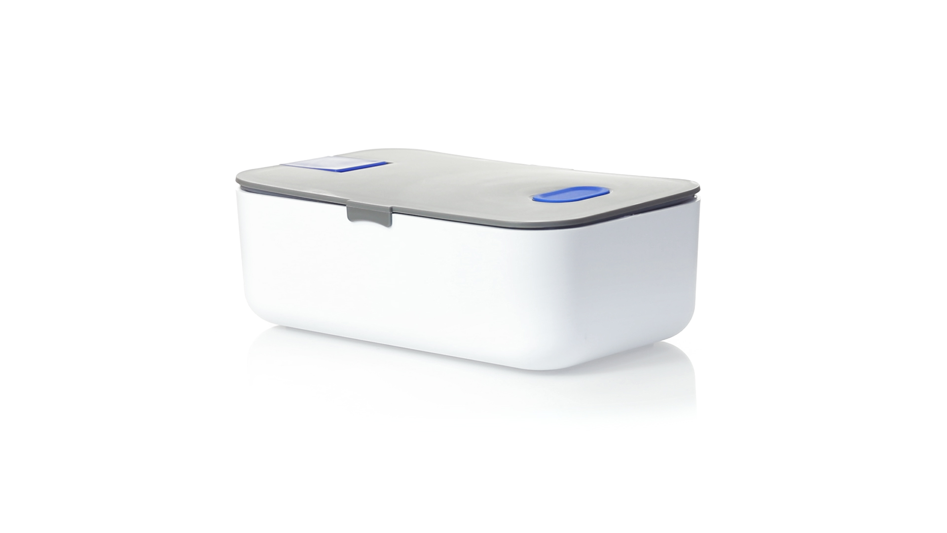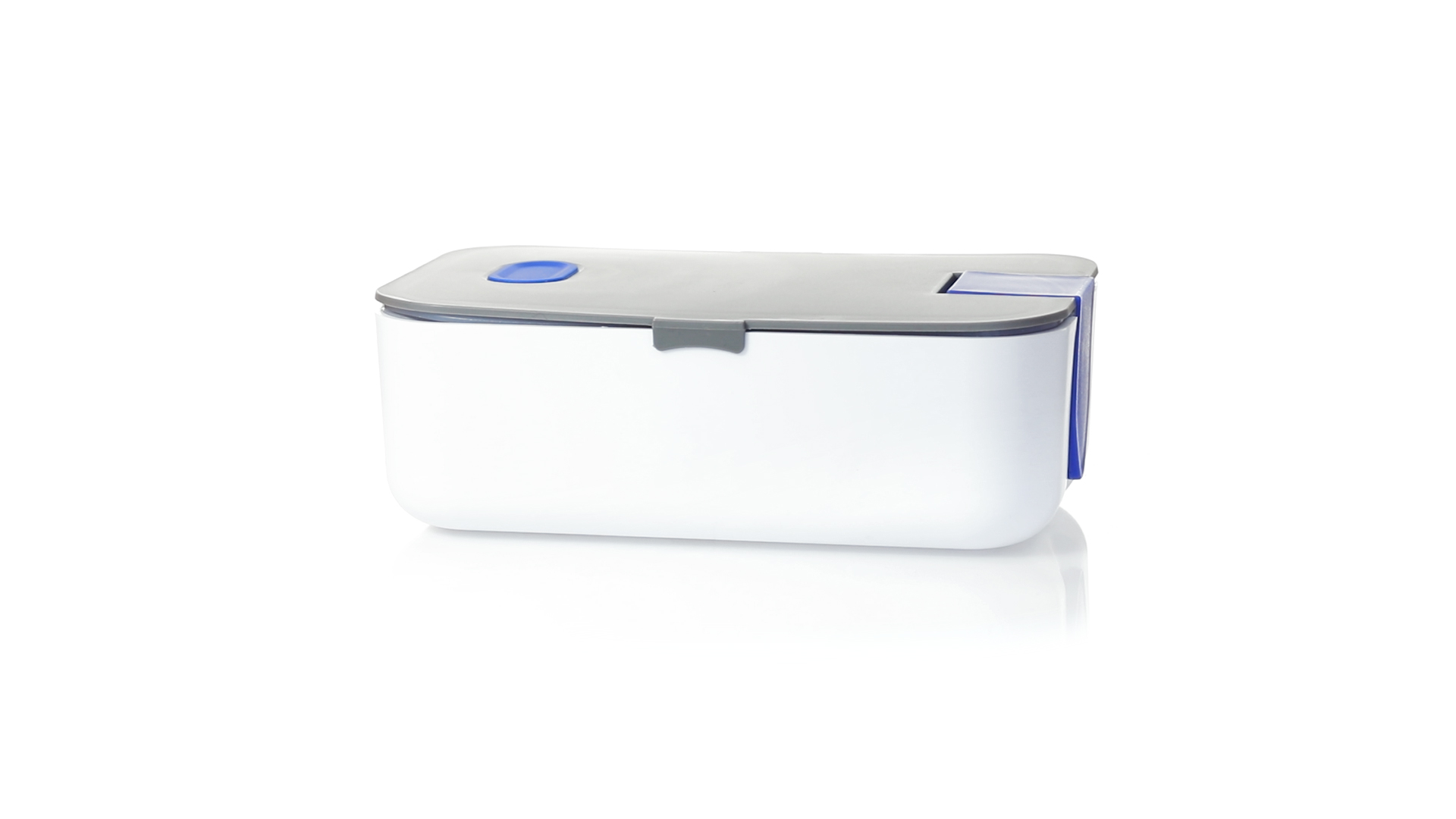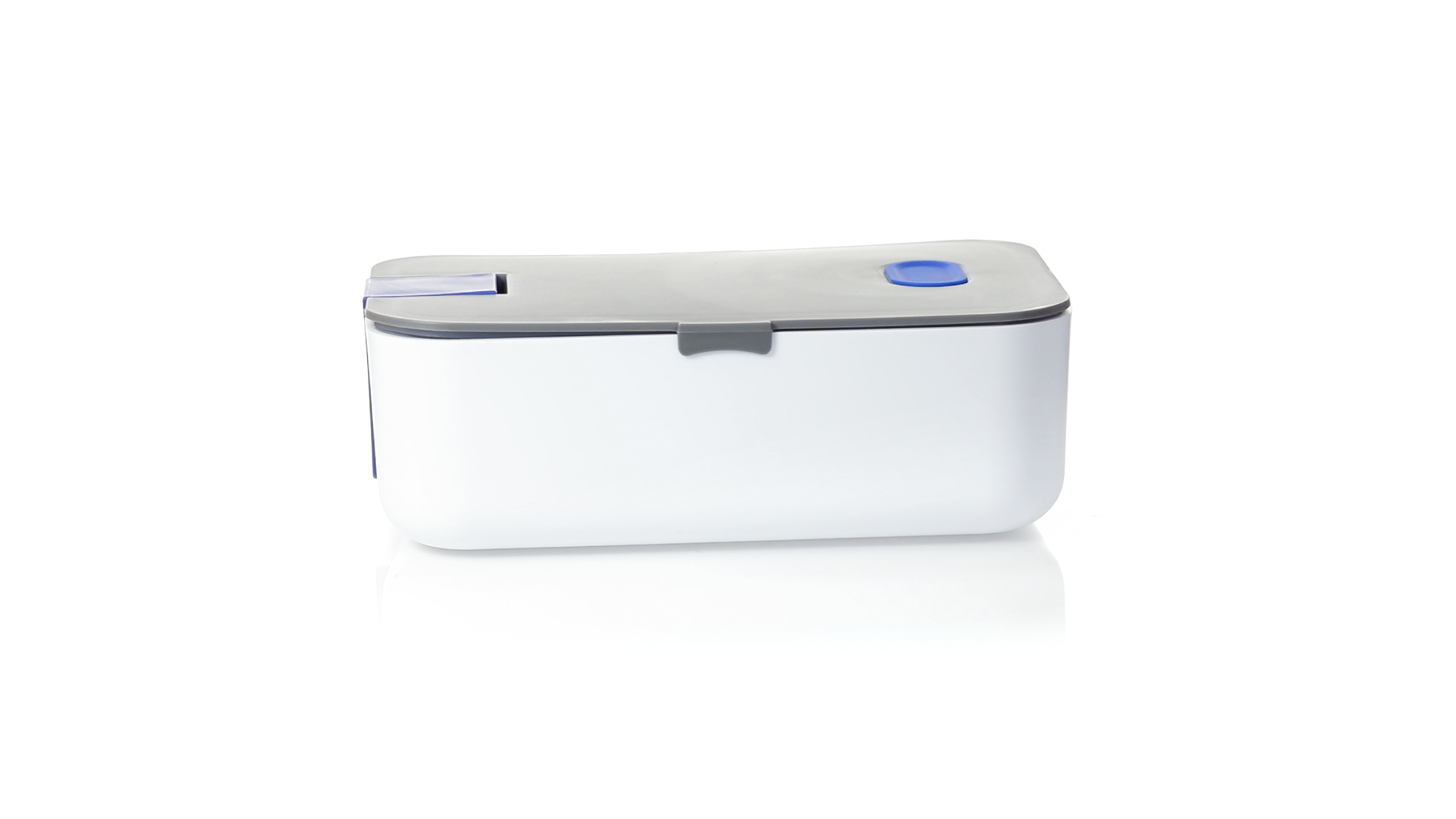 1l fassende Lunchbox aus stabilem BPA-freiem PP-Material. In weisser und grauer Farbkombination, mit passendem Zubehör und in einer grossen Farbauswahl erhältlich. Inklusive im Deckel integriertem Smartphone-Halter, Silikon-Deckelloch zur Belüftung und verstellbarem Innenteiler.