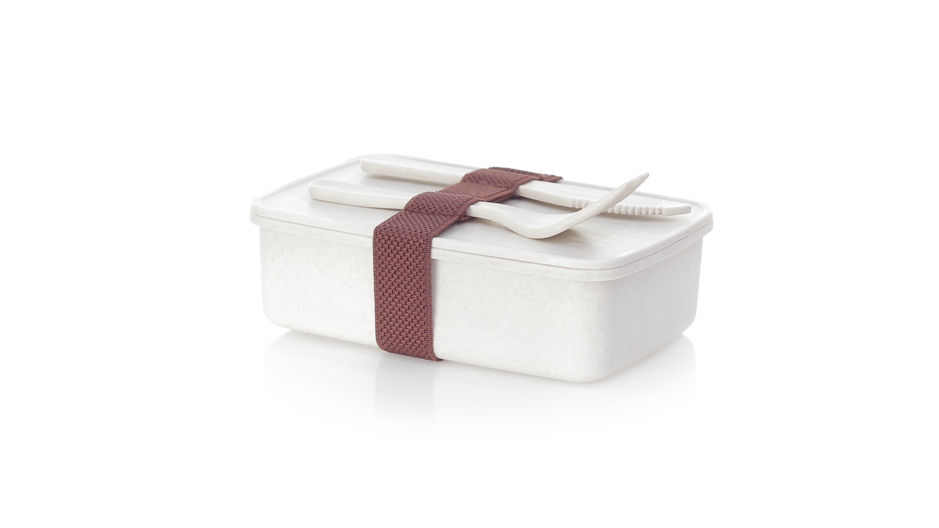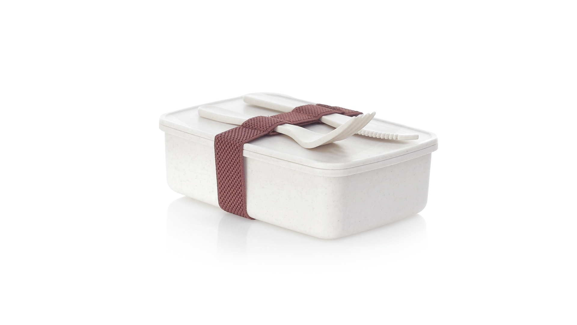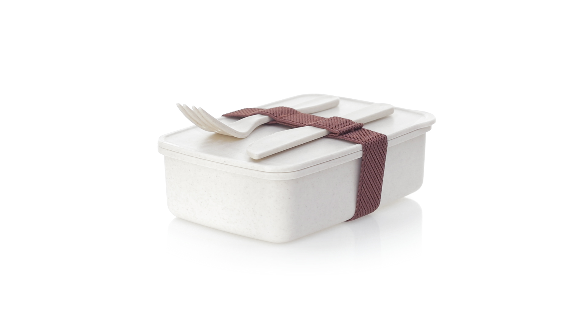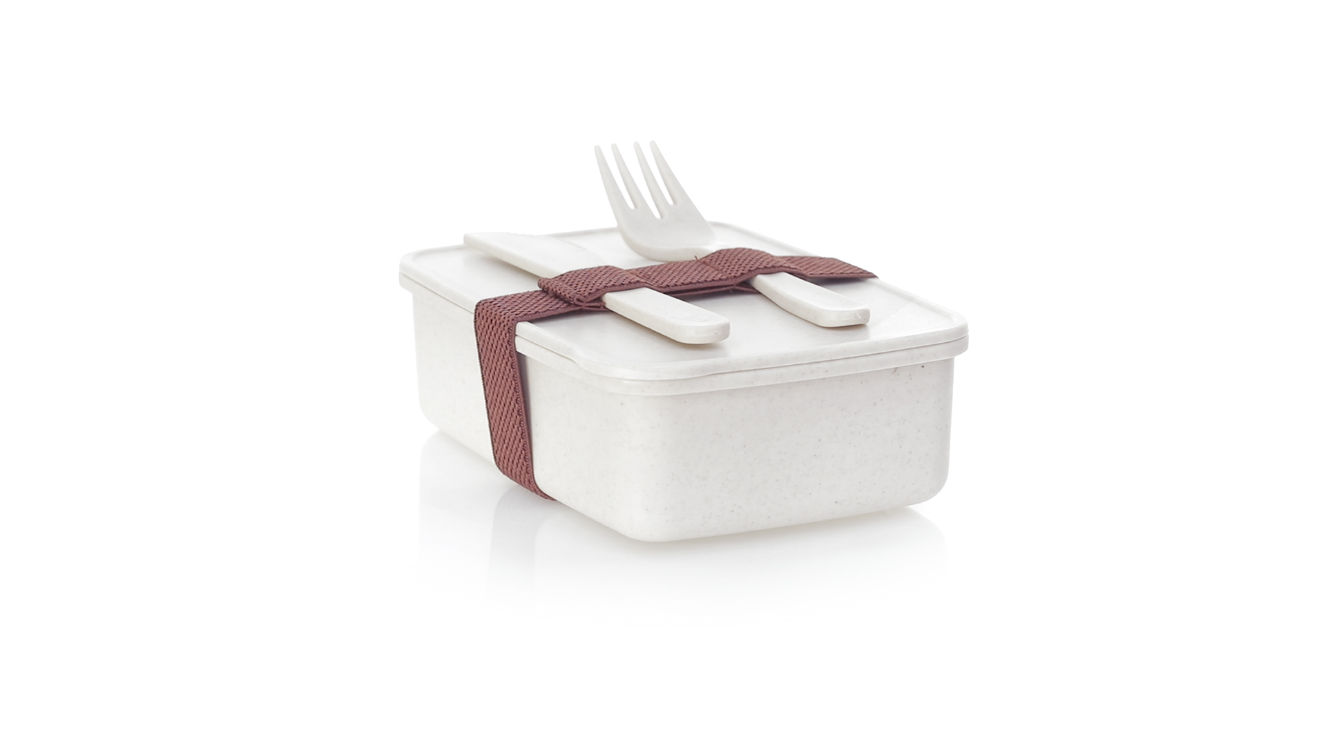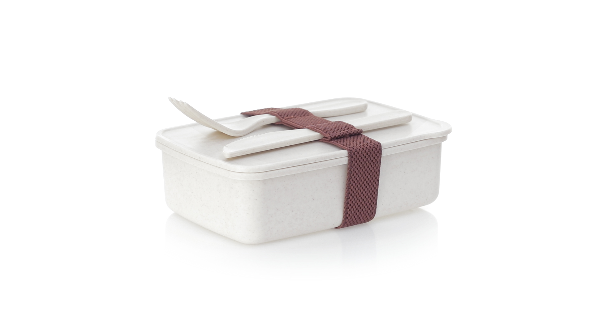 Brotdose aus BPA-freiem genarbtem PP. 700ml Fassungsvermögen, inklusive elastischem Sicherheitsgurt mit Gabel und Messer. Food Grade-Zertifizierung, die die Sicherheit beim Kontakt von Lebensmitteln mit dem zur Herstellung des Produkts verwendeten Material garantiert..