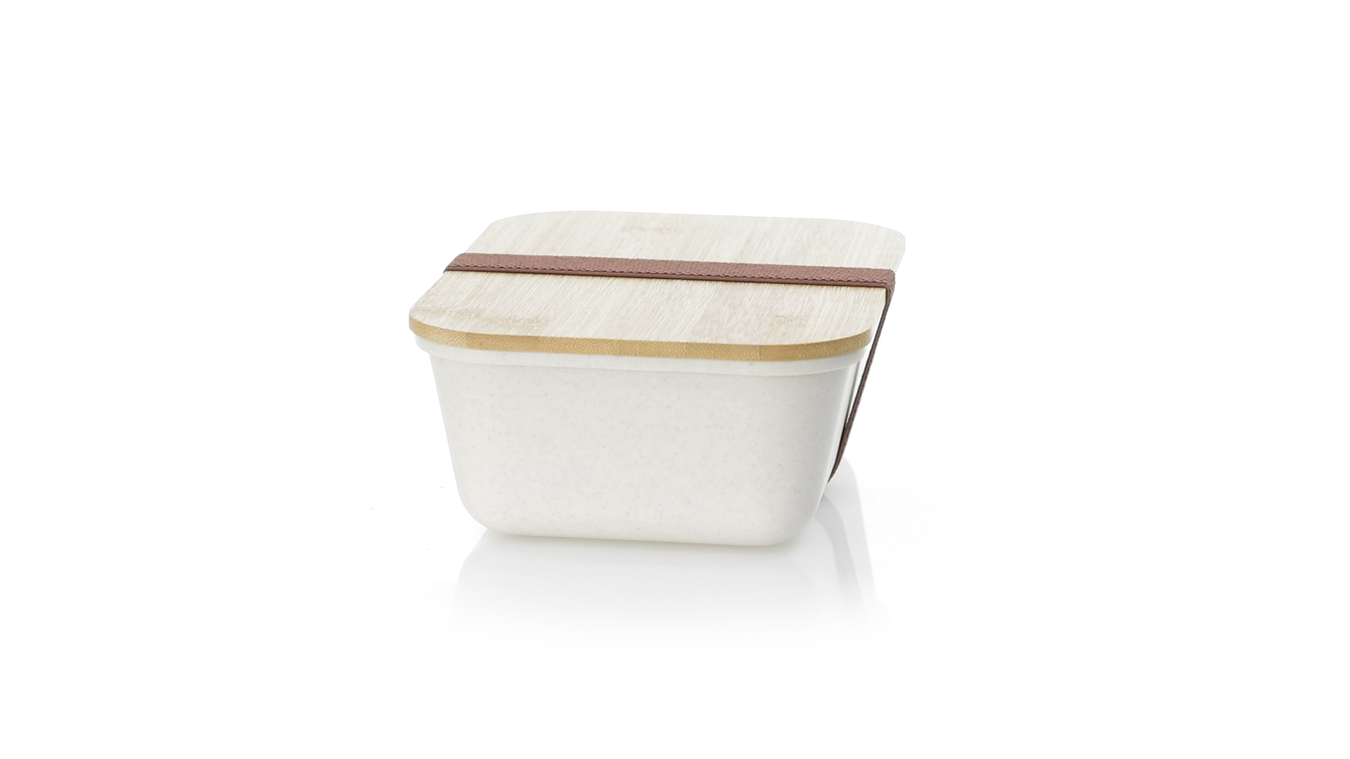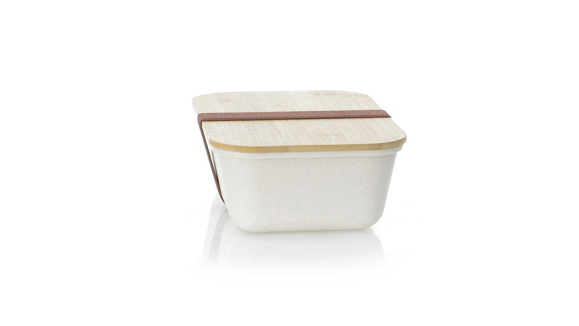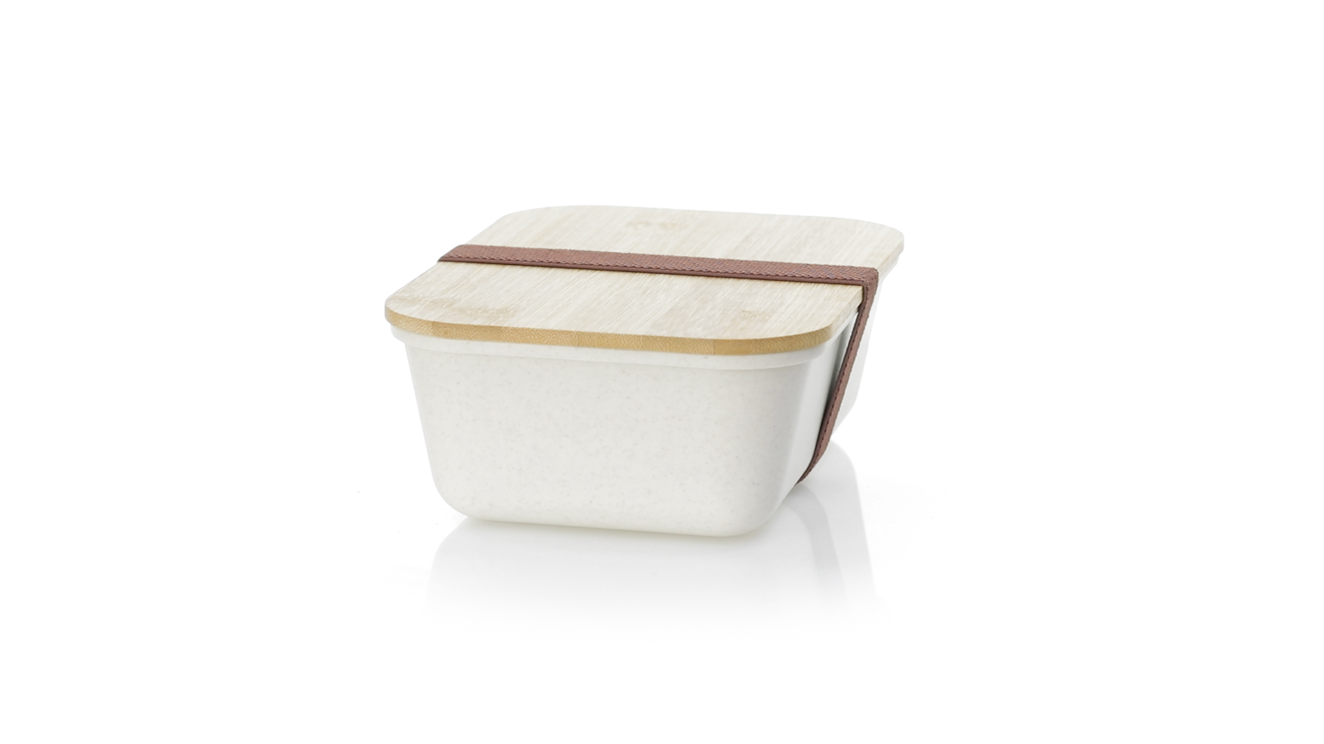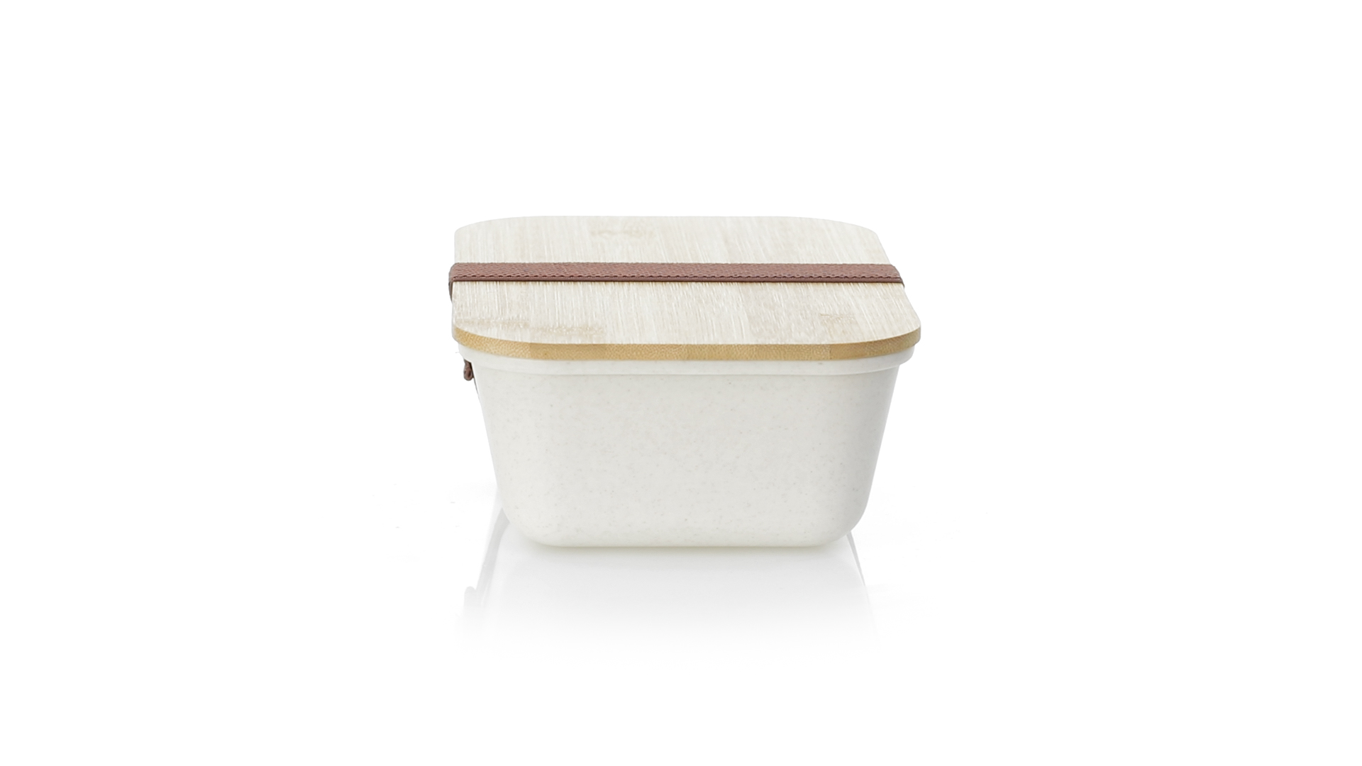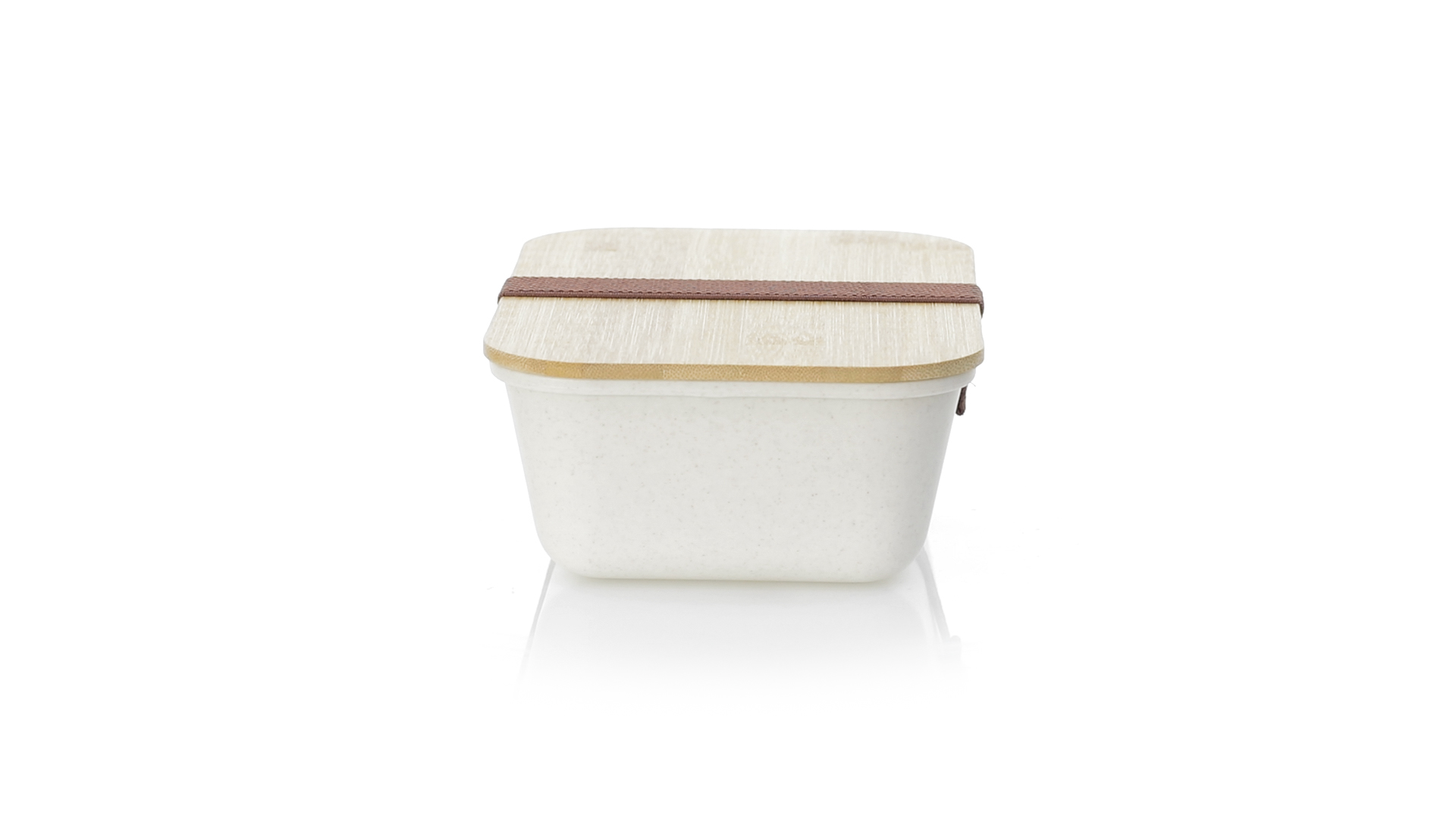 1l Brotdose aus widerstandsfähigem BPA-freiem PP-Kornmaterial, mit Bambusdeckel. Elastisches Sicherheitsband auf dem Deckel und Food Grade-Zertifizierung, die die Sicherheit beim Kontakt von Lebensmitteln mit dem zur Herstellung des Produkts verwendeten Material garantieren.