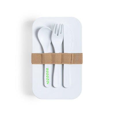 Lunchbox aus der Naturlinie, hergestellt aus 100% kompostierbarem PLA, BPA-frei. 1L Fassungsvermögen, inklusive Sicherheitsverschluss mit Gabel, Löffel und Messer. präsentiert in einer individuellen Tasche.Produkt aus PLA-Material, aus nachwachsenden Rohstoffen, mit wichtigen Eigenschaften wie Vielseitigkeit und Widerstandsfähigkeit, wobei unter anderem die Kompostierbarkeit hervorzuheben ist.