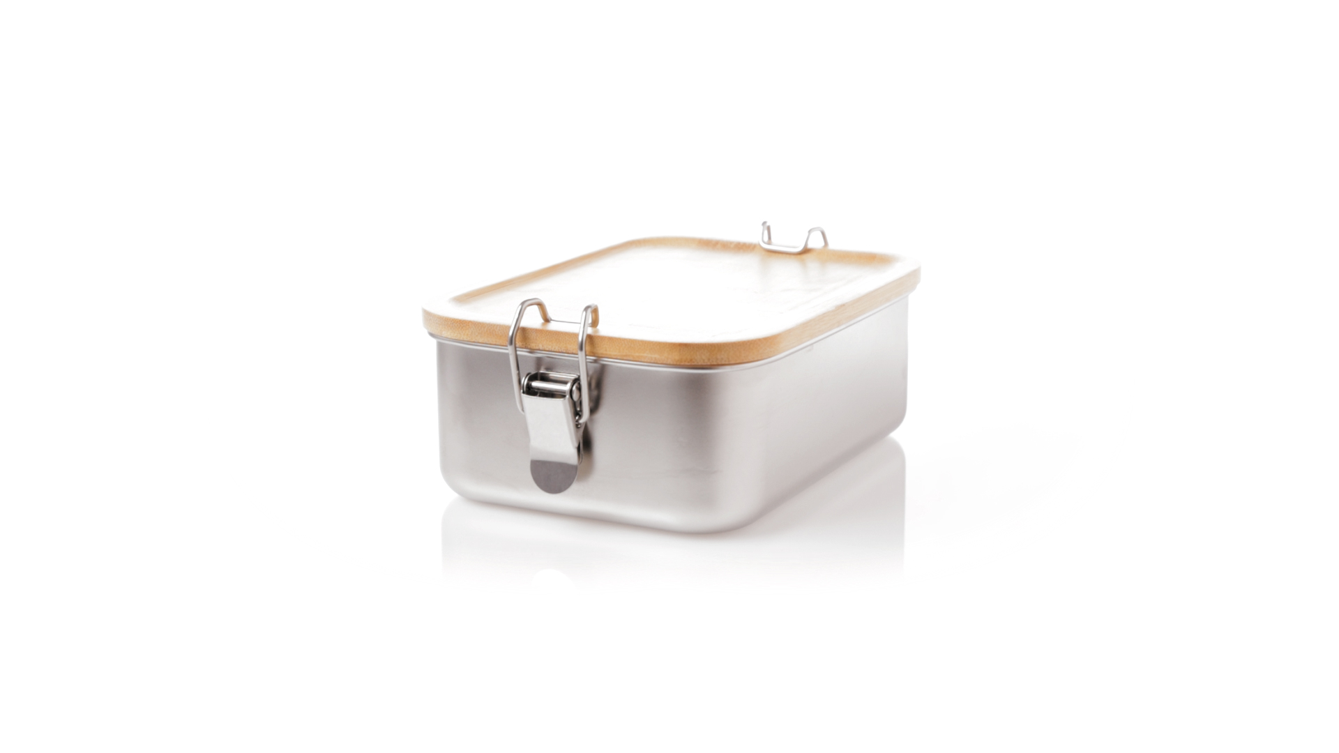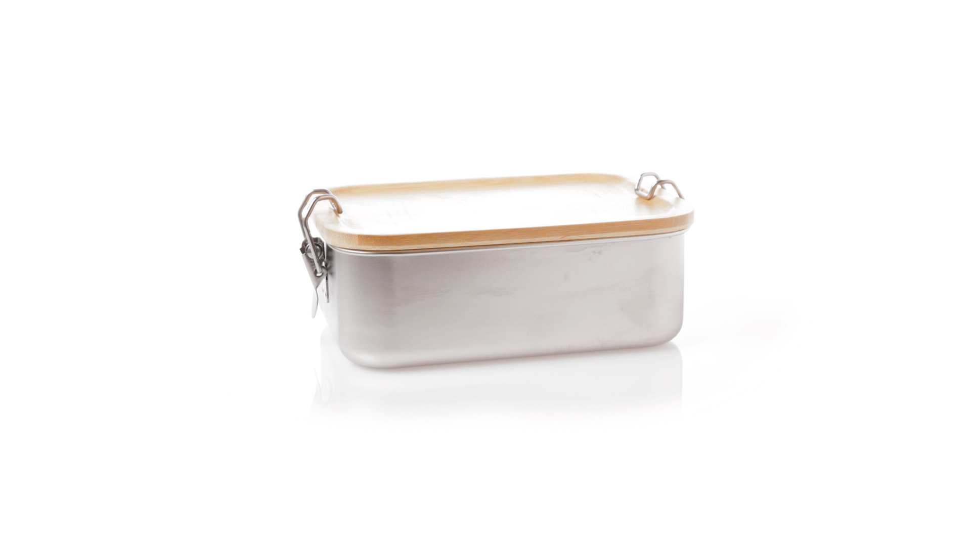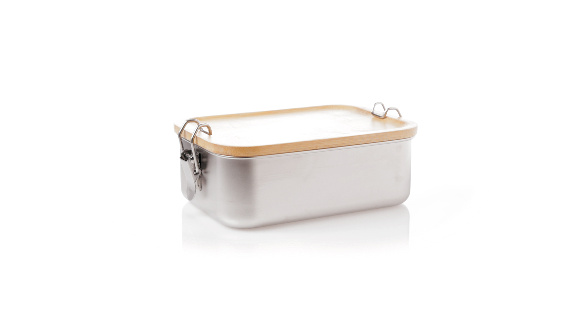 Lunchbox mit einem Fassungsvermögen von 800 ml, aus Edelstahl. Mit hermetischem Deckel aus Bambus und BPA-frei. Präsentiert in einer individuellen Kraft-Design-Box.