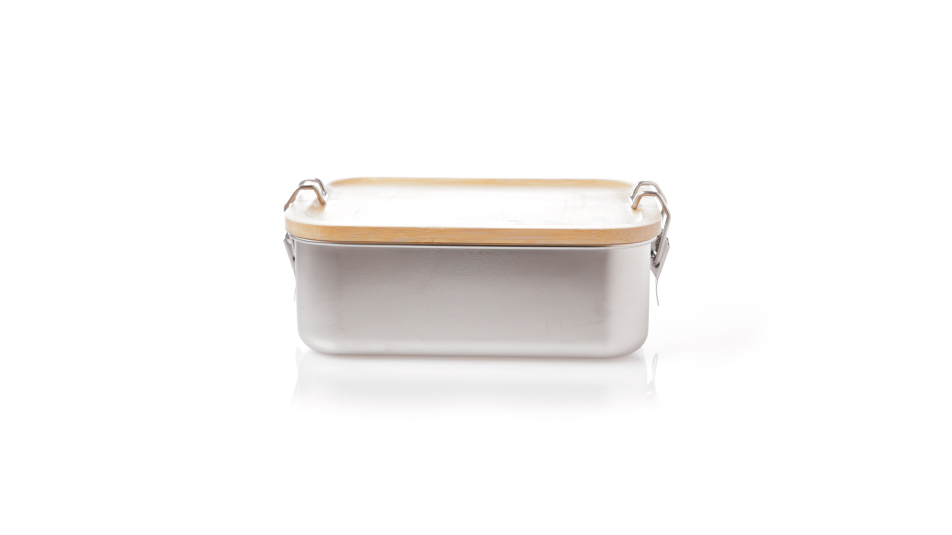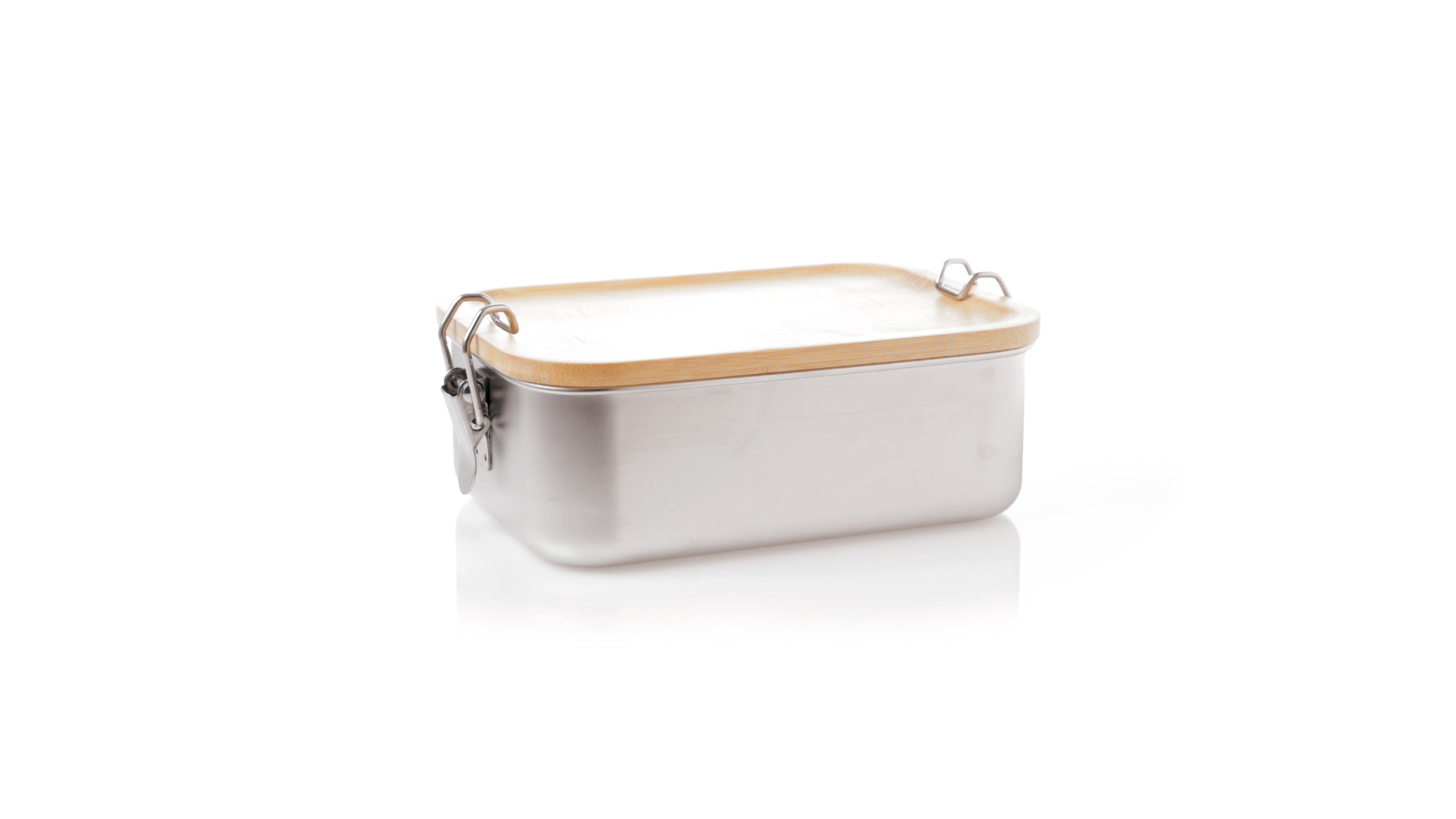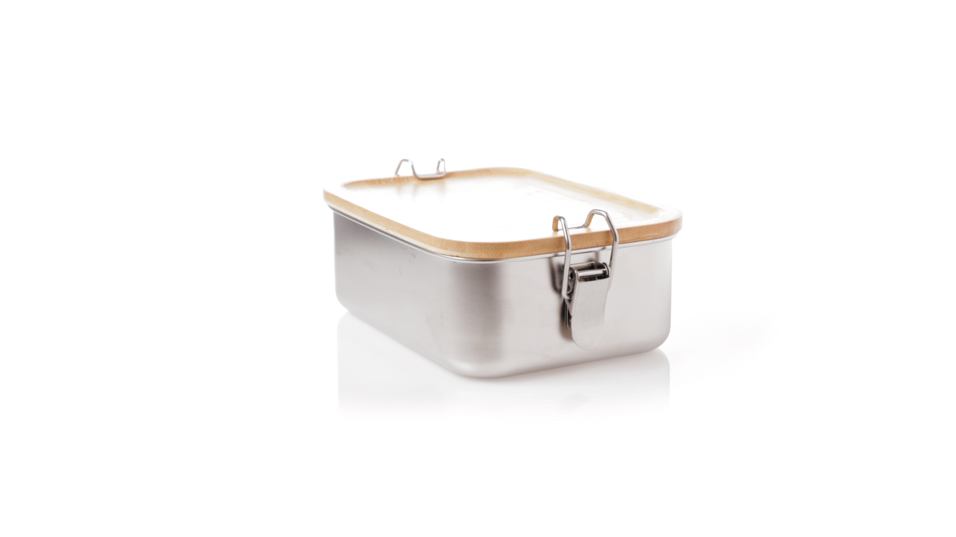 Lunchbox mit einem Fassungsvermögen von 800 ml, aus Edelstahl. Mit hermetischem Deckel aus Bambus und BPA-frei. Präsentiert in einer individuellen Kraft-Design-Box.