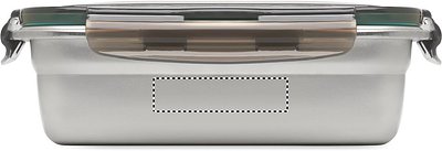 Lunchbox aus recyceltem Edelstahl mit Deckel aus recyceltem PP und 4-seitigem Klickverschluss. Füllmenge: 850 ml.