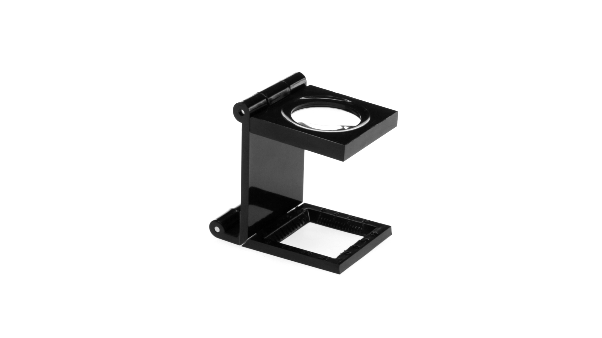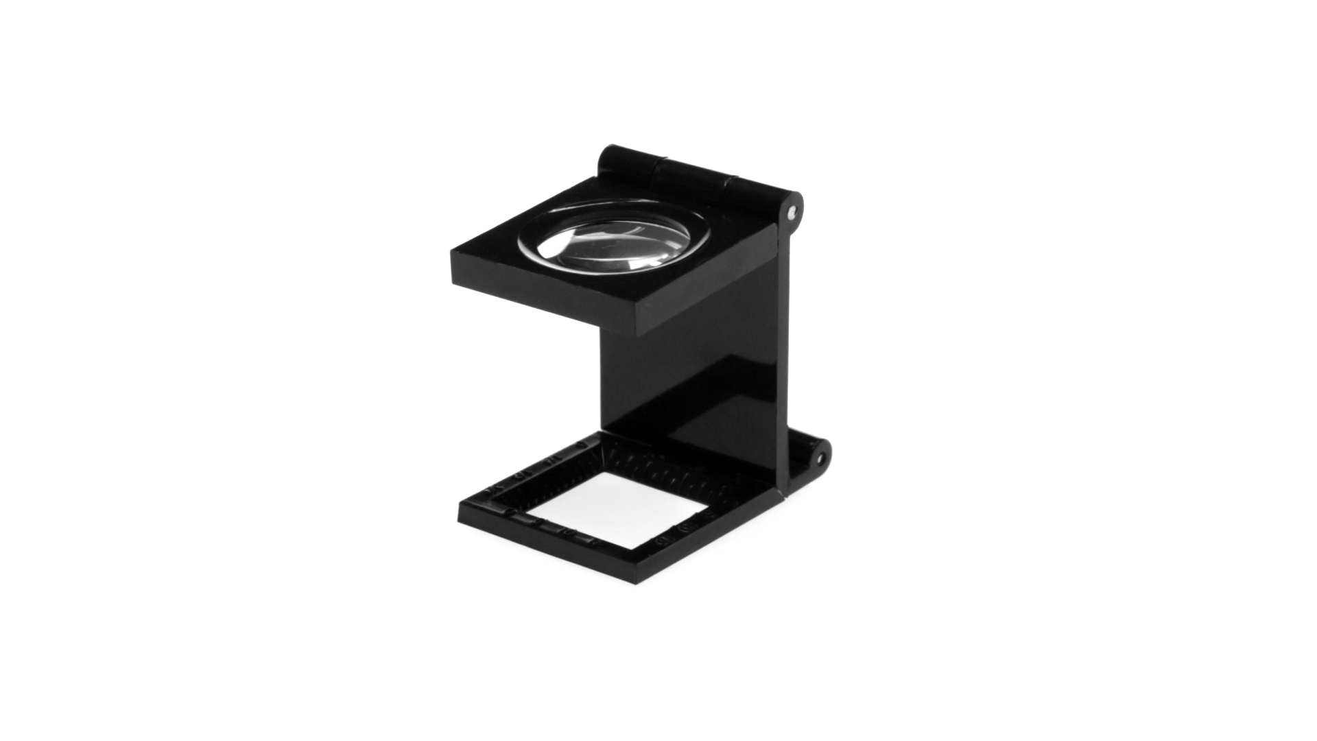 Klappbare Lupe mit 7-facher Vergrösserung. Mit im Schaft integriertem Lineal. Präsentiert in einer individuellen Box.