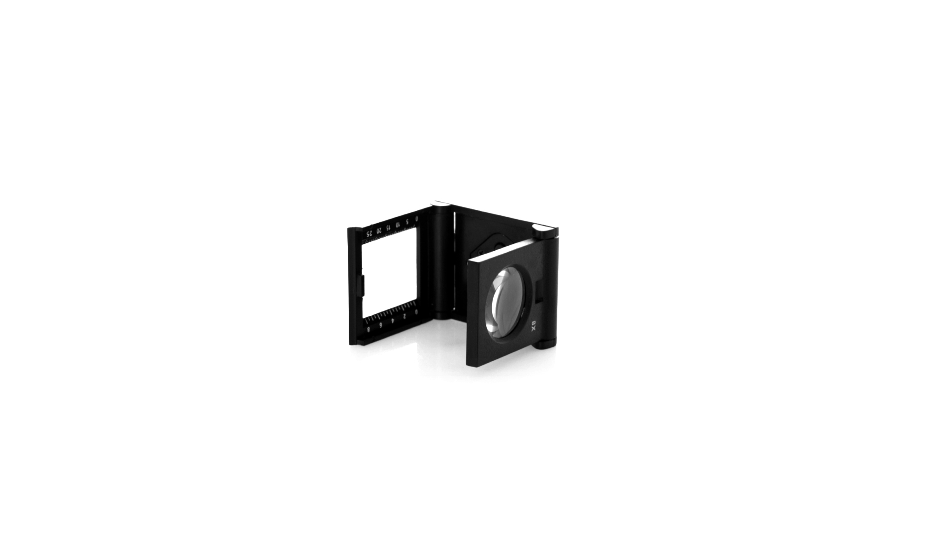 Einschlaglupe mit 8-facher Vergrösserung aus robustem PP, mit integriertem LED-Licht und Messlineal. Betrieben mit Knopfzellenbatterie (im Lieferumfang enthalten) und präsentiert in einer individuellen schwarzen Kartonschachtel.