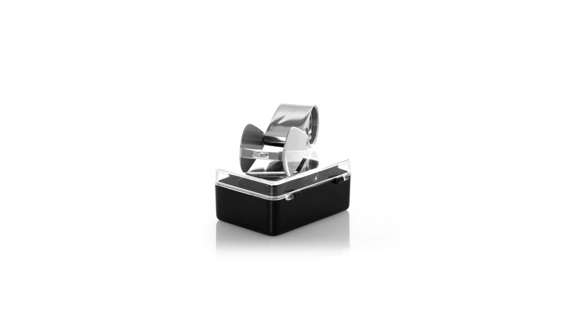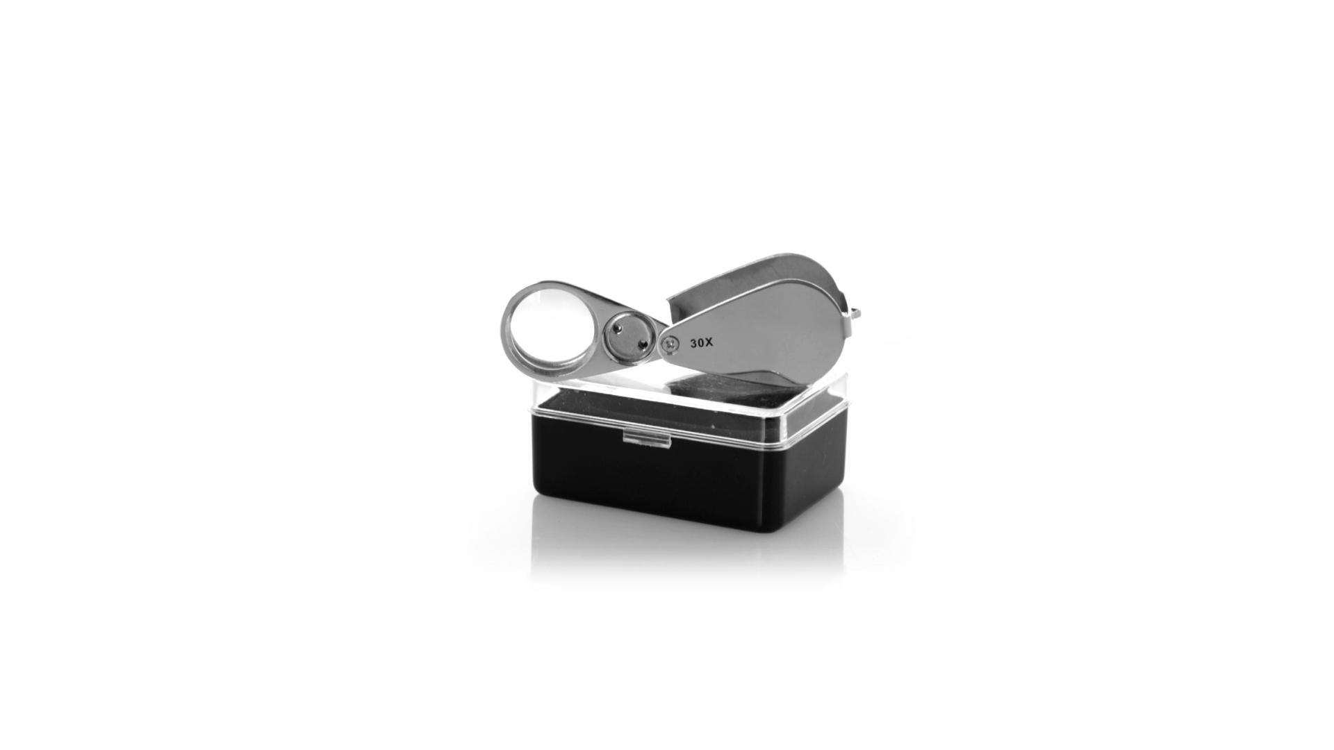 30x Einschlaglupe aus widerstandsfähigem Metall. Mit integrierter LED-Beleuchtung und grosser Vergrösserung für eine sehr nahe Ansicht der kleinsten Details ohne Verzerrung. Ideal für die Inspektion von kleinen Objekten, Text, etc. Die Lupe verfügt über ein Zubehörteil zum Aufhängen und wird in einem Etui mit gepolsterter Innenseite für zusätzlichen Schutz geliefert. Batteriebetrieben (Knopfbatterien im Lieferumfang enthalten), mit speziellem Schlüssel zum Auswechseln, wenn die Batterien leer sind. Präsentiert in einer schwarzen Kartonschachtel.