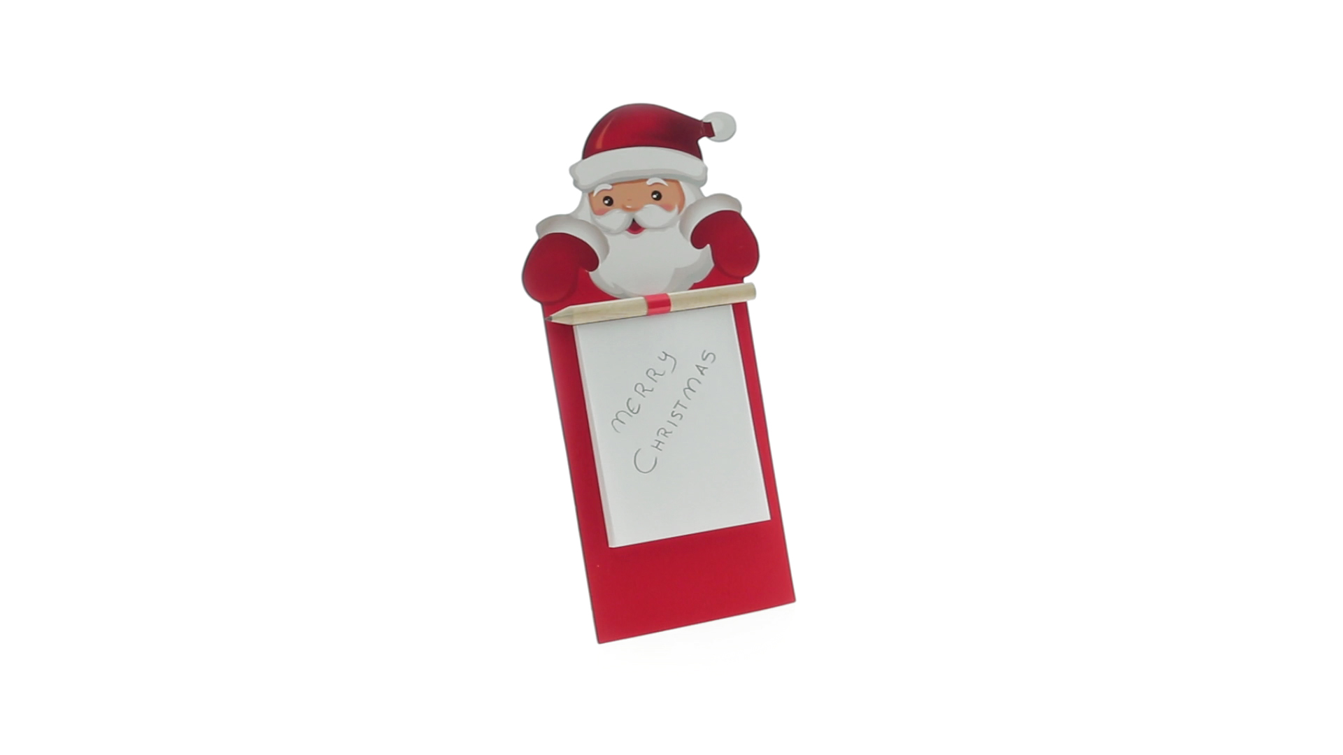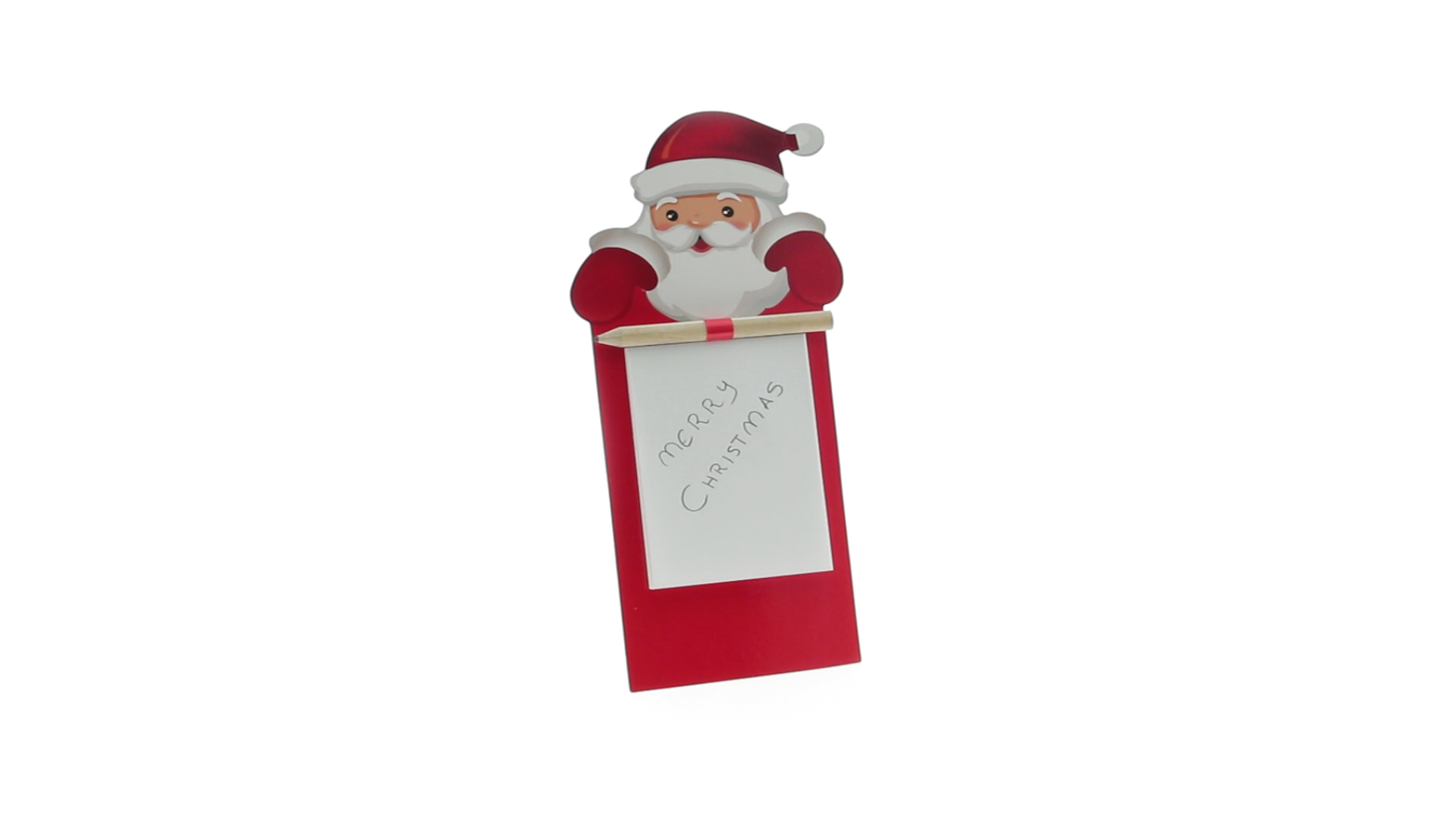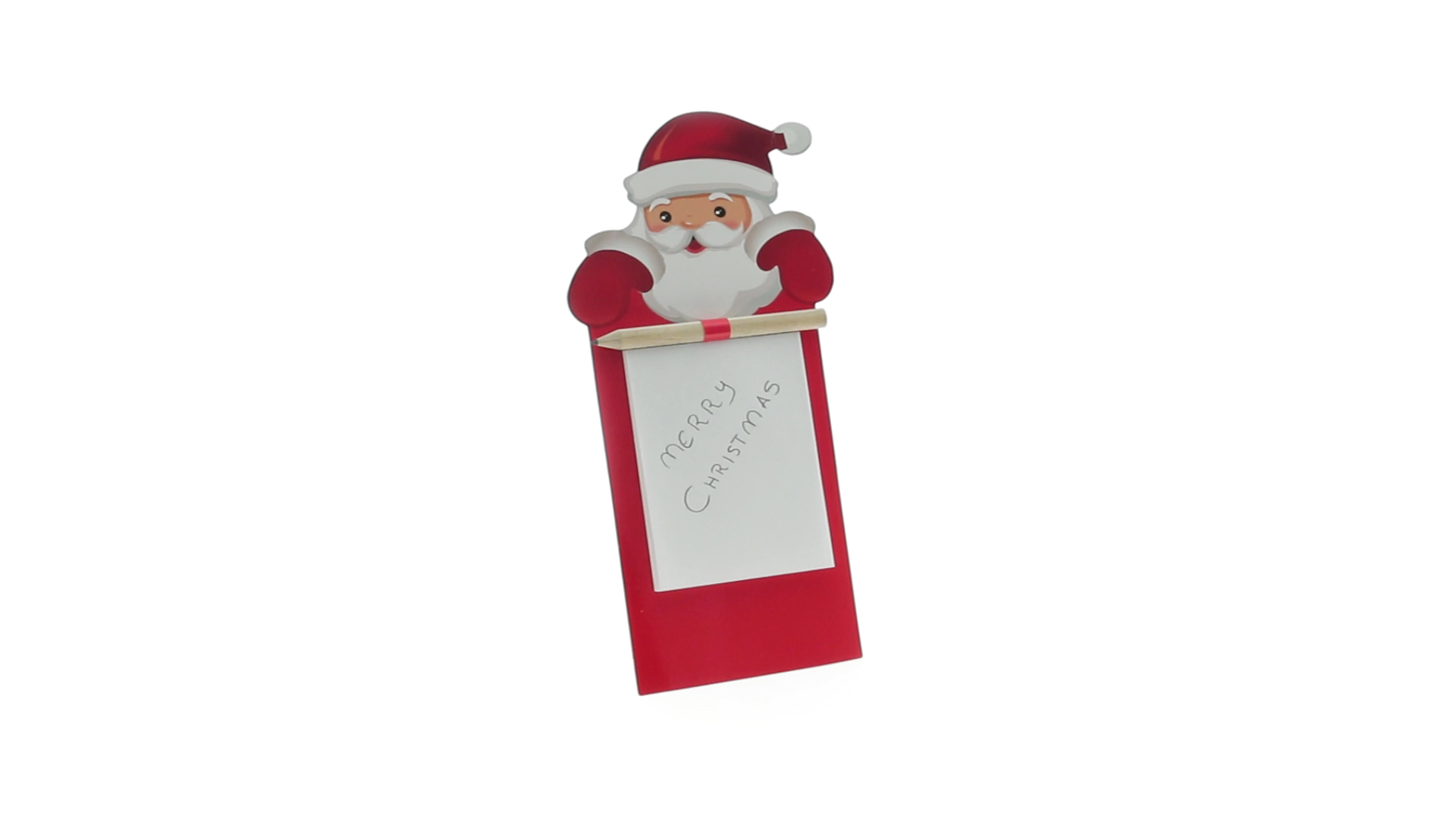 Magnet mit Notizblock und tollem Weihnachtsmann-Design. Mit 40 Blättern und hölzernem Stift.