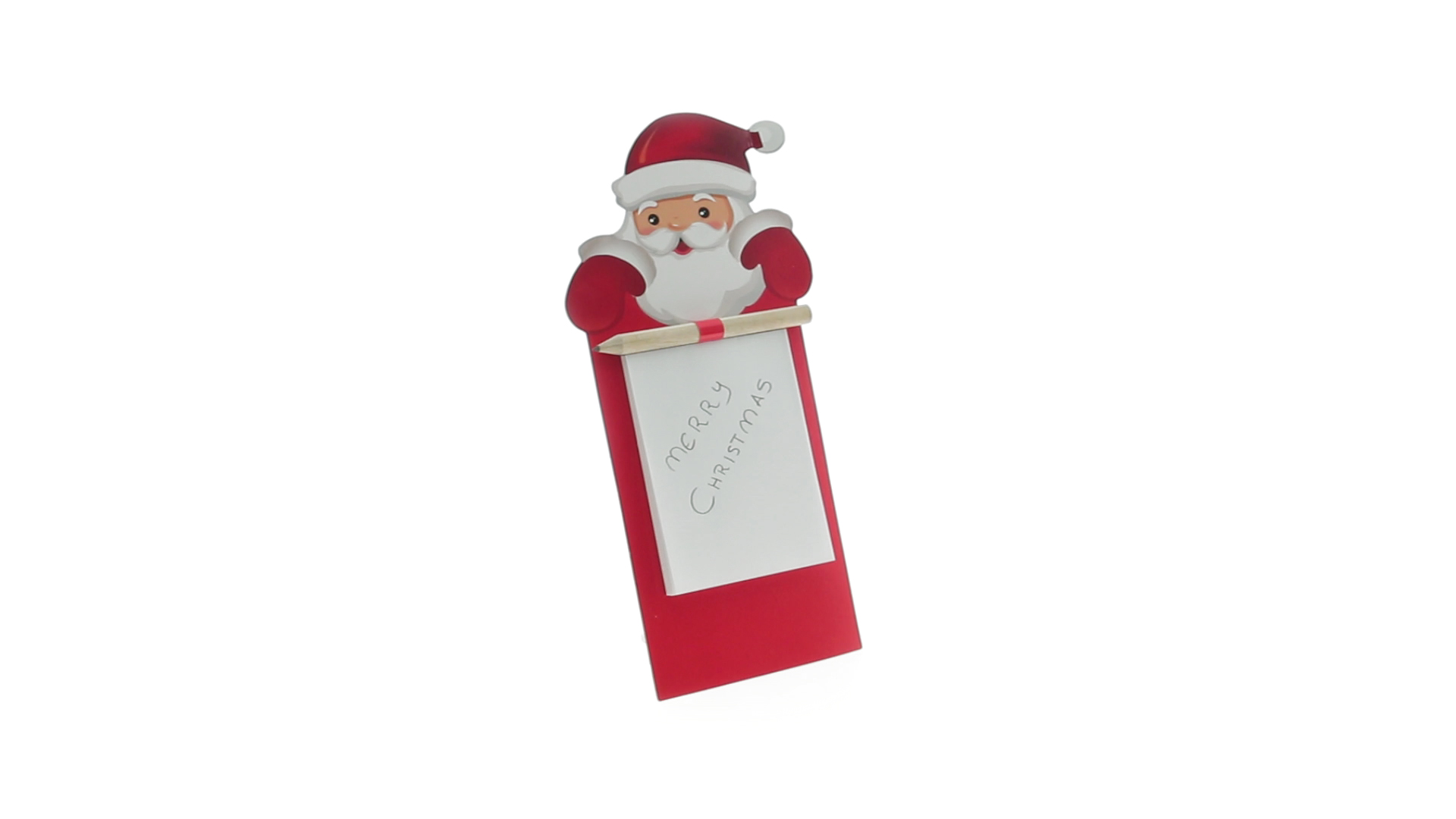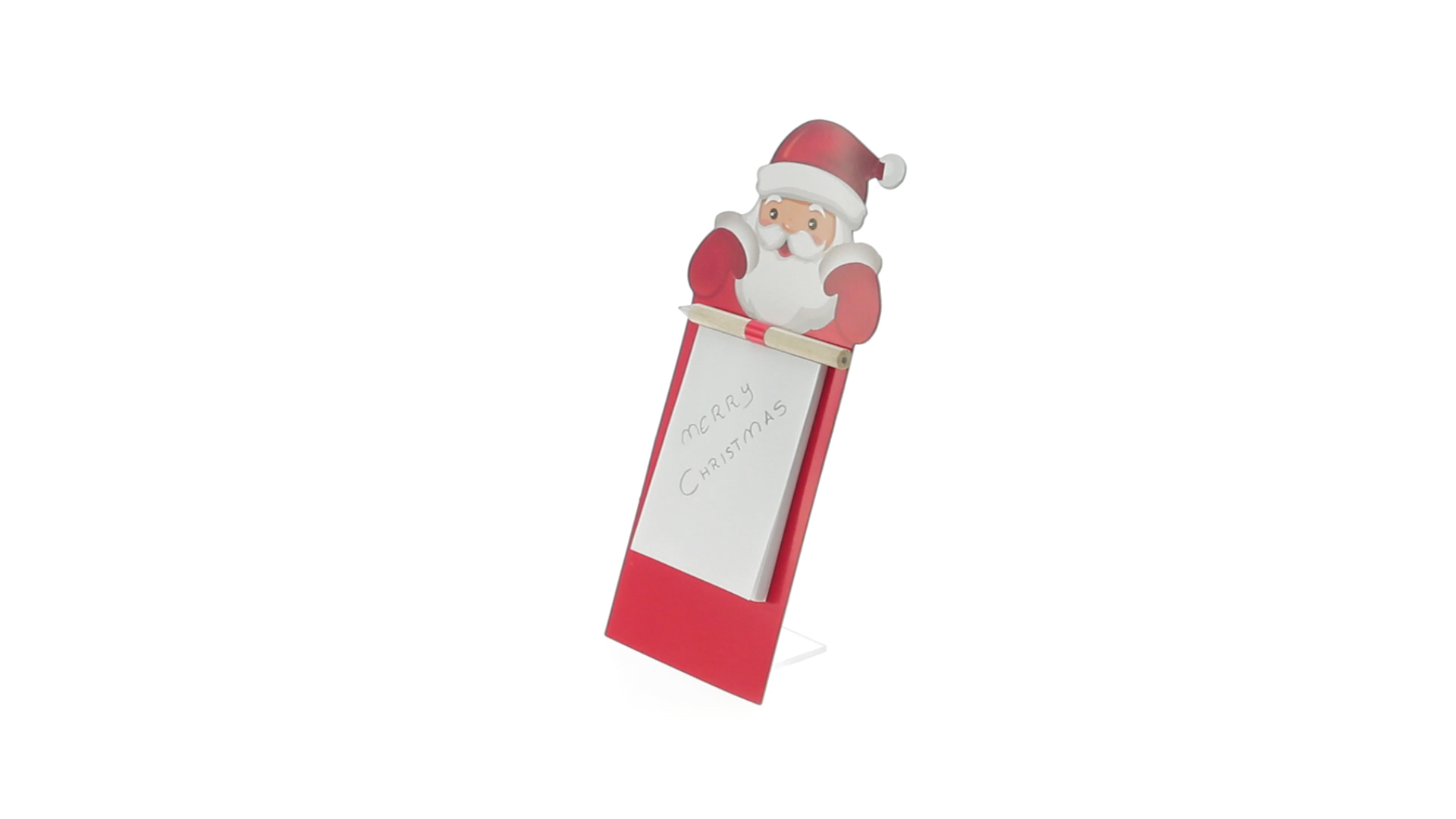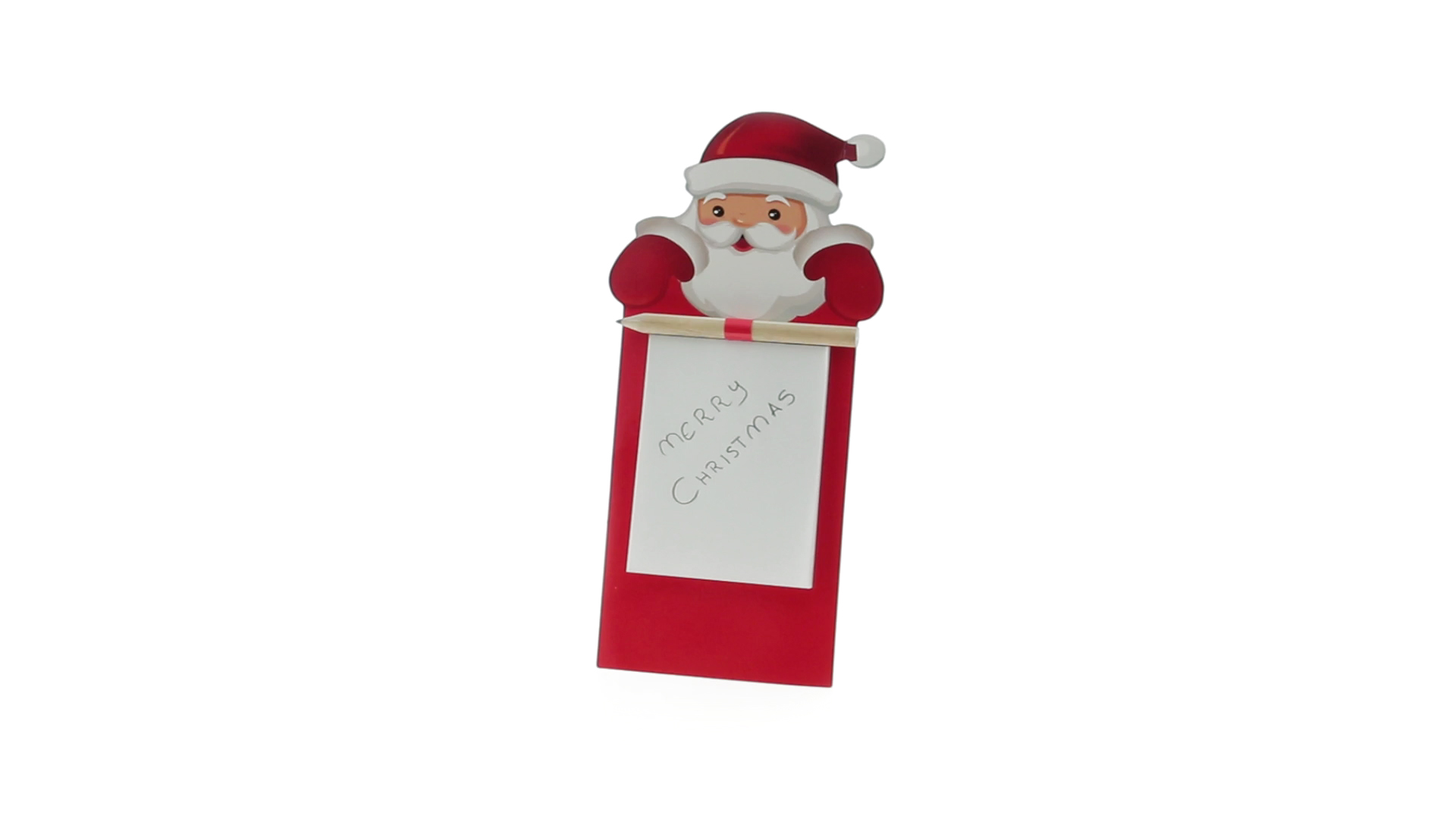 Magnet mit Notizblock und tollem Weihnachtsmann-Design. Mit 40 Blättern und hölzernem Stift.