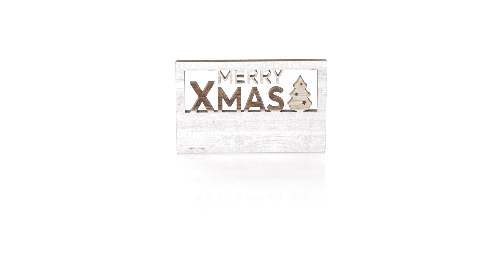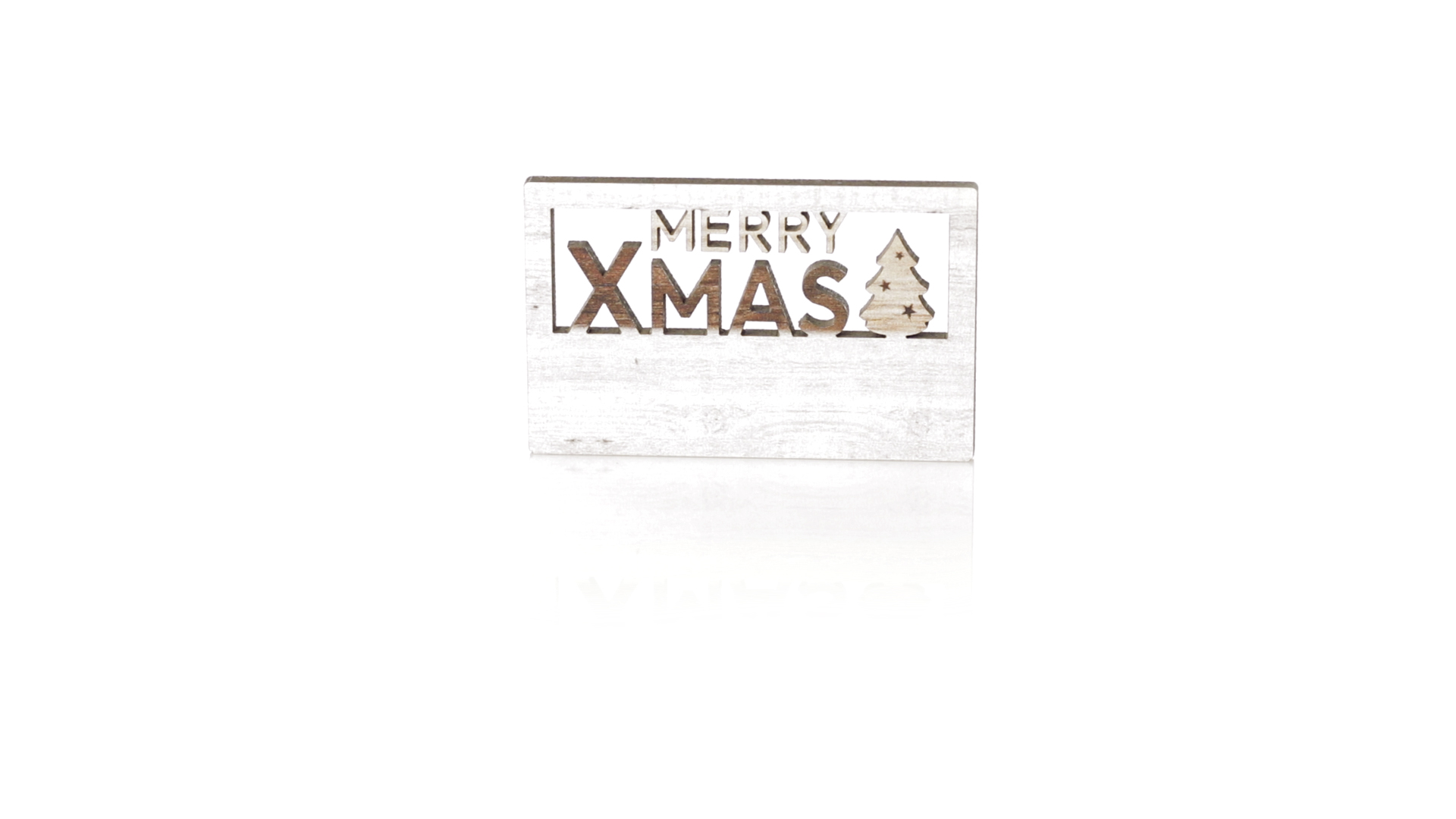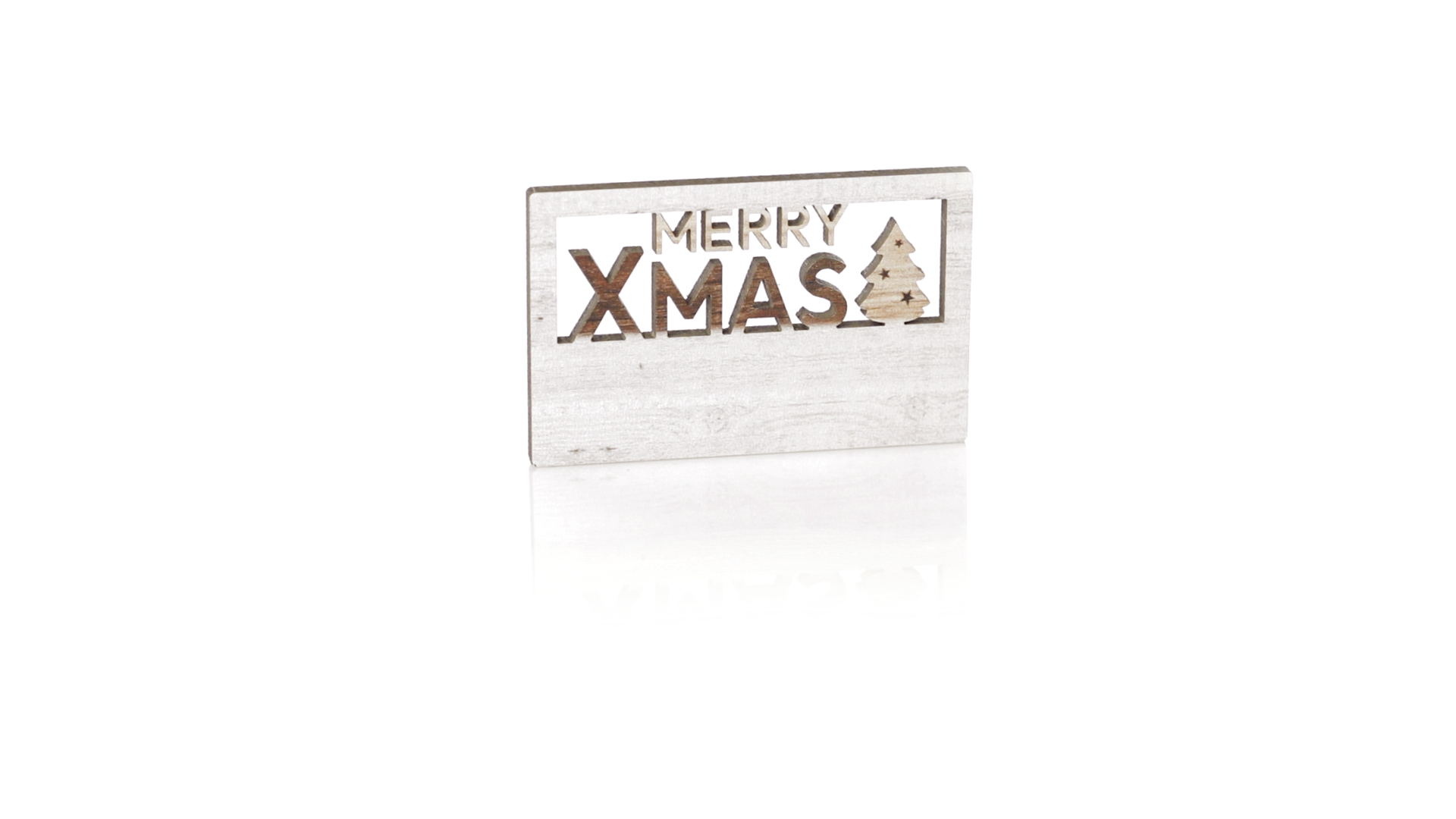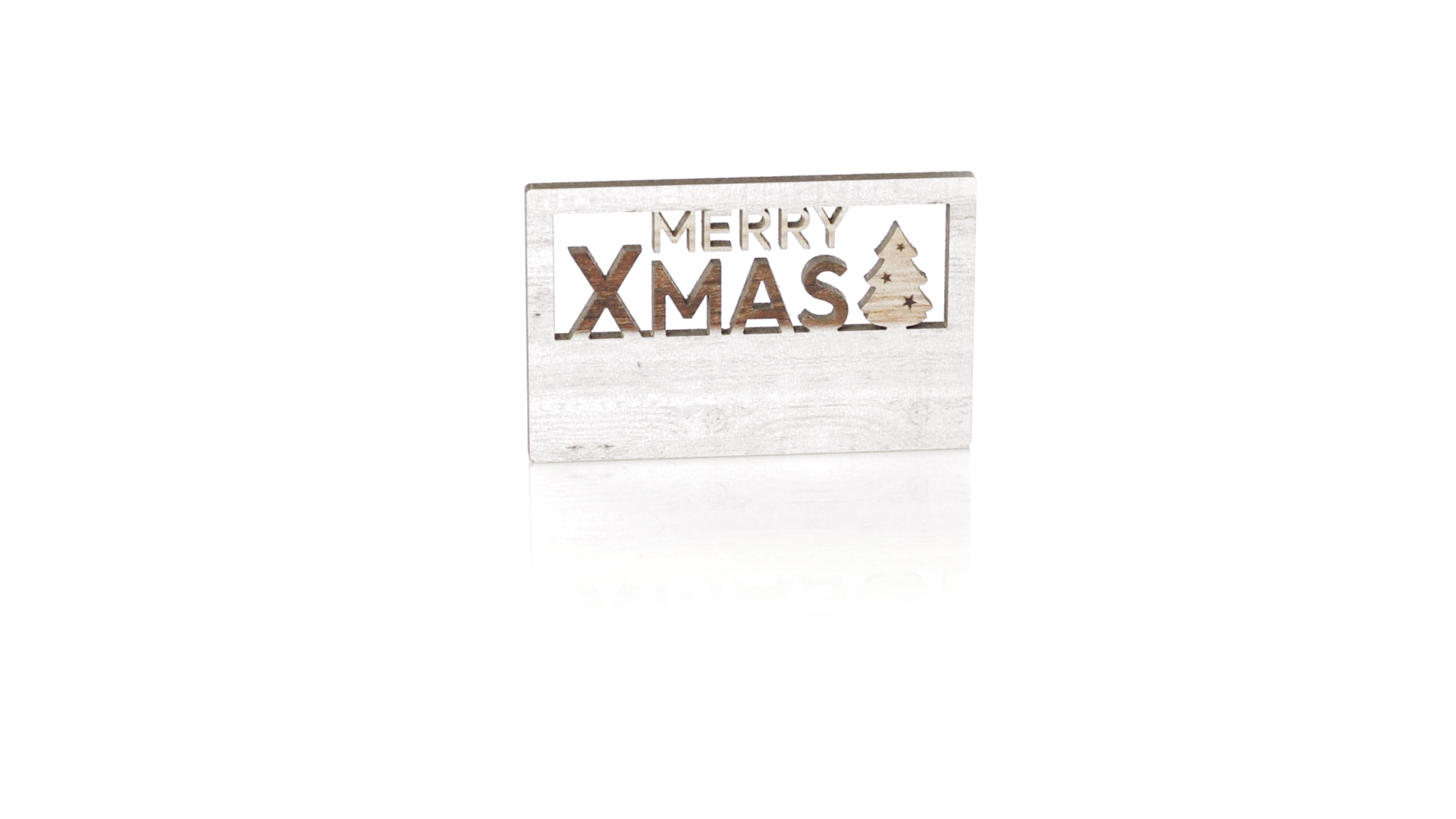 Echter Frohe-Weihnachten-Magnet aus Naturholz, mit gestanztem Text und Original-Bicolor-Finish. Grosse Brandingfläche und Made in Europe-Logo.
