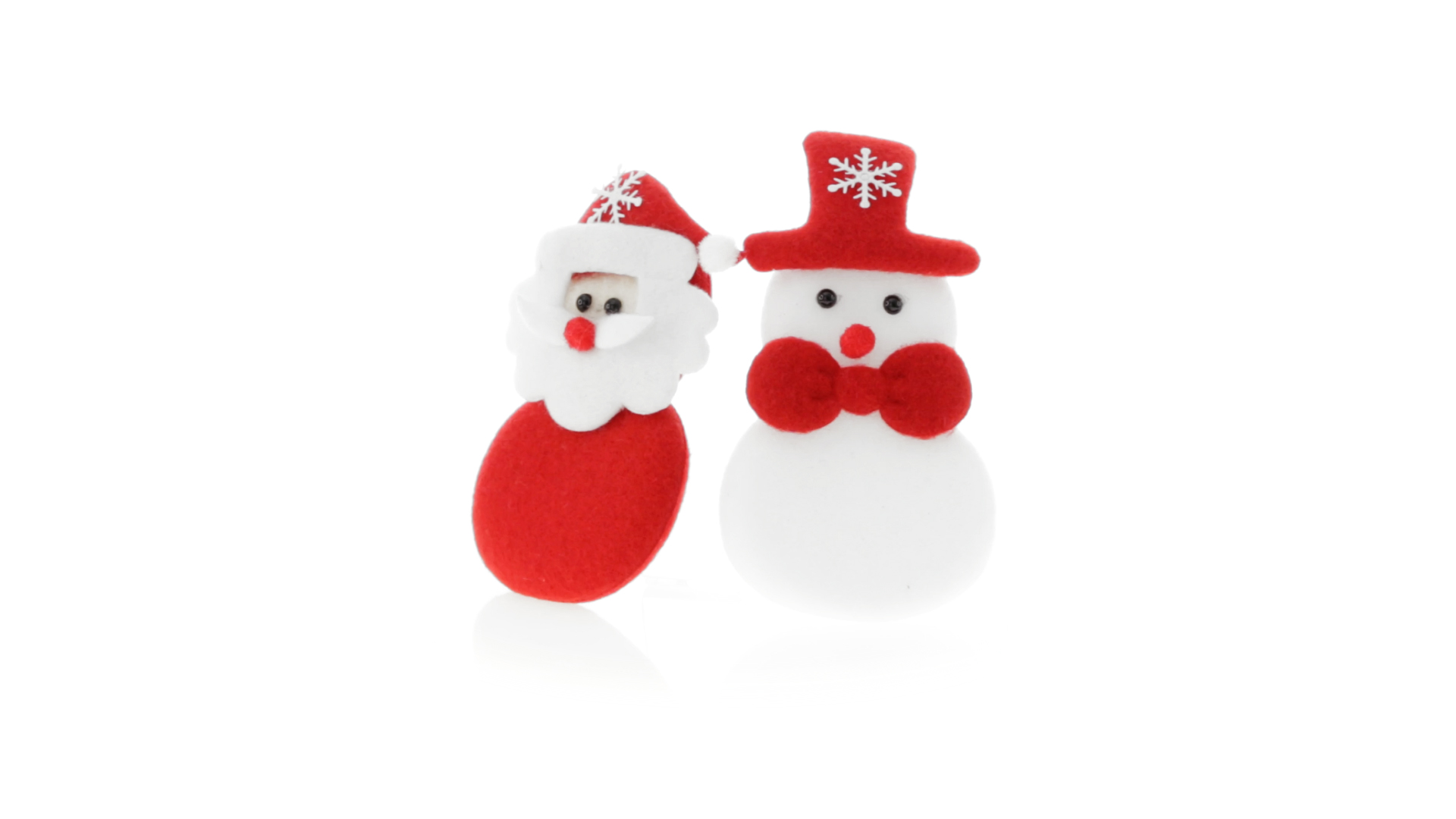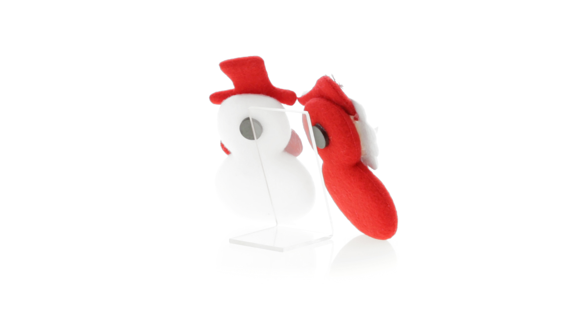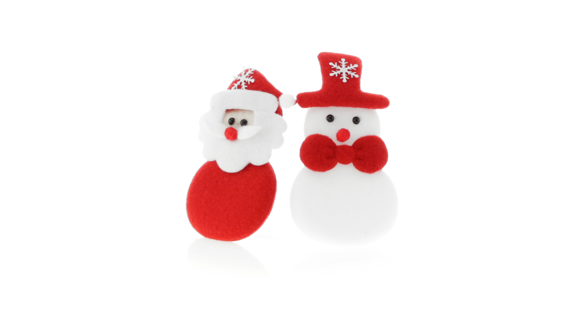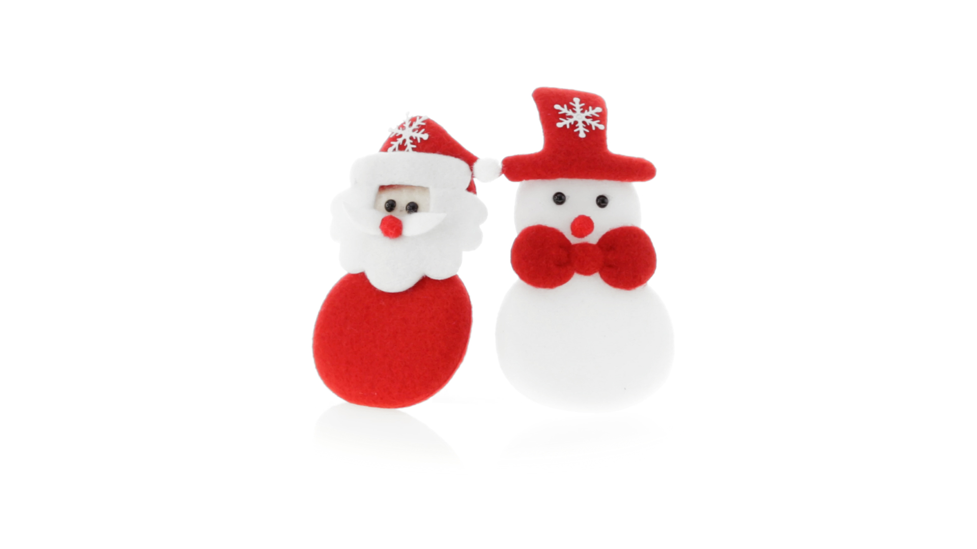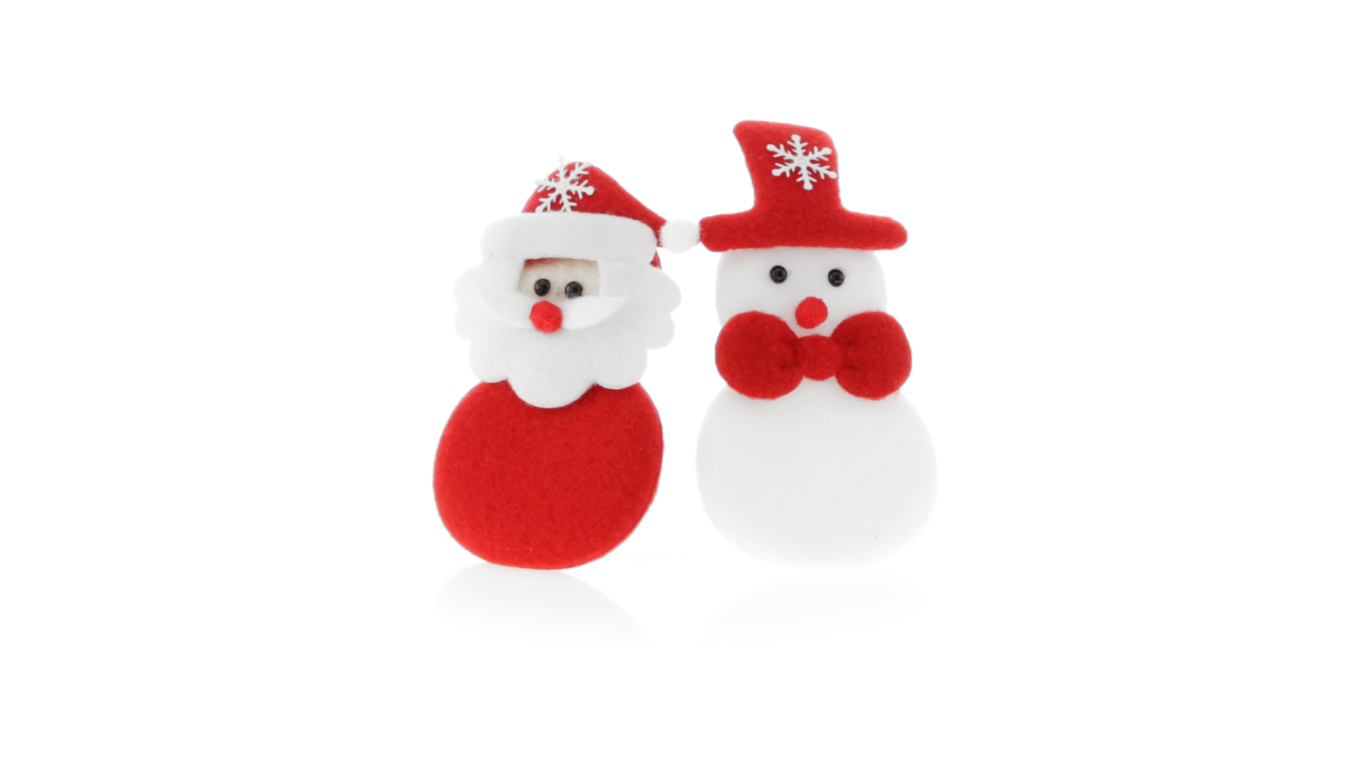 Origineller Weihnachtsmagnet aus weichem Polyester mit Weihnachtsmann- und Schneemannfiguren.